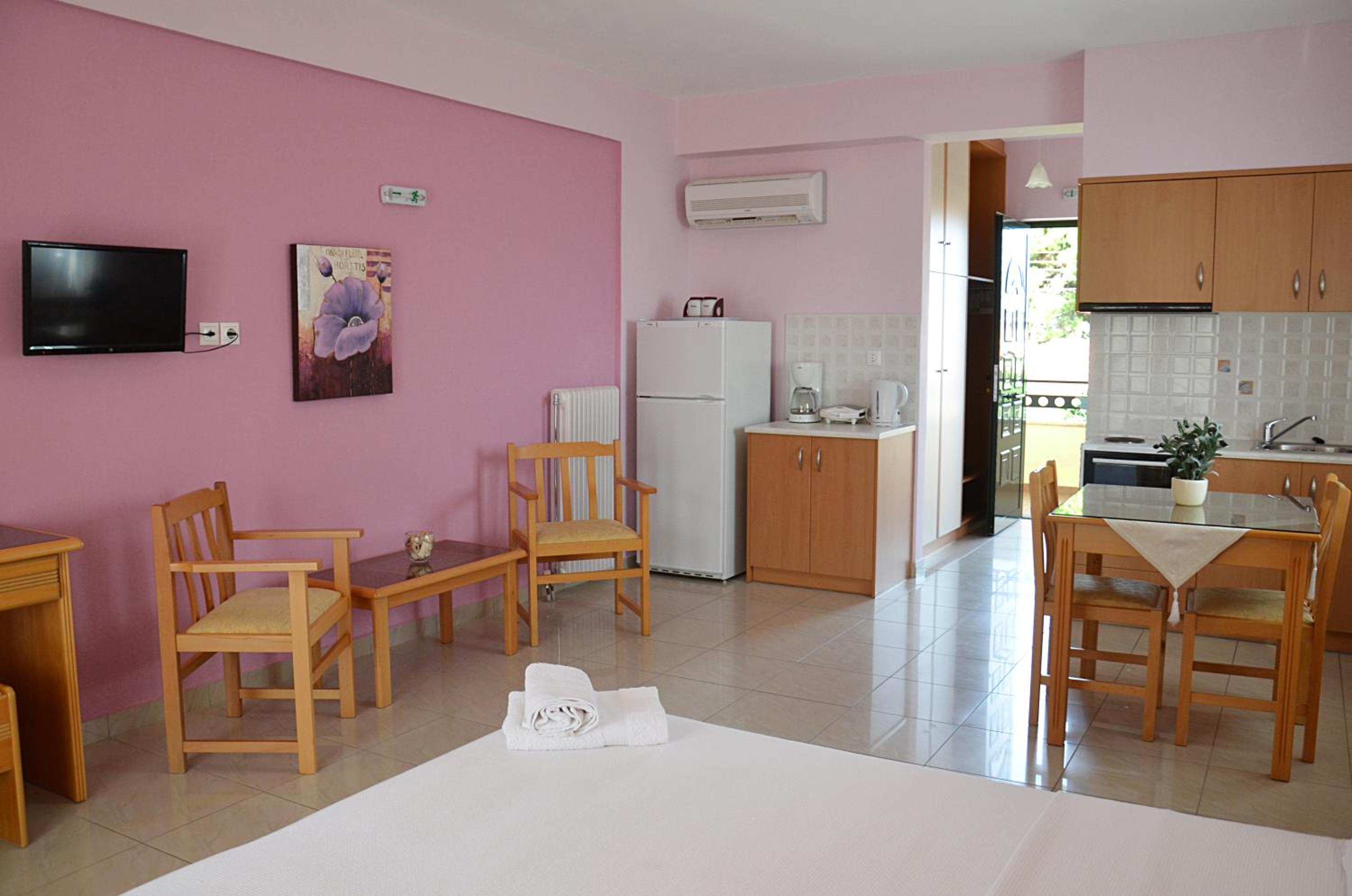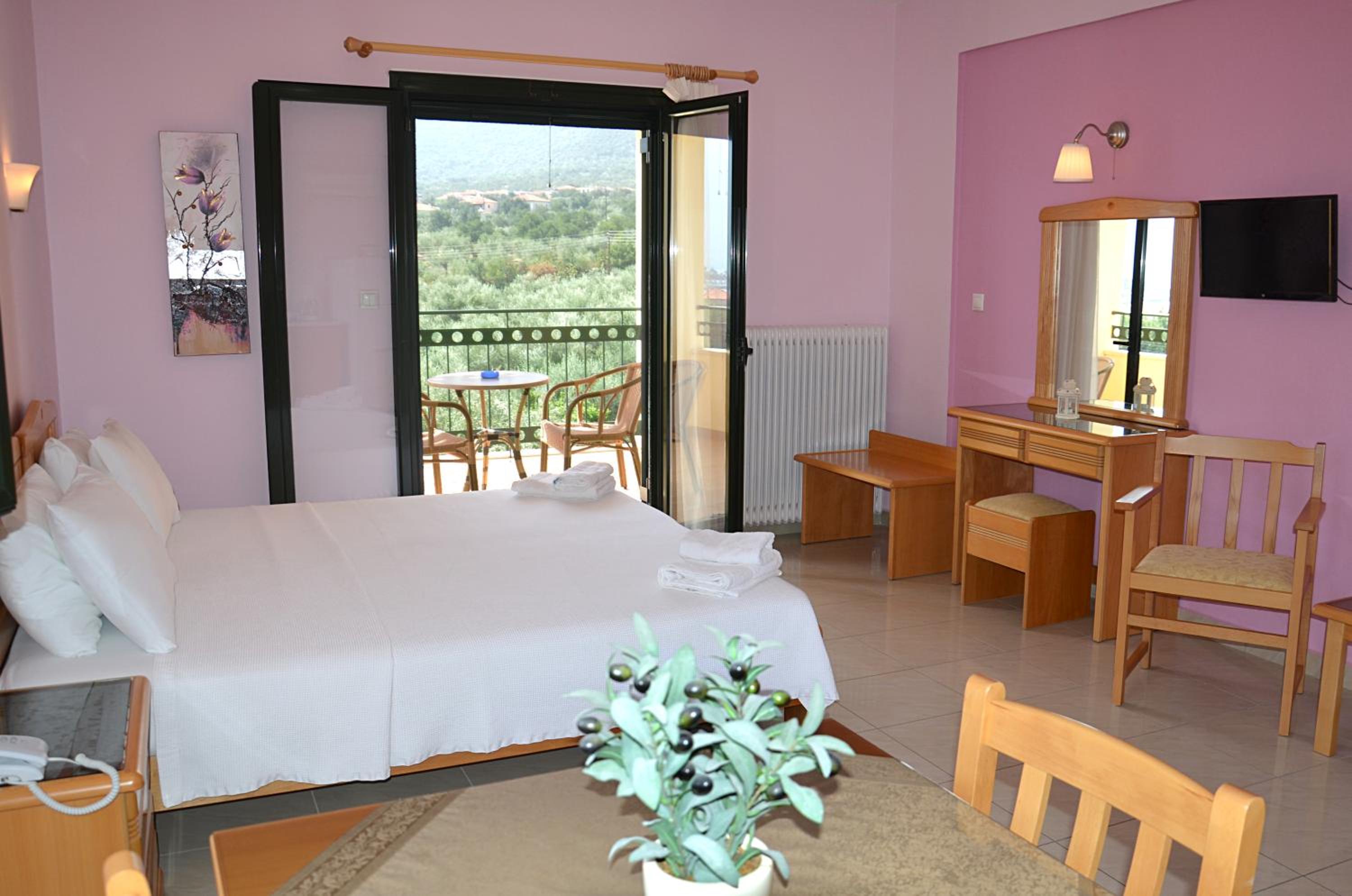 Άνετα δωμάτια με μεγάλο μπαλκόνι και ωραία θέα! Οι οικοδεσπότες ευγενέστατοι και πολύ πρόθυμοι να μας βοηθήσουν με τις αποσκευές μας! Άνετο parking! Καθαριότητα, πολύ ωραίο πρωϊνό! Ο περίβολος μέσα στα λουλούδια και τα ελαιόδεντρα, ιδανικό μέρος για ξεκούραση! Η παραλία καθώς και τα μαγαζιά σε πολύ κοντινή απόσταση, πηγαίνεις και χωρίς αυτοκίνητο!