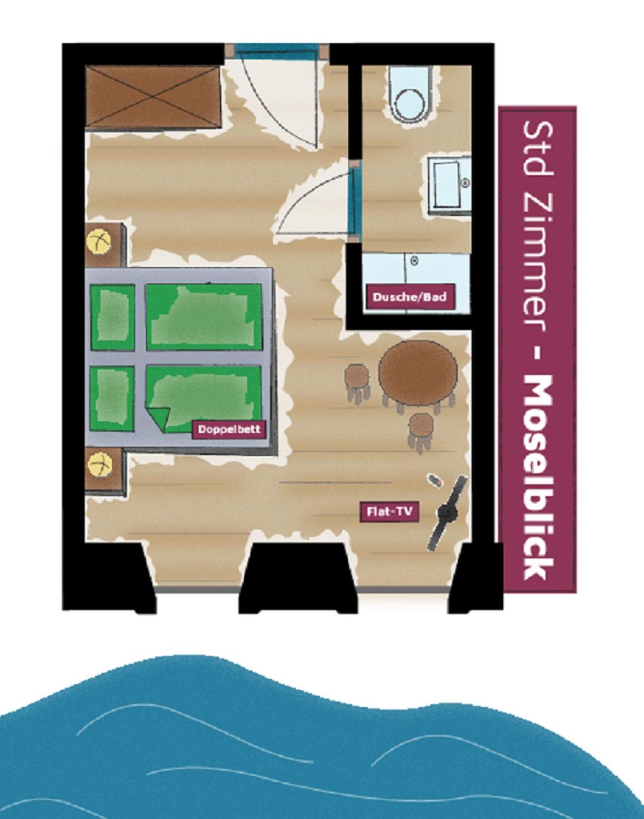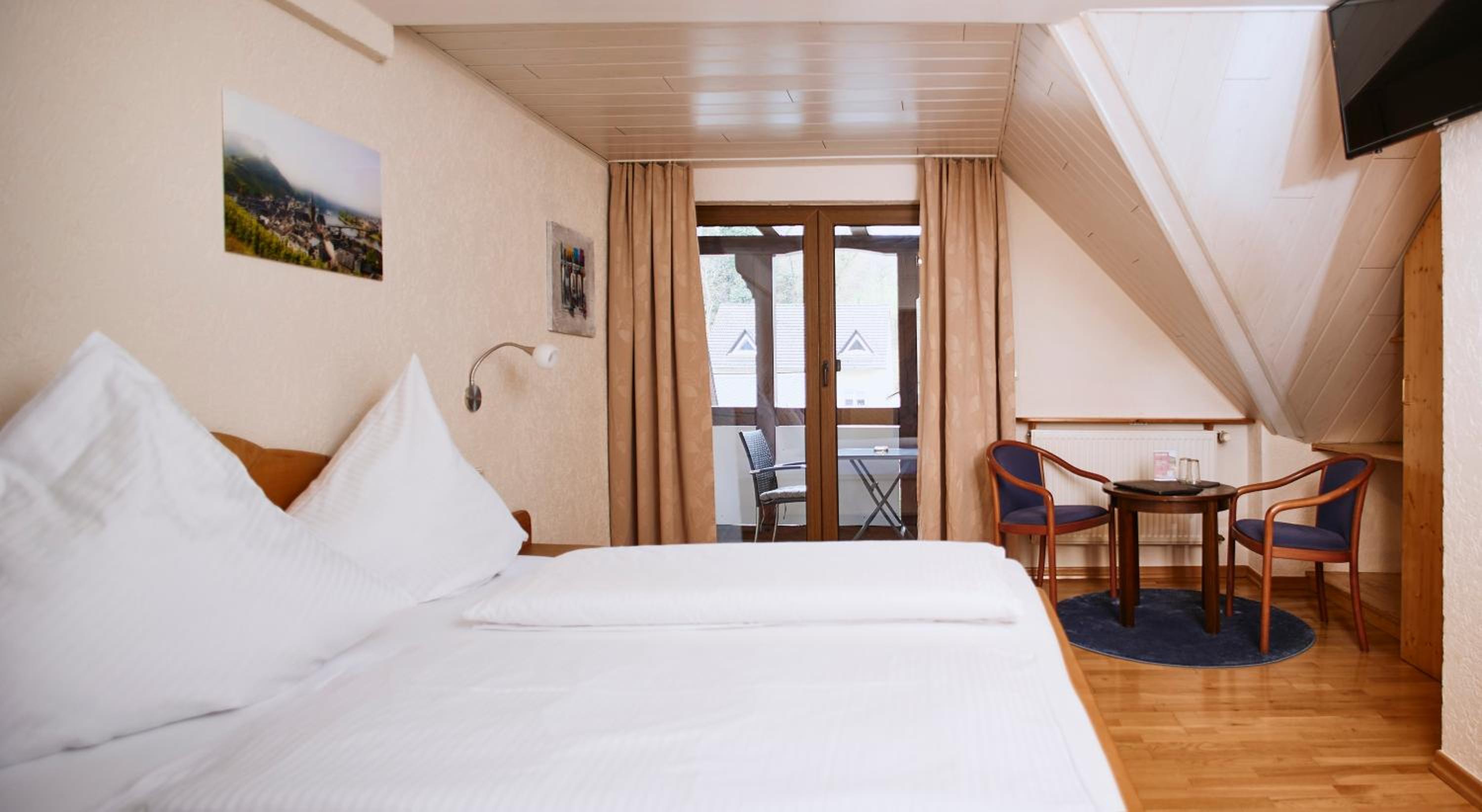 Le diner sur place était excellent, la vue sur la Moselle offre un cadre romantique, et la chambre correspondait à nos attentes en termes d'espace, de confort et de décoration. Le personnel était également disponible et souriant.