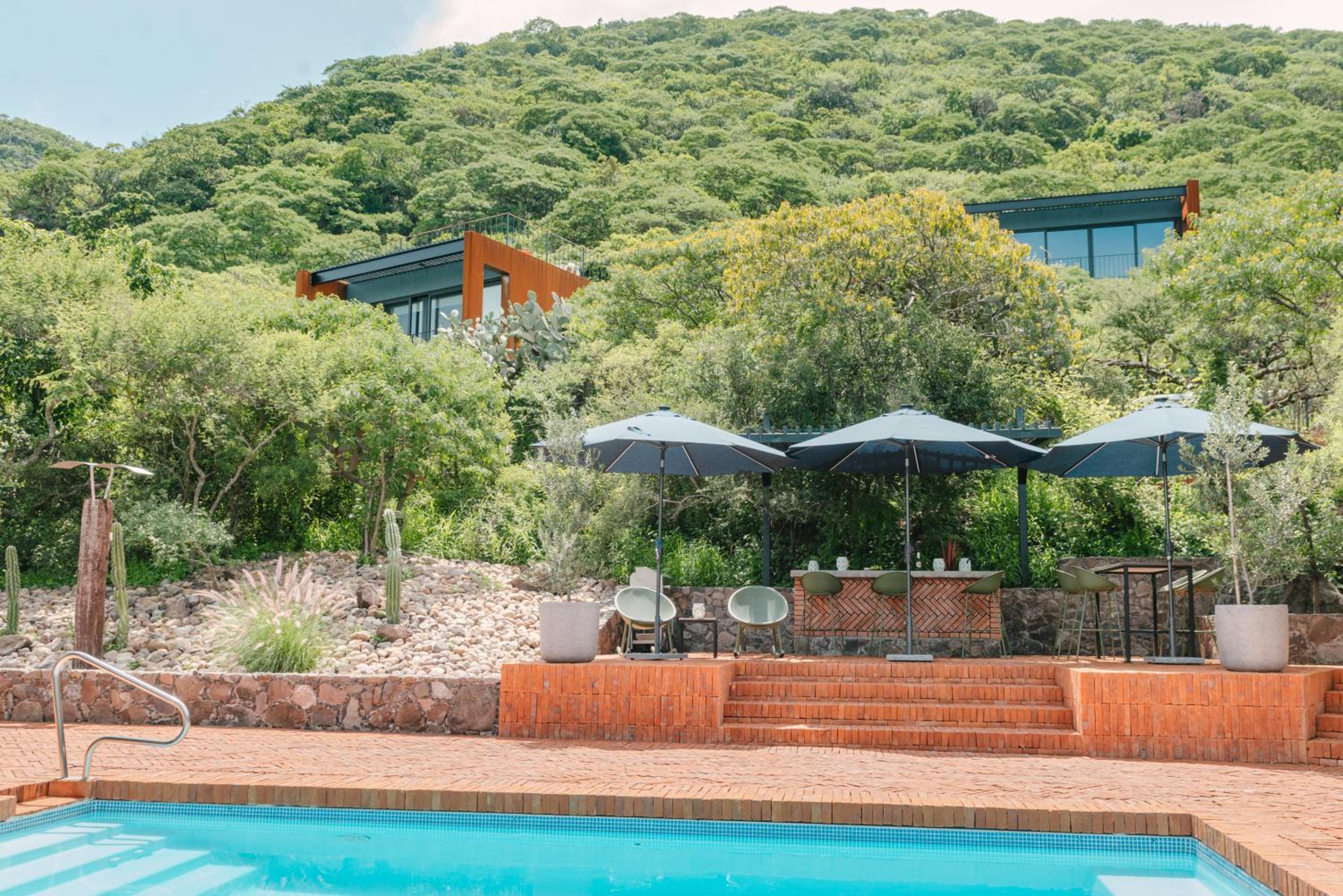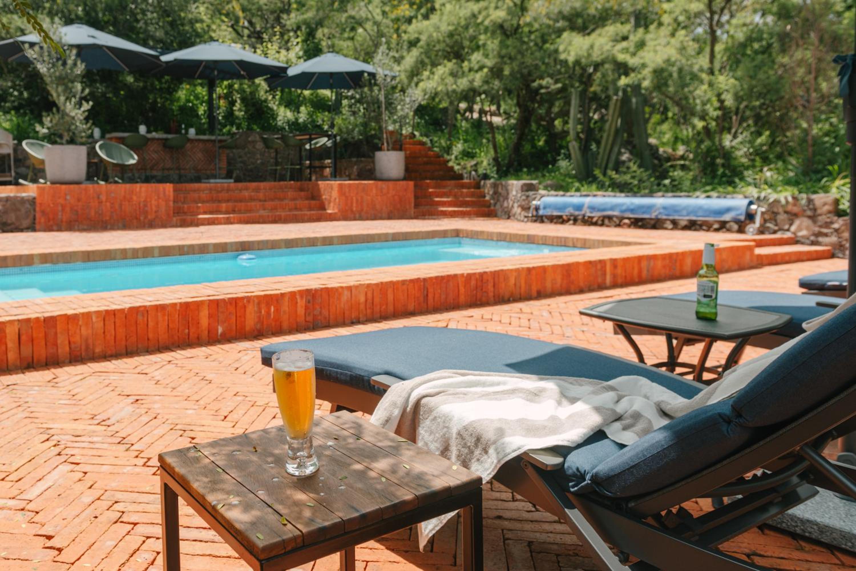 Escape to Entremontes Scenic Retreat and enjoy the tranquility of our outdoor swimming pool amidst beautiful gardens and a relaxing terrace.