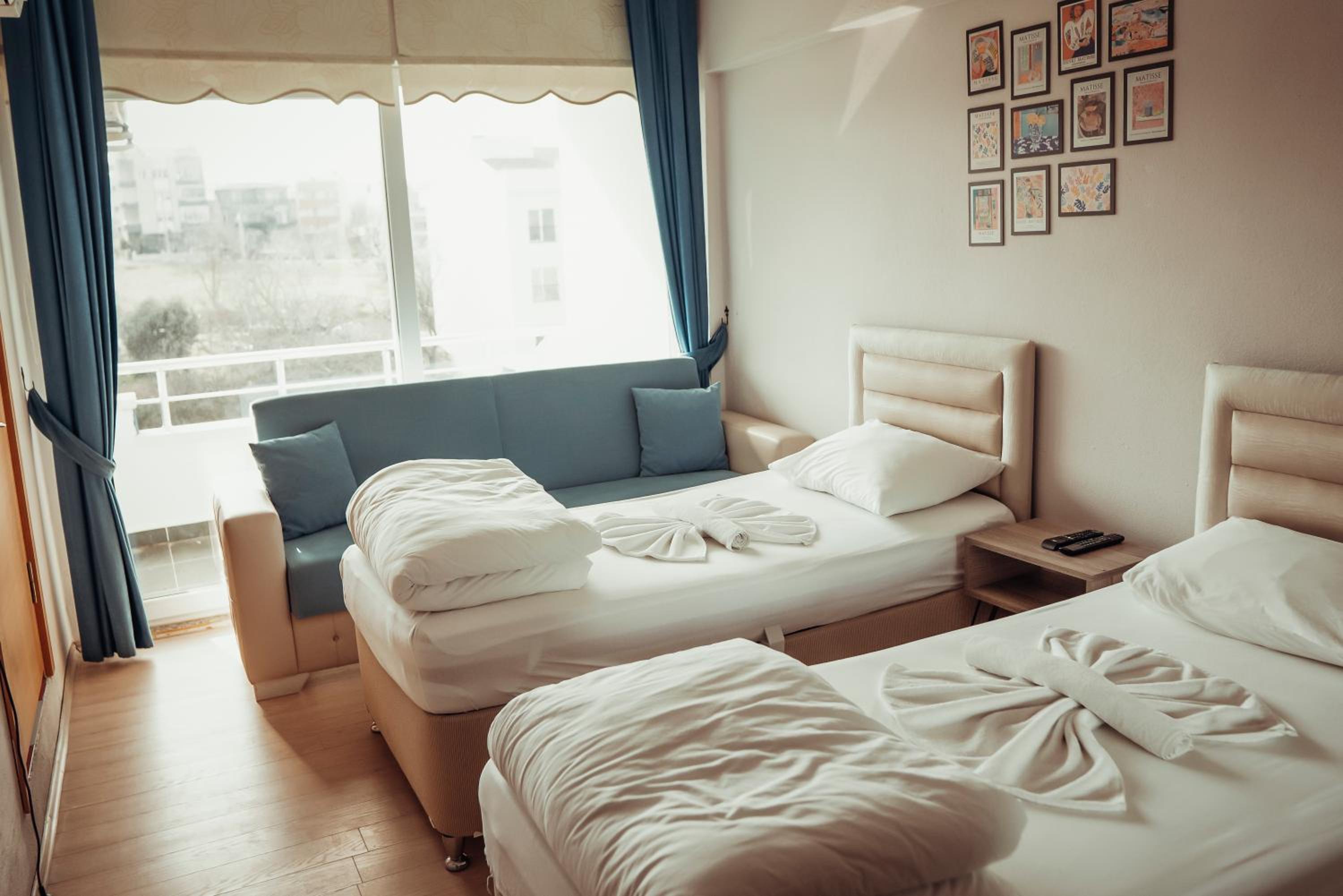 -Odamız geniş, aydınlık, havadar, klimalı, deniz manzaralı, harika gün doğumu olan, yatağı rahat/geniş ,TV'si olan bir odaydı.