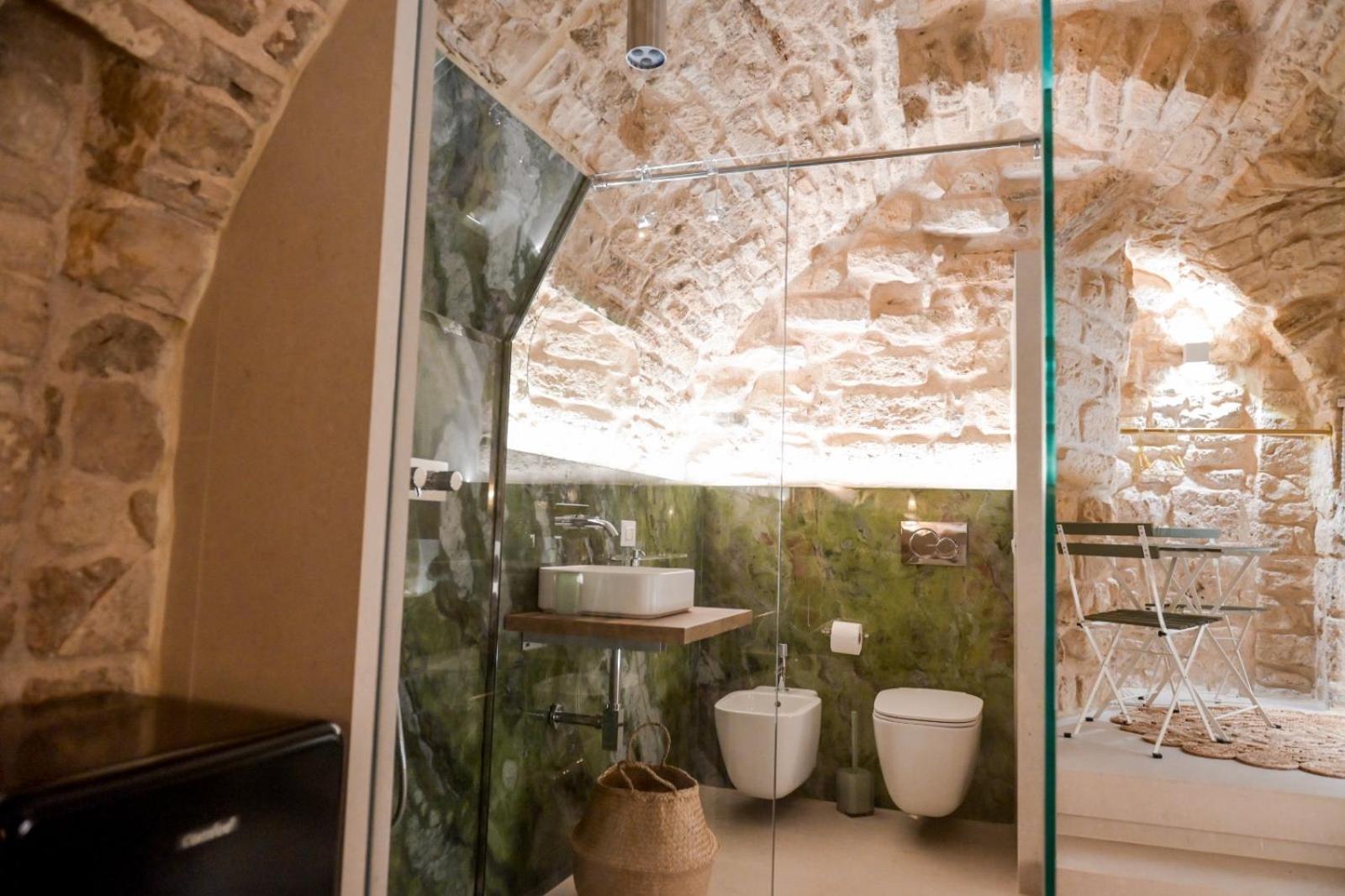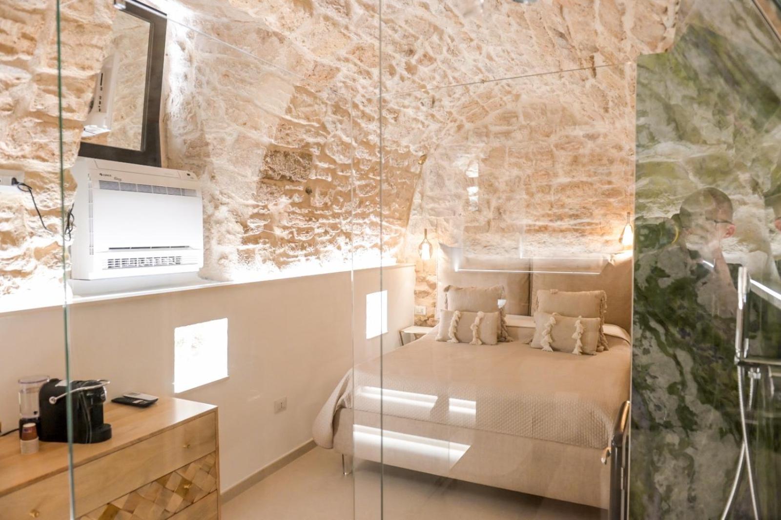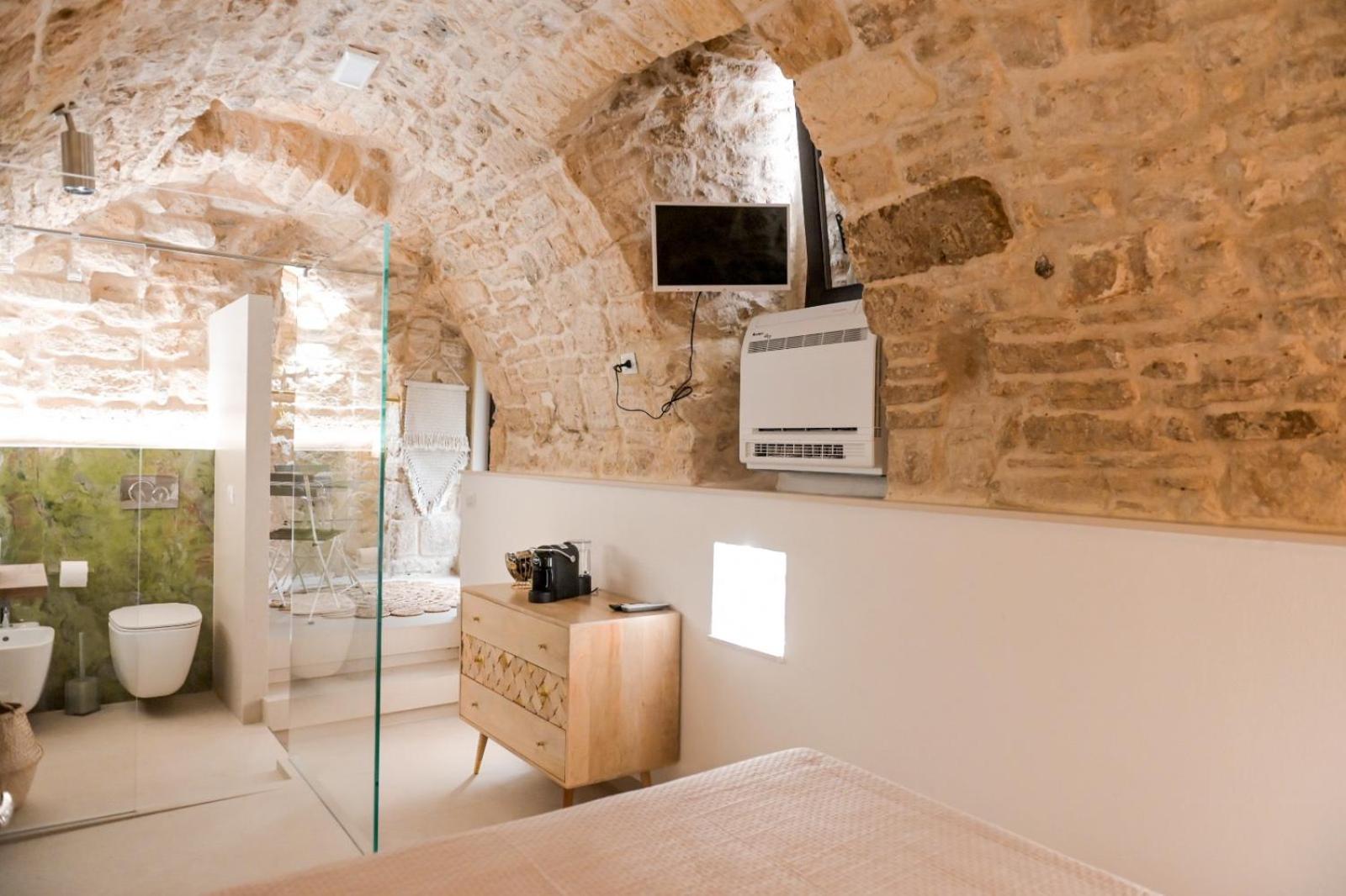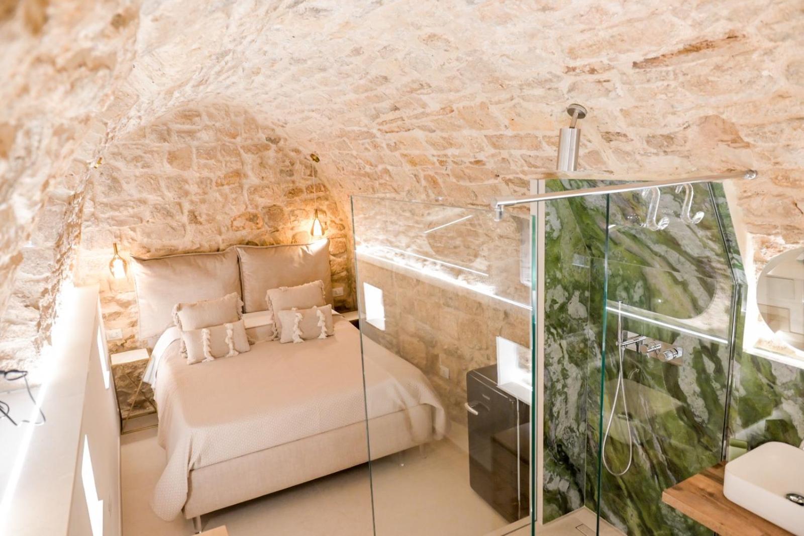 Felt like we were sleeping in a cave like a Trulli or in Materra. Location in the hustle and bustle and fun of Bari, yet the room itself was so quiet and tucked away