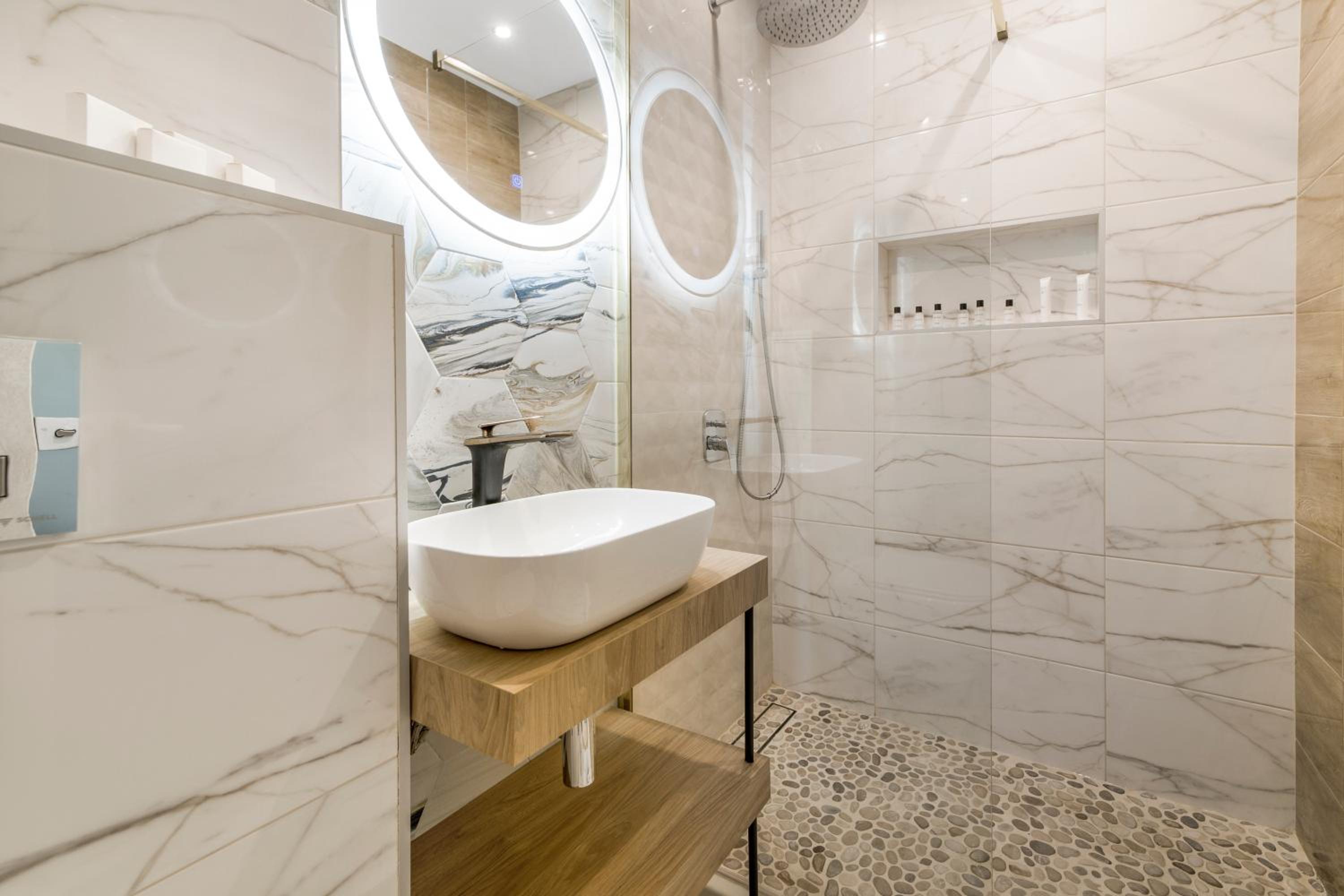 I appreciate the friendly staff, especially helpful for our late arrival. I liked the nice view and small pool with comfy seating arrangements, as in the pictures; Relaxed music at the pool and a very stylish reception. Sadly, I appreciated the Lidl nearby to buy breakfast.