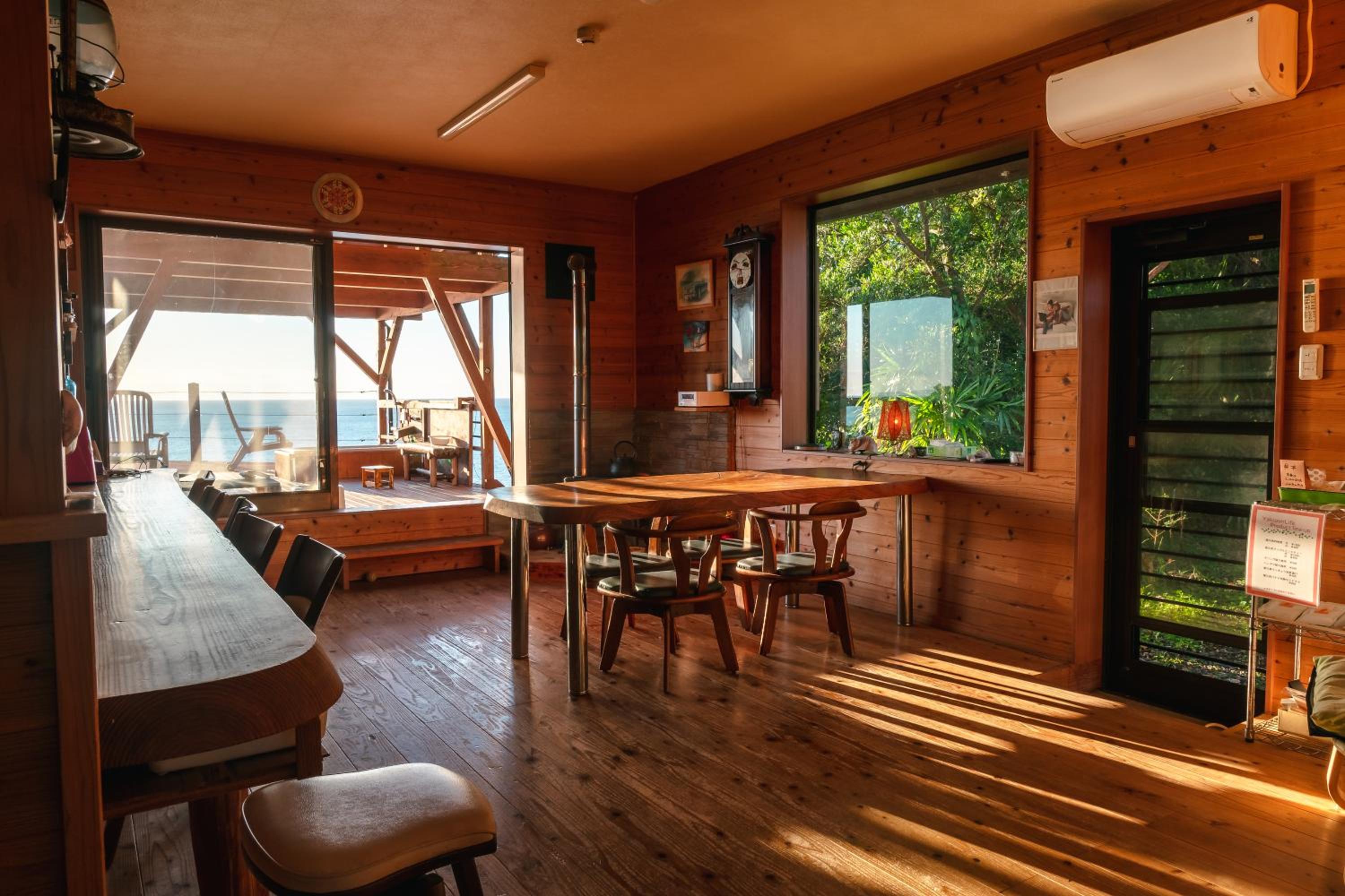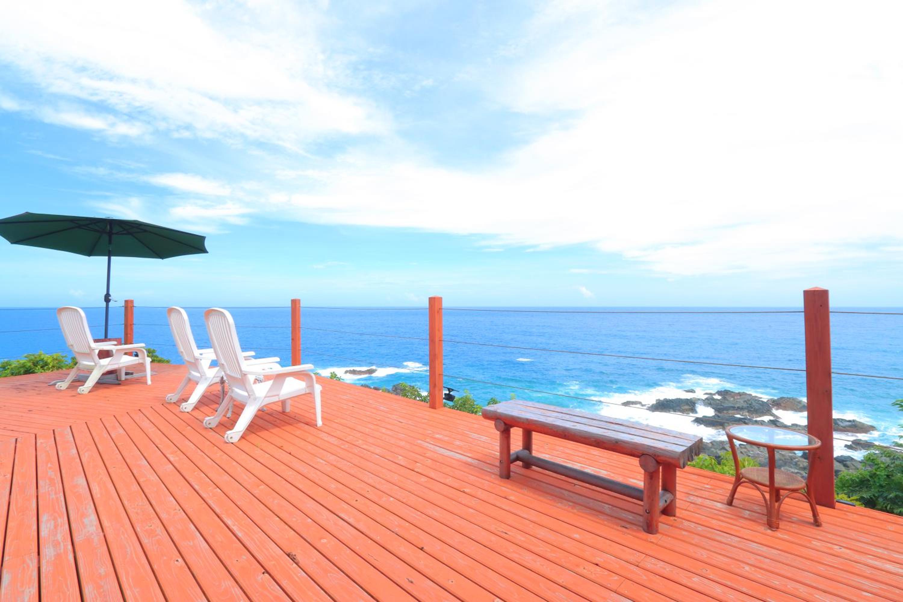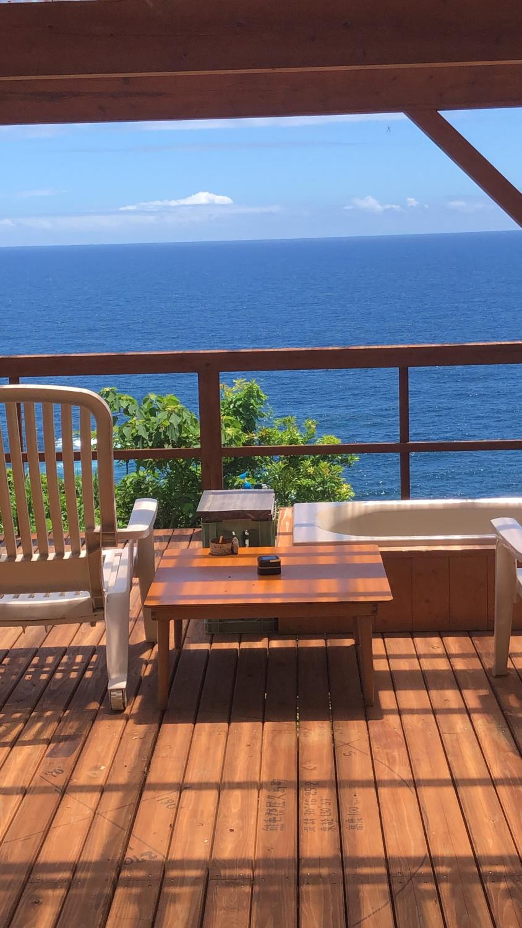 The service was excellent! They took me to the airport and dropped me off at the bus station when I needed to use the bus. It was my birthday and they got me a cake and played/sang with the saxophone! The view from the deck is incredible, and you can see the sunrise in the morning, stars at night. The weather on the south side of the island is so much warmer than the north, too. Glad I stayed in the southern part. Keisuke makes incredible breakfasts. Splurge on one of their dinners. This place is best for couples with a car cuz of the room size and the location.