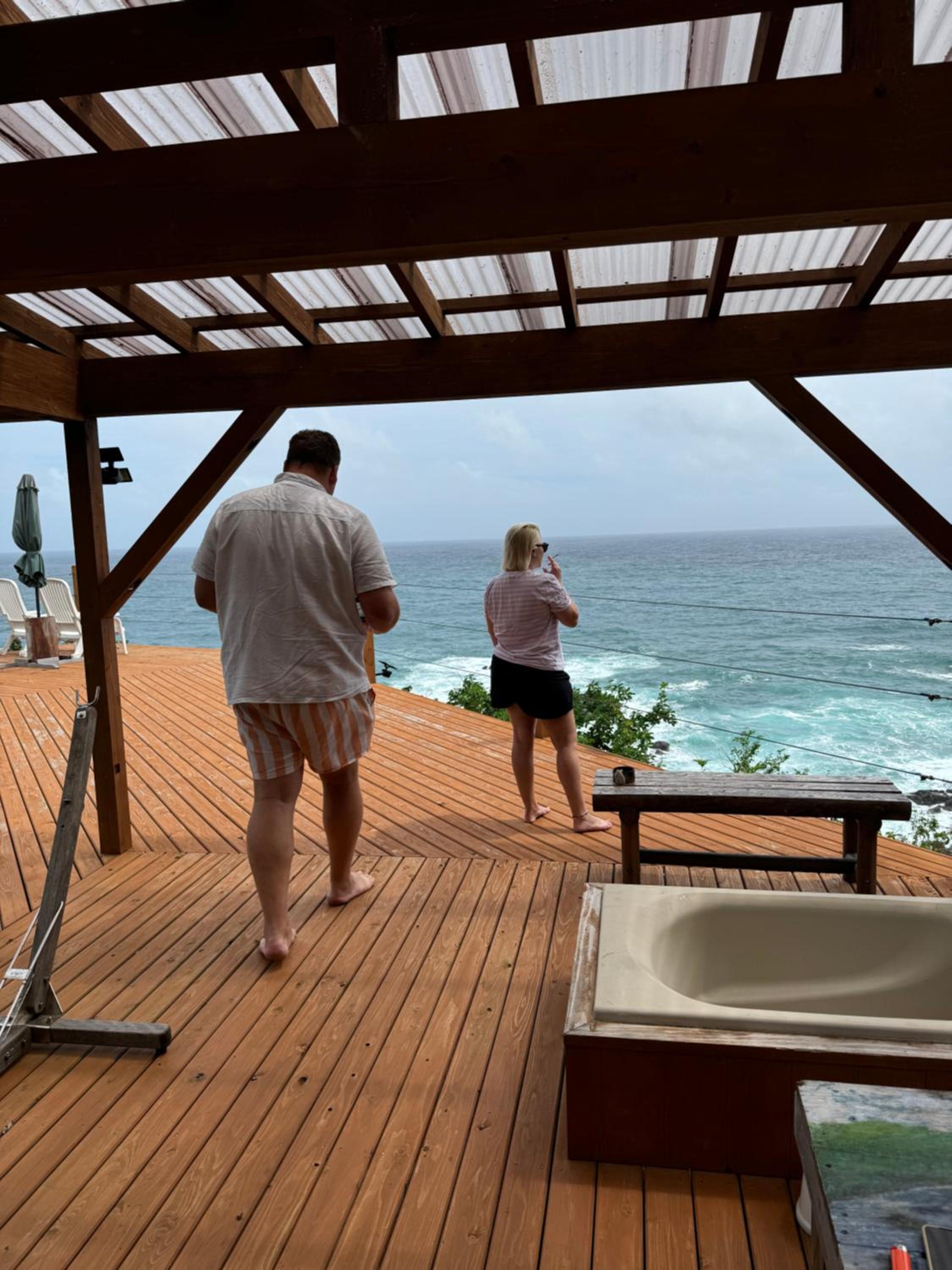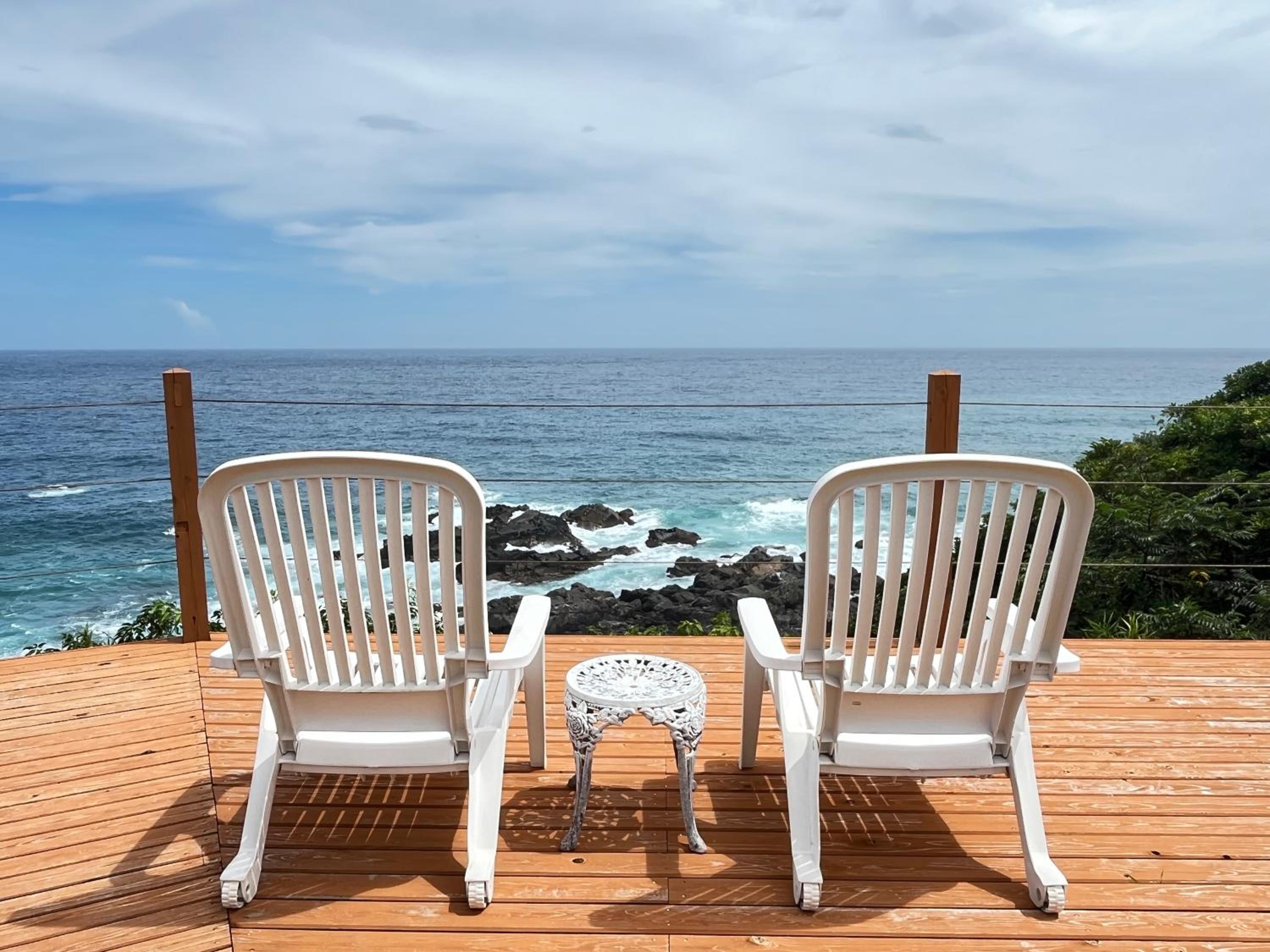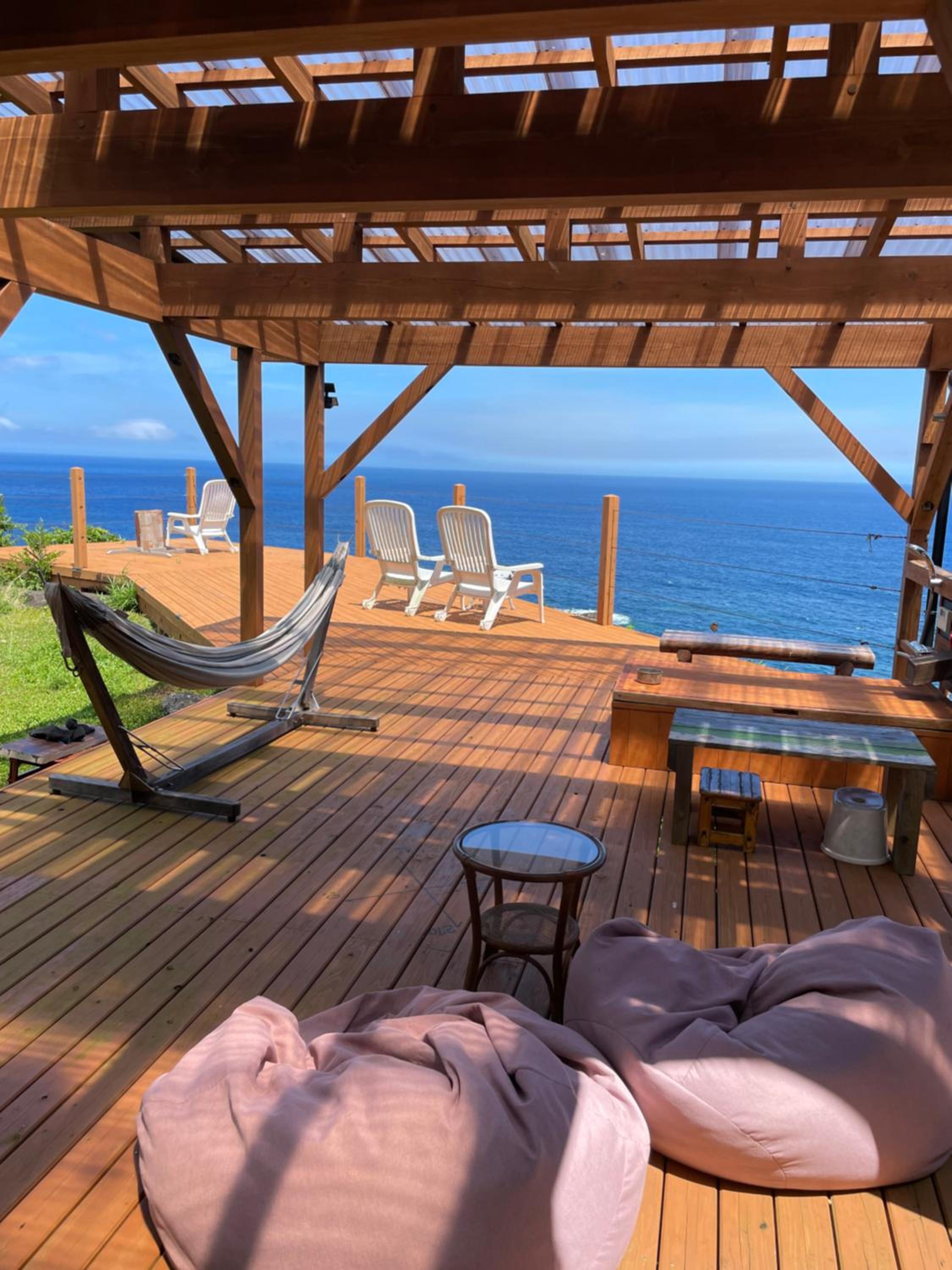 The service was excellent! They took me to the airport and dropped me off at the bus station when I needed to use the bus. It was my birthday and they got me a cake and played/sang with the saxophone! The view from the deck is incredible, and you can see the sunrise in the morning, stars at night. The weather on the south side of the island is so much warmer than the north, too. Glad I stayed in the southern part. Keisuke makes incredible breakfasts. Splurge on one of their dinners. This place is best for couples with a car cuz of the room size and the location.