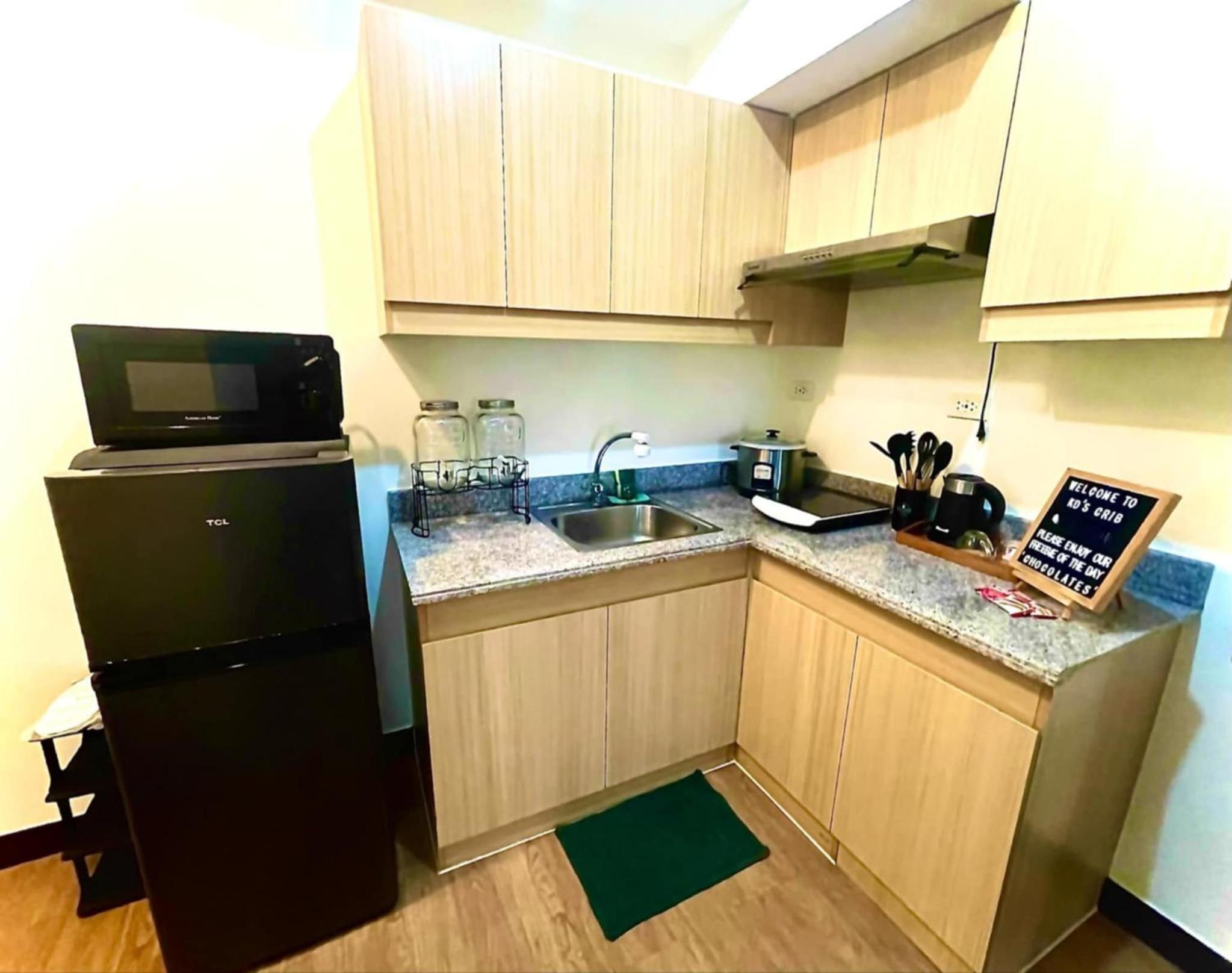The floor was dusty. The shower area has used shampoo and hair on the drainage. The dining table and chair still has “caramel” stain. The appliances are obviously not used and cleaned - microwave still has food stains. No trash bin provided. No toilet paper and toiletries.