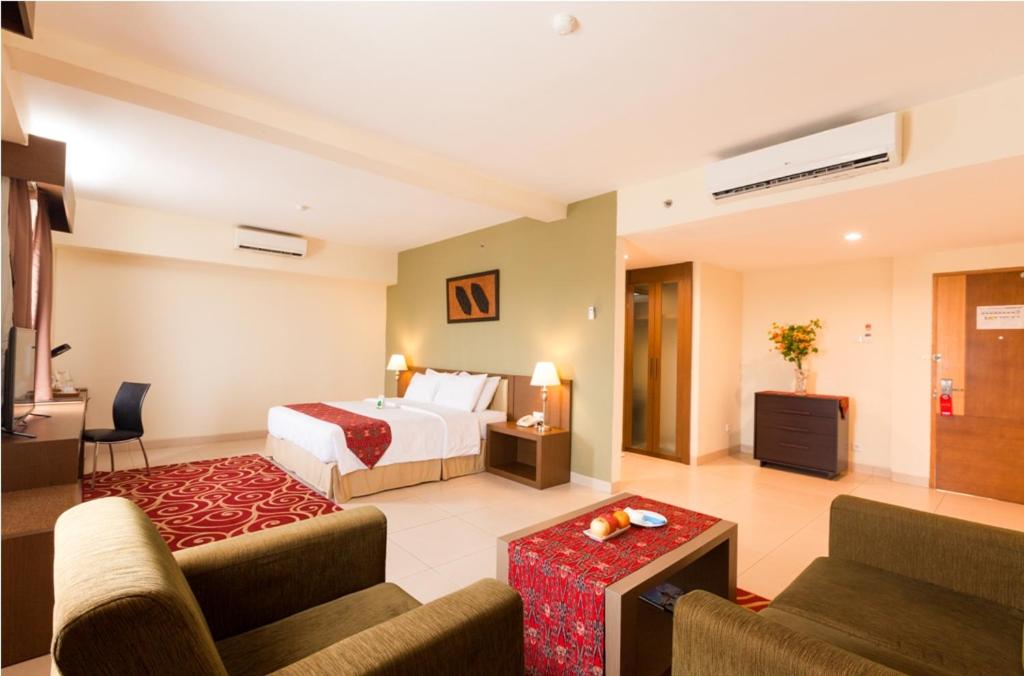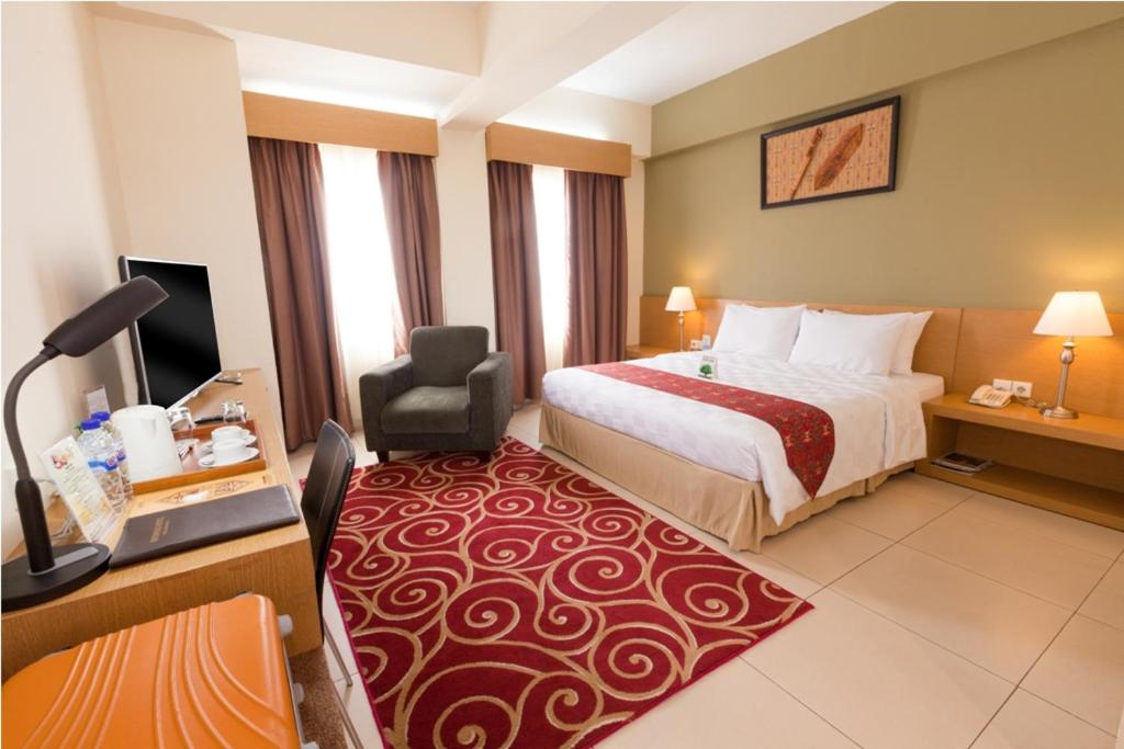 Hotel Luwansa Palangkaraya offers a 3-star experience with a terrace and a restaurant for guests to enjoy. The property boasts a 24-hour front desk, airport transfers, room service, and free WiFi. Each room is equipped with air conditioning, a flat-screen TV, a safety deposit box, and a private bathroom with complimentary toiletries. The hotel's attention to detail includes providing cozy bed linen and fluffy towels for a comfortable stay. Conveniently located near Tjilik Riwut Airport, guests can easily reach their destination. Book now for a relaxing and enjoyable stay at Hotel Luwansa Palangkaraya.