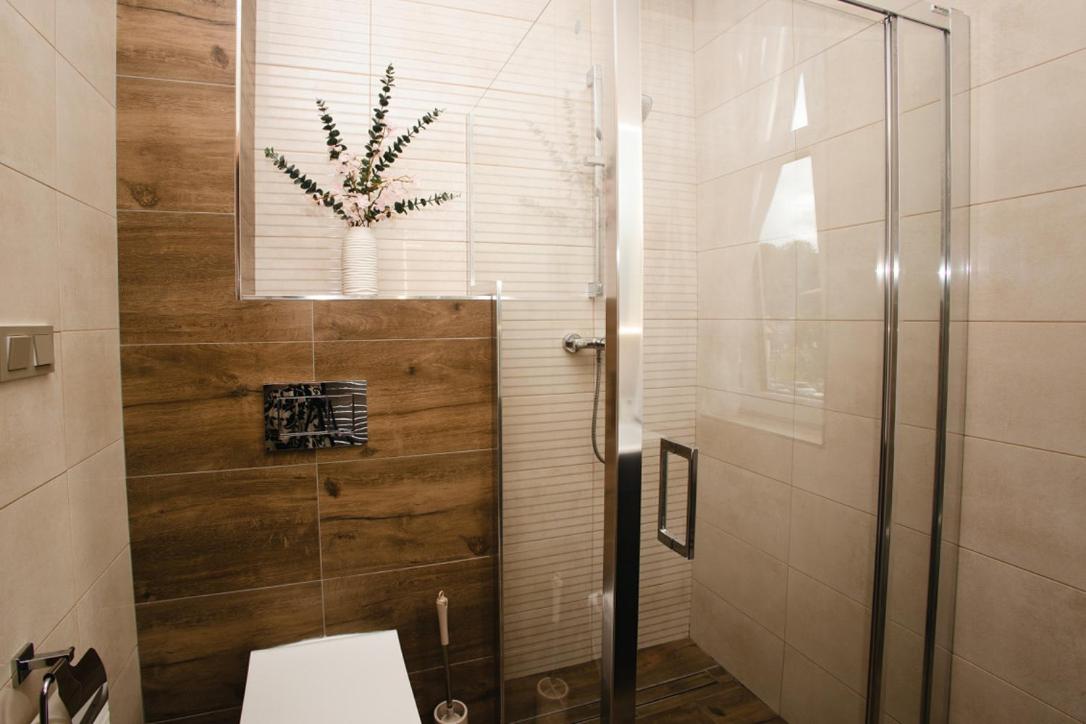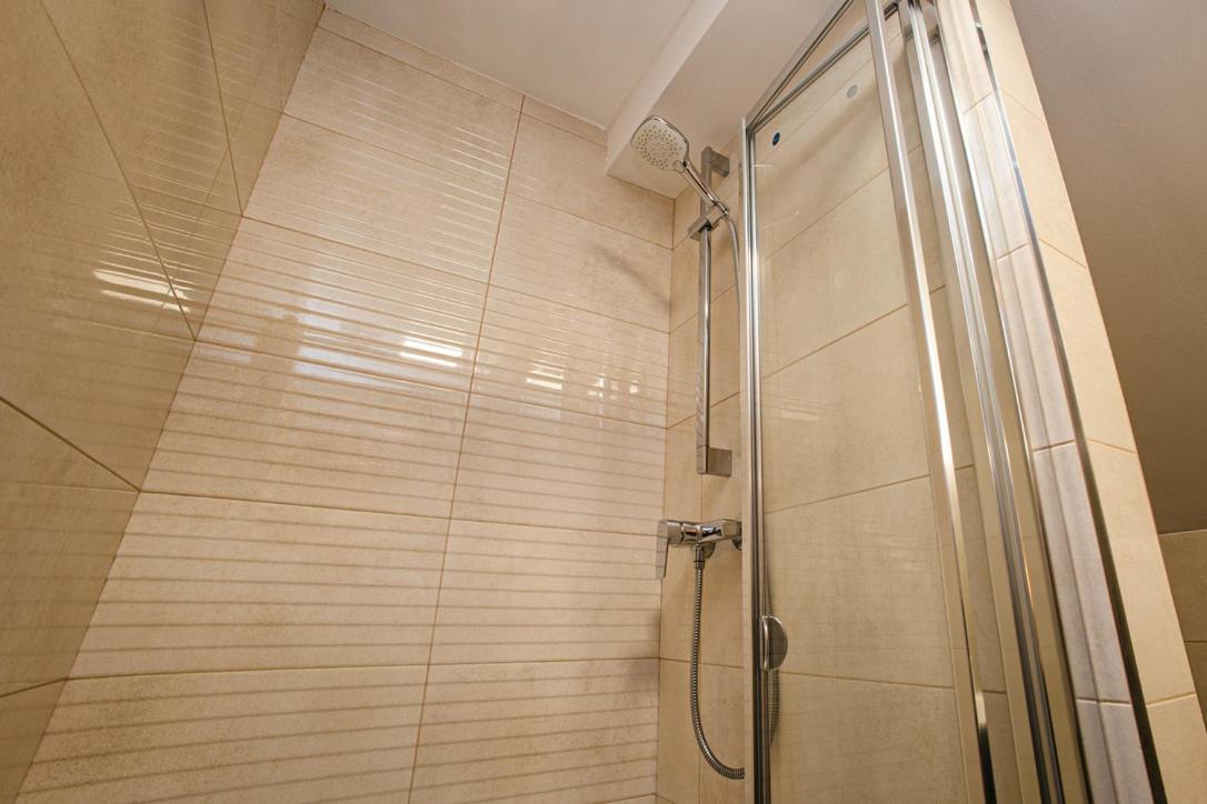 Onze kamer zat boven bij het dak dus de douche had een schuin stuk dak waar je vaak tegen stoot tijdens het douche
