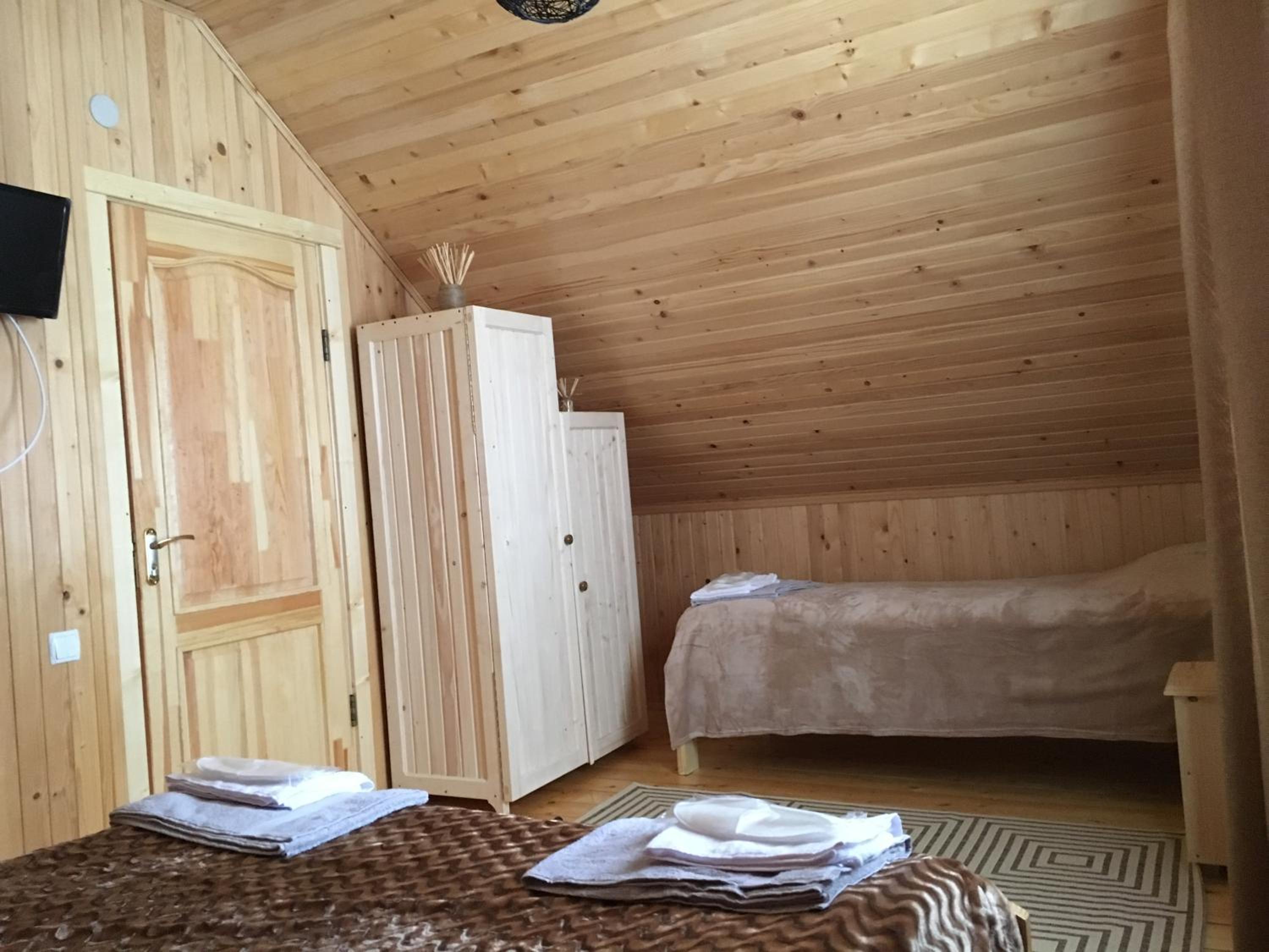 Charming Accommodations: Nestled in the Transcarpathia region, our hotel offers comfortable family rooms with a homely touch. Each room features a wardrobe for your convenience.