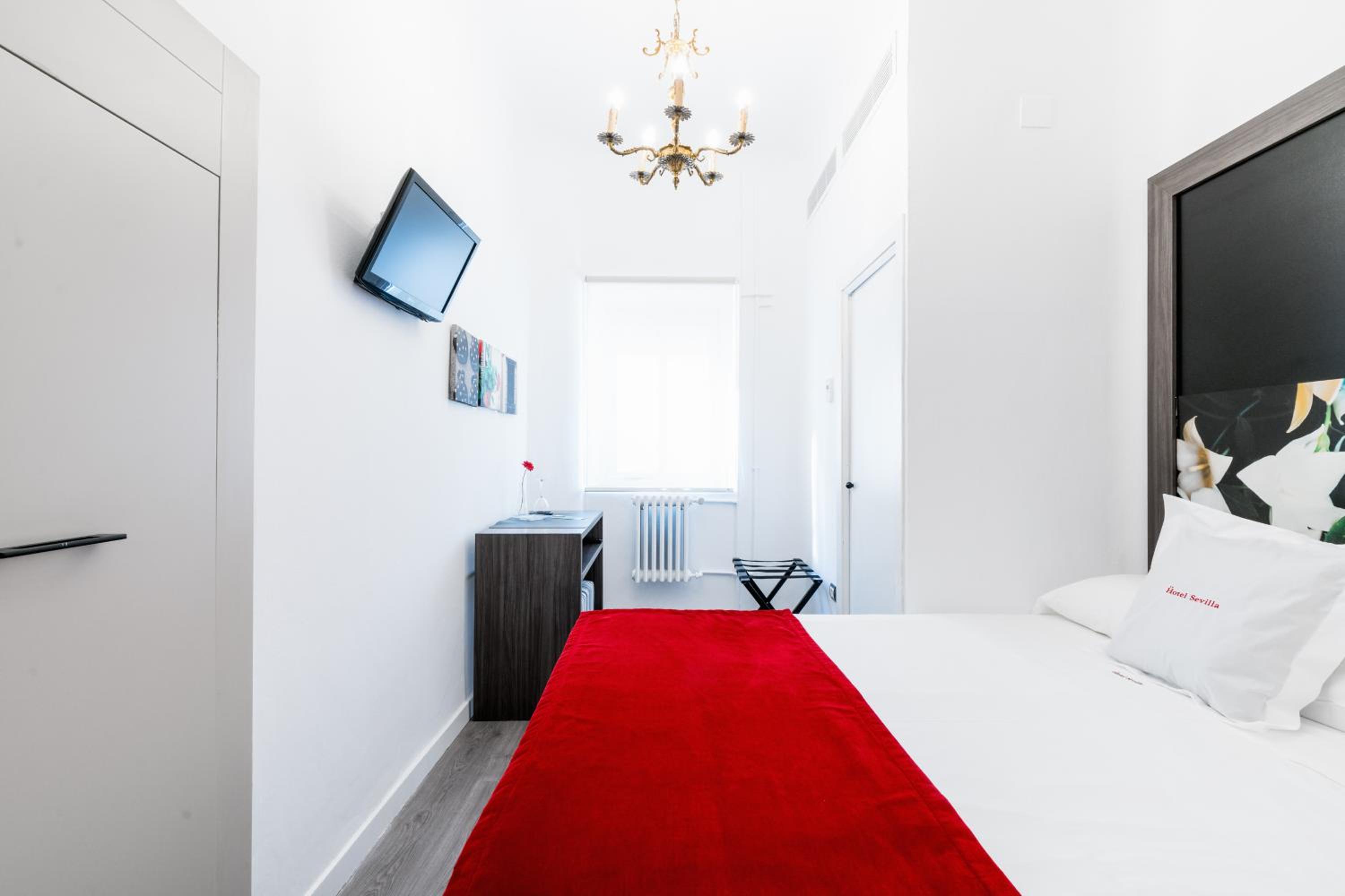 Each air-conditioned room at Hotel Sevilla offers a cozy retreat with a flat-screen TV, free Wi-Fi, wooden floors, and simple, modern décor, ensuring a comfortable stay for guests.