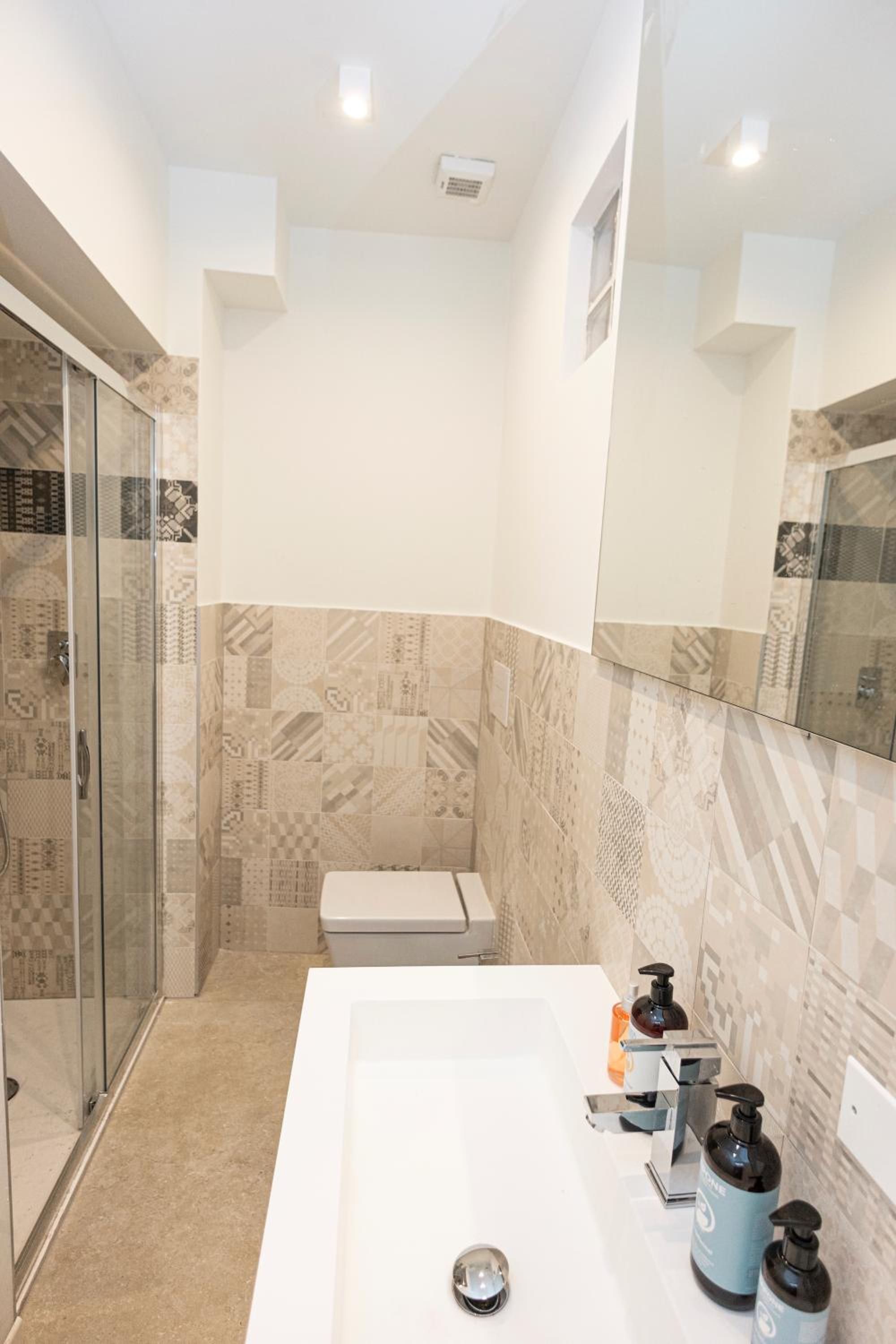 La porta del bagno non si chiudeva,lo sciacquone mancava di pulsante, il lavandino era estremamente scomodo. Mancavano gli scuri,nonostante la tenda al sorgere del sole c'era luce nella stanza.