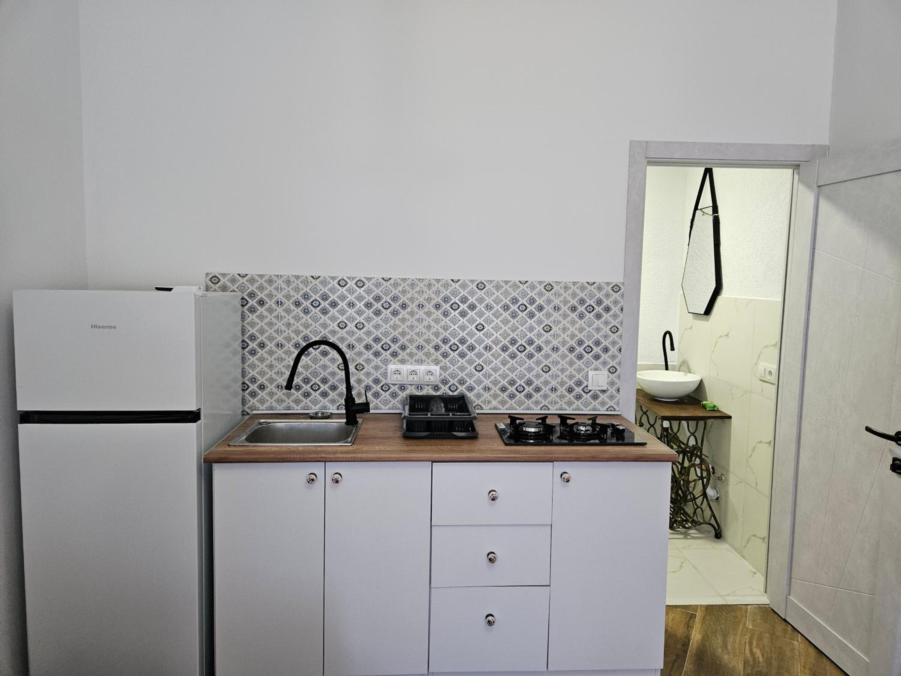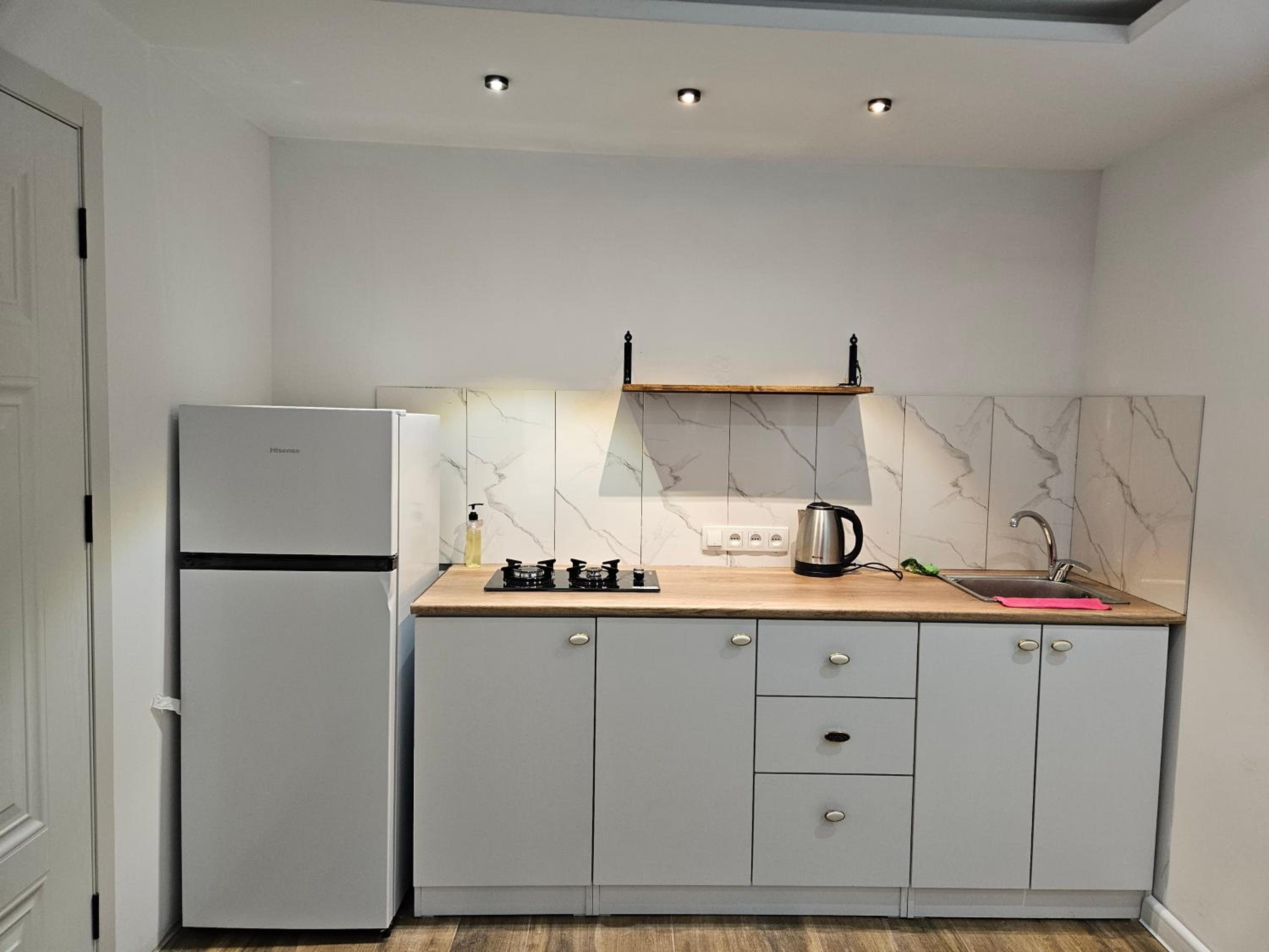 The bathroom facilities could use some maintenance and upgrades. The shower was leaking a bit, the toilet flush did not work very well, and there was no shelf above the sink for hygiene products. The rest of the rooms are in good condition. Note that the adress of the aparthotel has recently changed to Armenian street (we were searching for the hotel on the first day for about 15-20 min on another street, which name was provided in Booking confirmation).