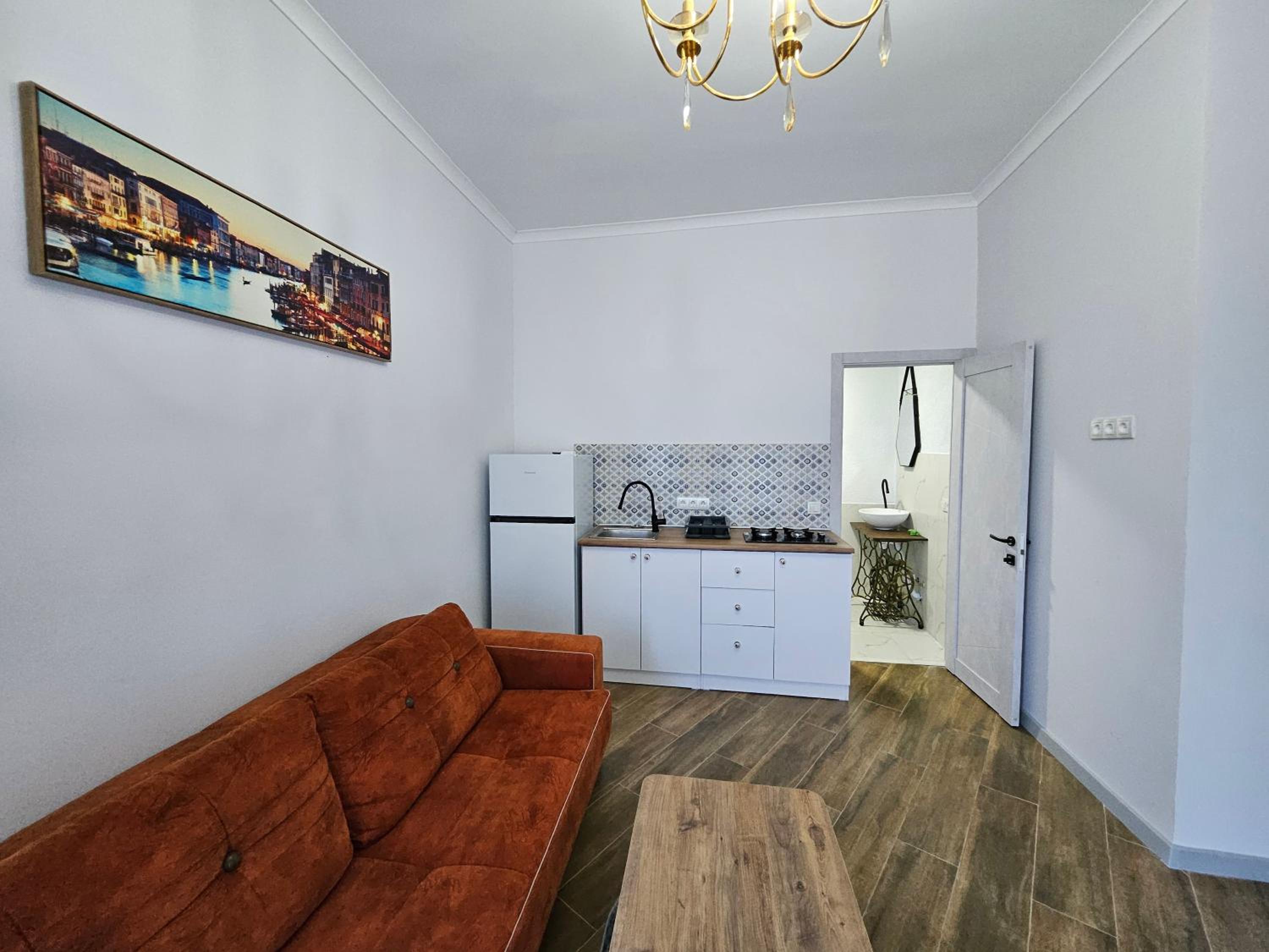 A pleasant terrace and yard with a small pond full of fish. The rooms are stylish, and there is enough stuff for cooking. There’s a small shop with fresh fruits and vegetables nearby. The aparthotel is located in an old calm Armenian district of Tbilisi, and walking through it feels like stepping back in time. While it takes a bit of time to reach the main sights, we either enjoyed long walks when it was not too hot on the streets or took a taxi.