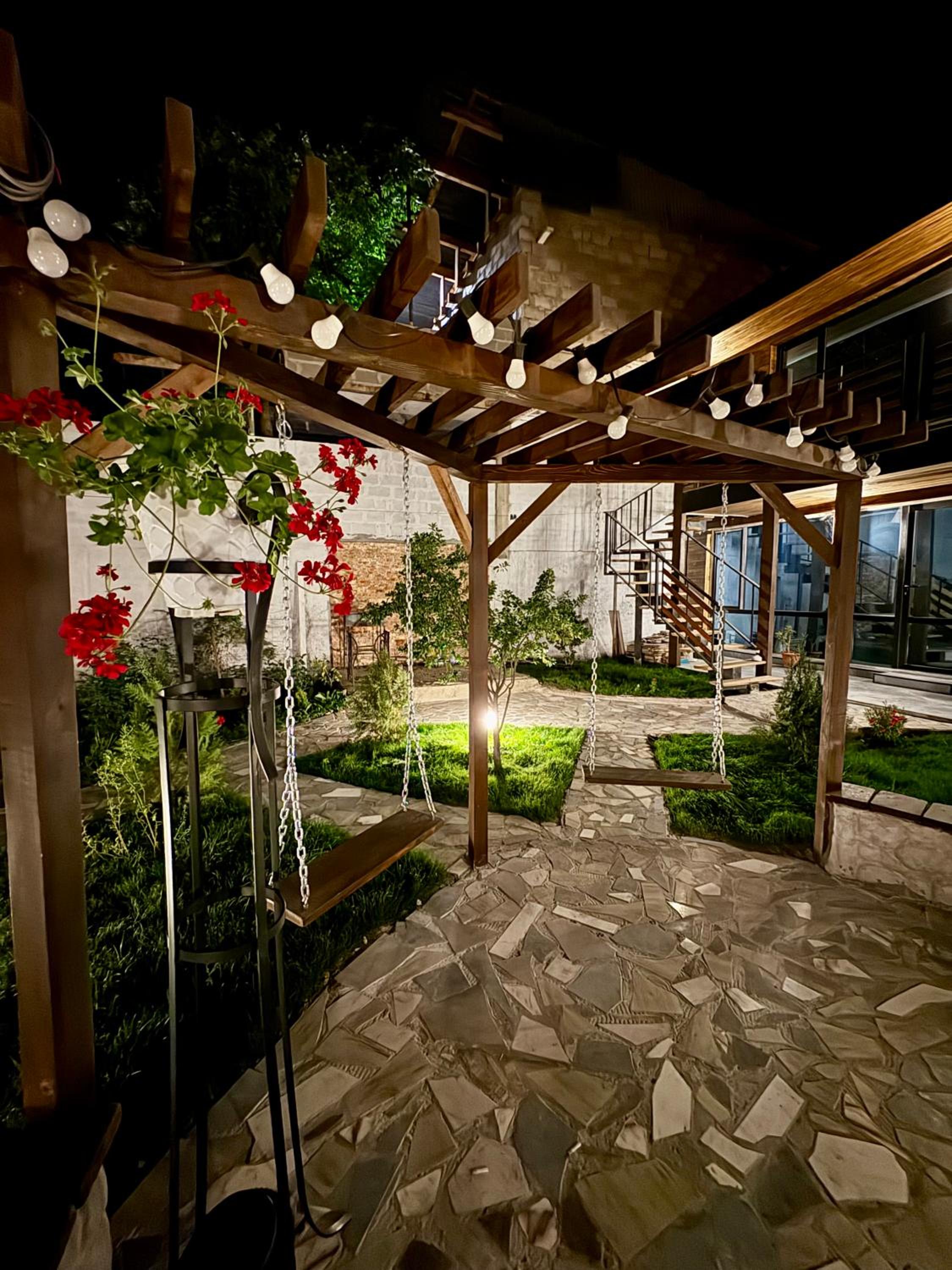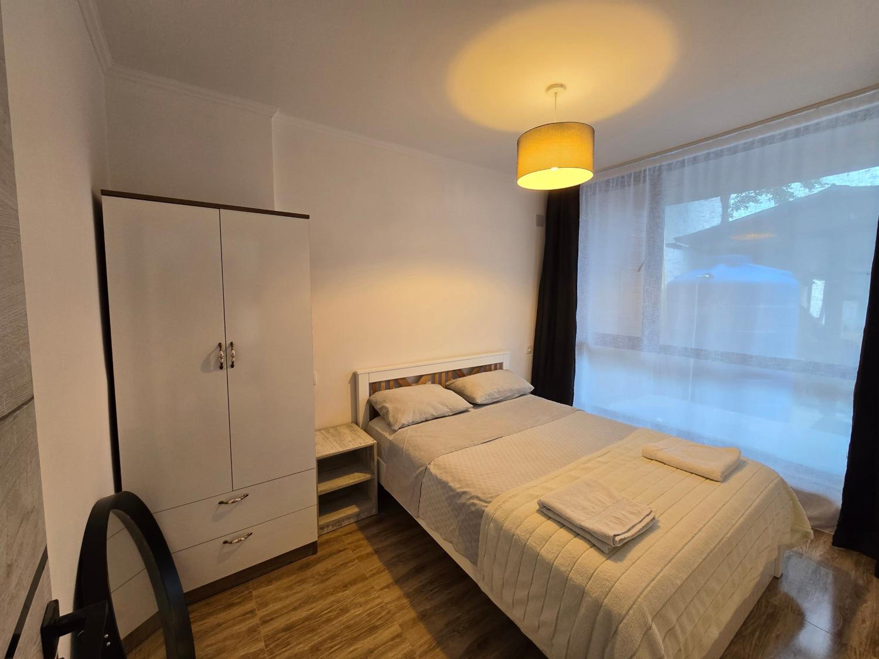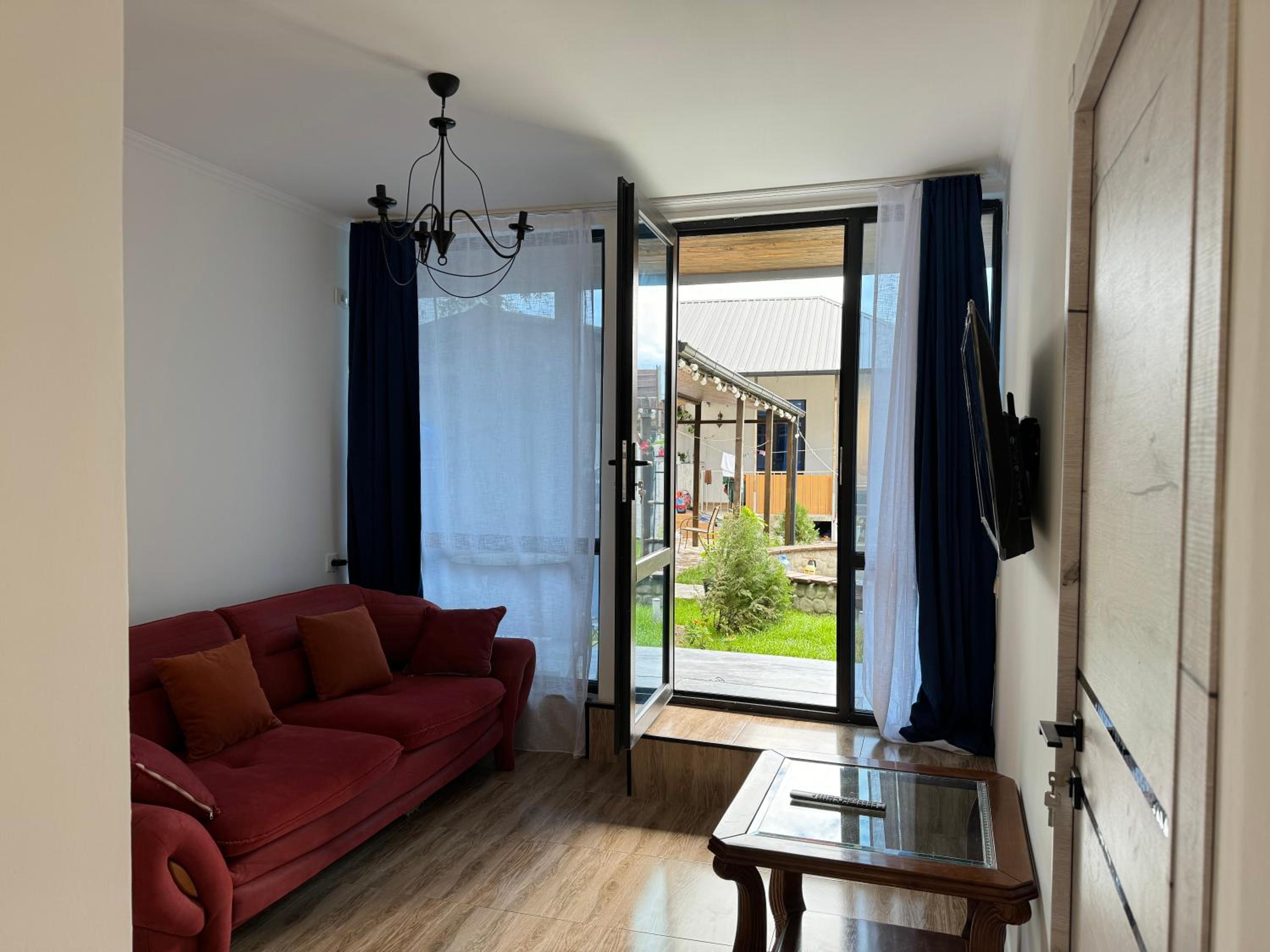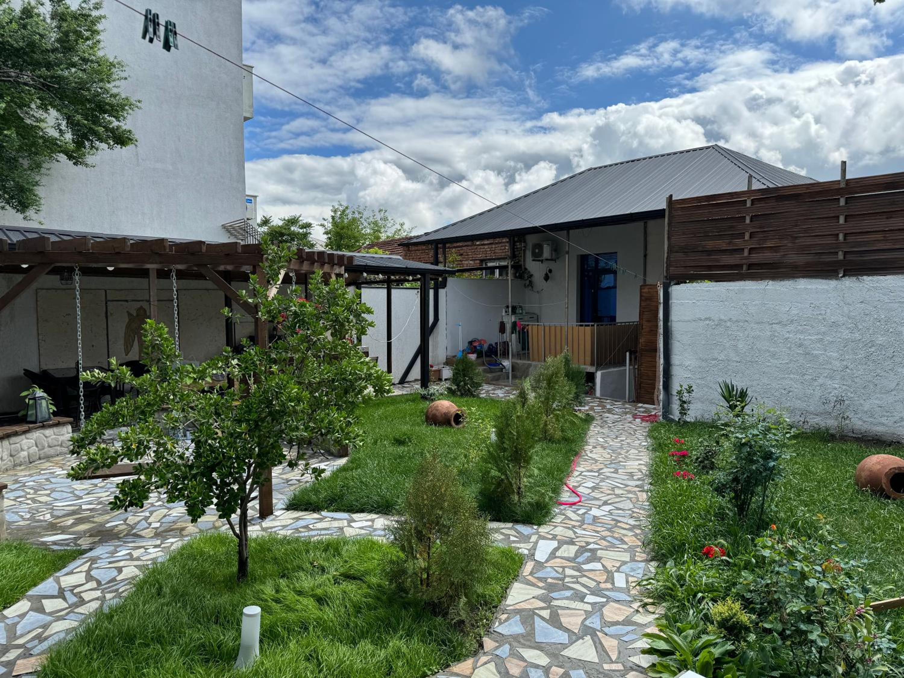 Нам понравилось абсолютно всё! Три шикарных спальни,удобные кровати,что очень важно после долгой дороги) чистенько,хотя это не отель,но были предоставлены банные принадлежности! Есть газовая плита и посуда,микроволновка,фен,утюг,и кондиционер) очень эстетично и атмосферно😍 Купались в чистеньком бассейне,приятно ,что позаботились о фильтре с хлором внутри) тихо и спокойно,никто не шумит и не тревожит,есть место где пожарить шашлычки) Приехать сюда компанией друзей или большой семьей -самый лучший выбор🤌🏼 советуем❤️ есть широкий балкон,где качельки и лежаки,очень много зелени и шикарный гранат на входе) место для машины тоже имеется во дворе дома.