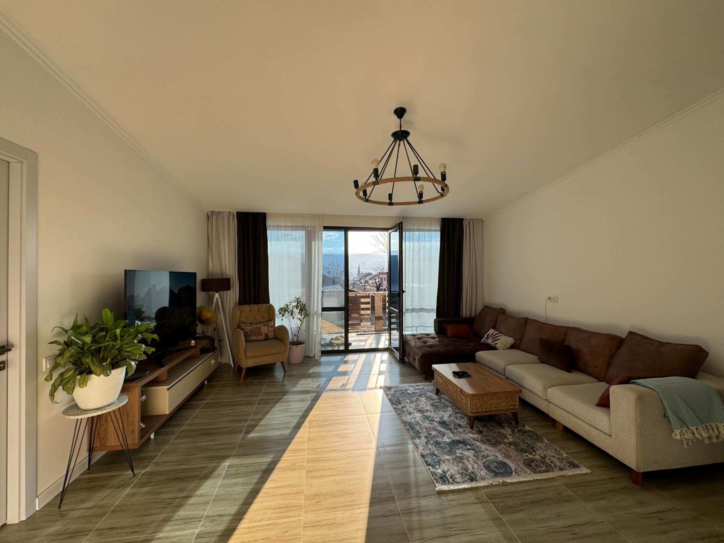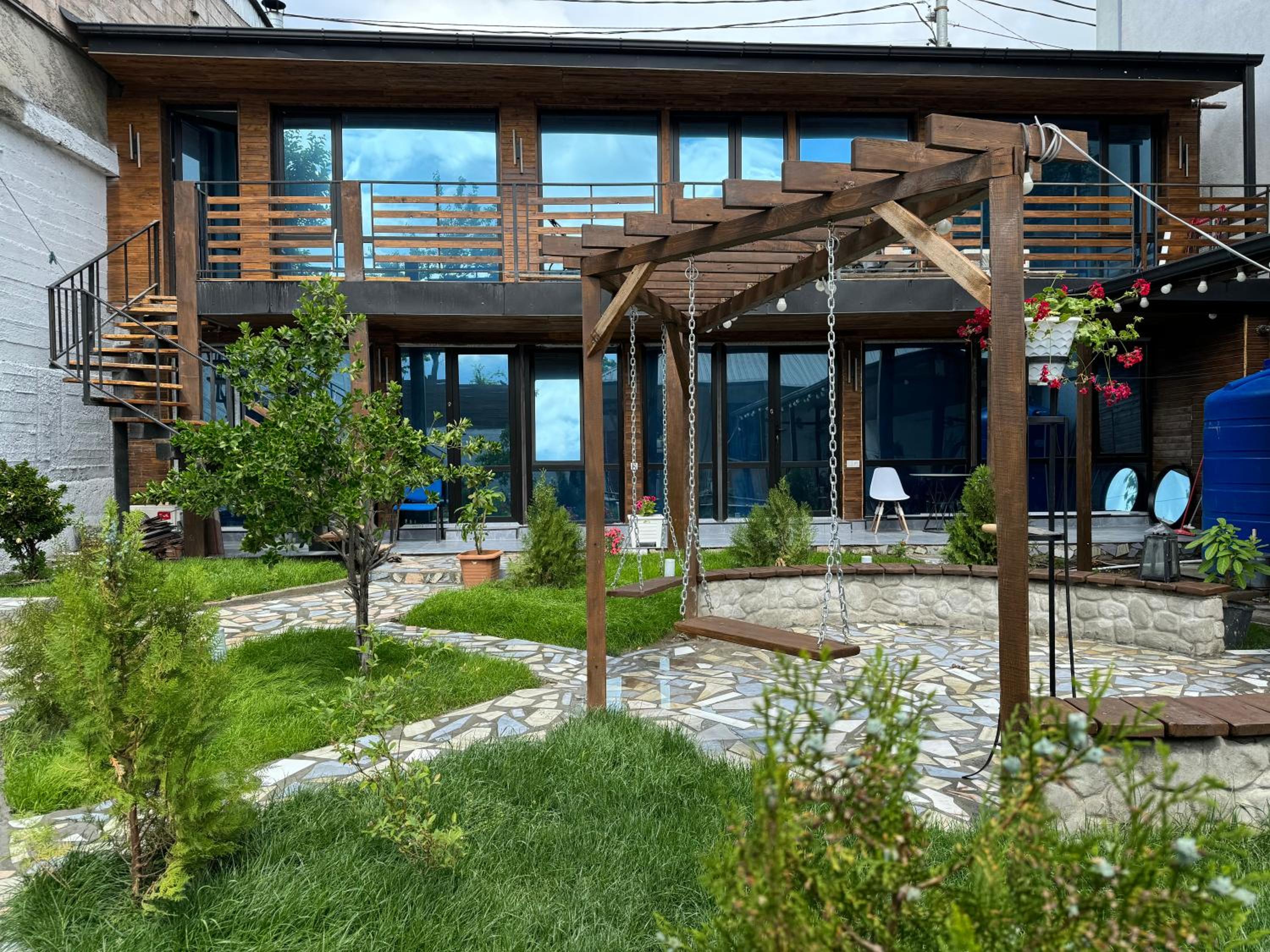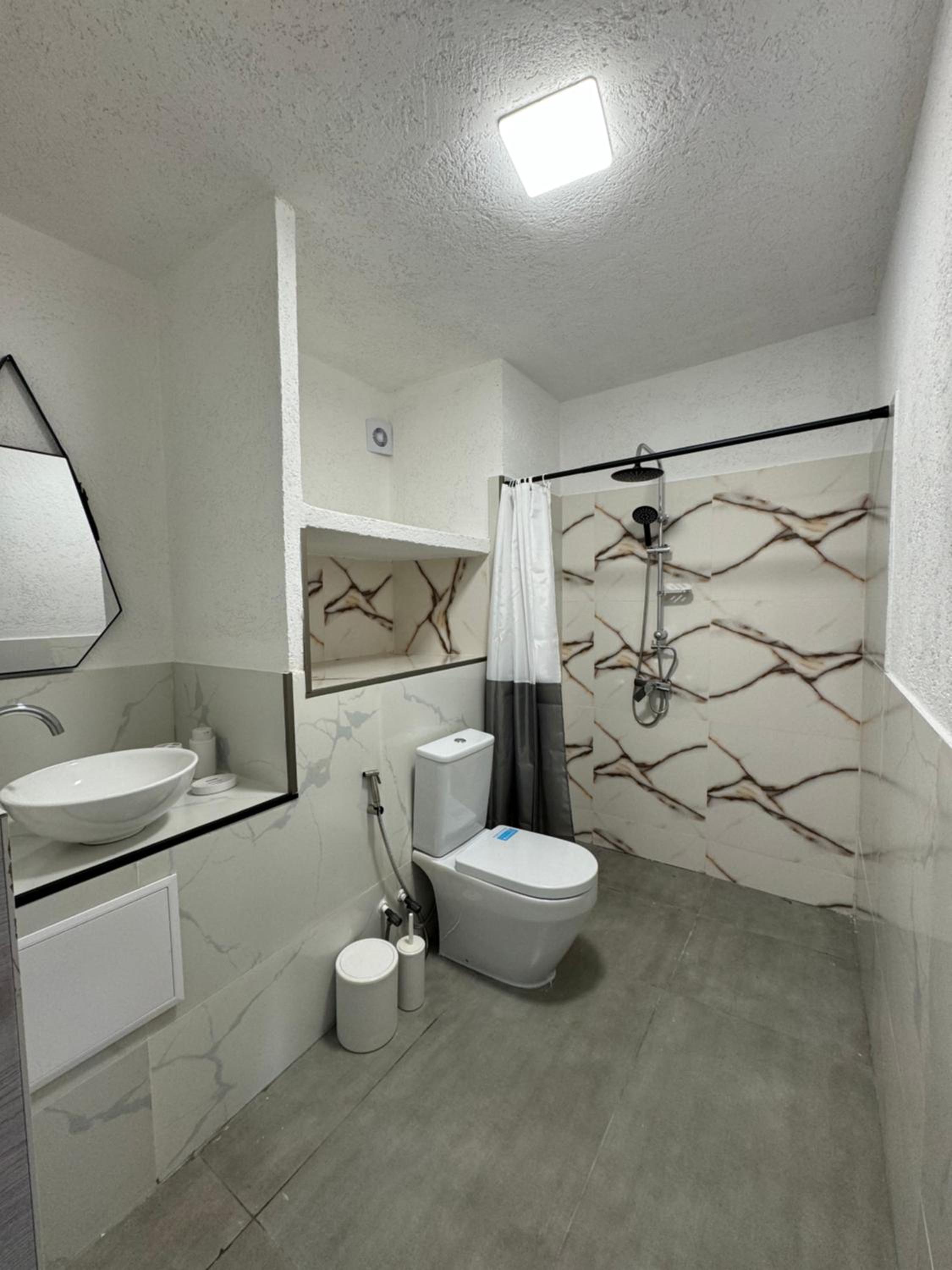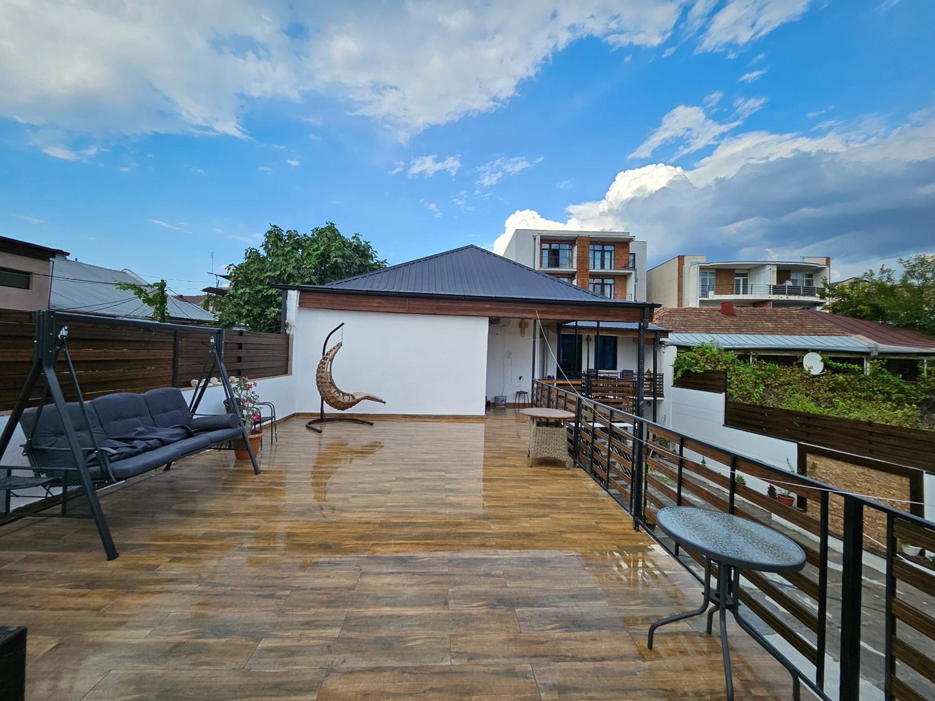 Нам понравилось абсолютно всё! Три шикарных спальни,удобные кровати,что очень важно после долгой дороги) чистенько,хотя это не отель,но были предоставлены банные принадлежности! Есть газовая плита и посуда,микроволновка,фен,утюг,и кондиционер) очень эстетично и атмосферно😍 Купались в чистеньком бассейне,приятно ,что позаботились о фильтре с хлором внутри) тихо и спокойно,никто не шумит и не тревожит,есть место где пожарить шашлычки) Приехать сюда компанией друзей или большой семьей -самый лучший выбор🤌🏼 советуем❤️ есть широкий балкон,где качельки и лежаки,очень много зелени и шикарный гранат на входе) место для машины тоже имеется во дворе дома.
