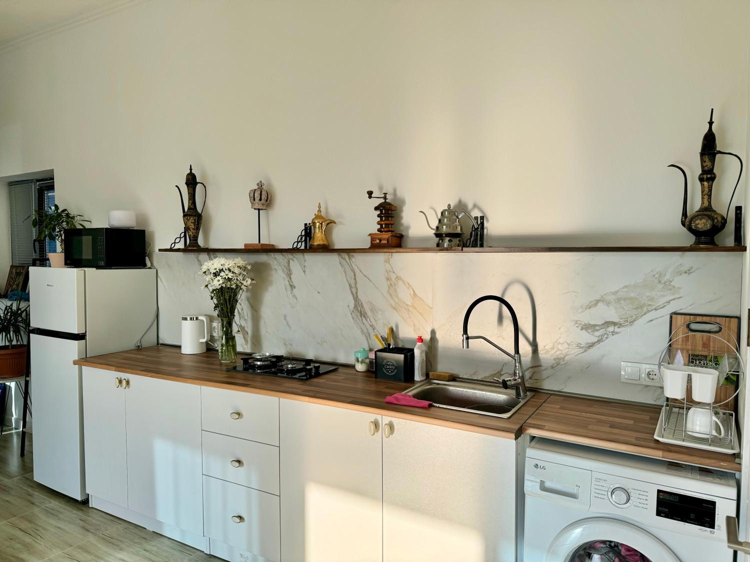 Очень приятный владелец. Местоположение нормальное (на такси до центра 4-6 Gel). В апартаментах чисто , уютно.
