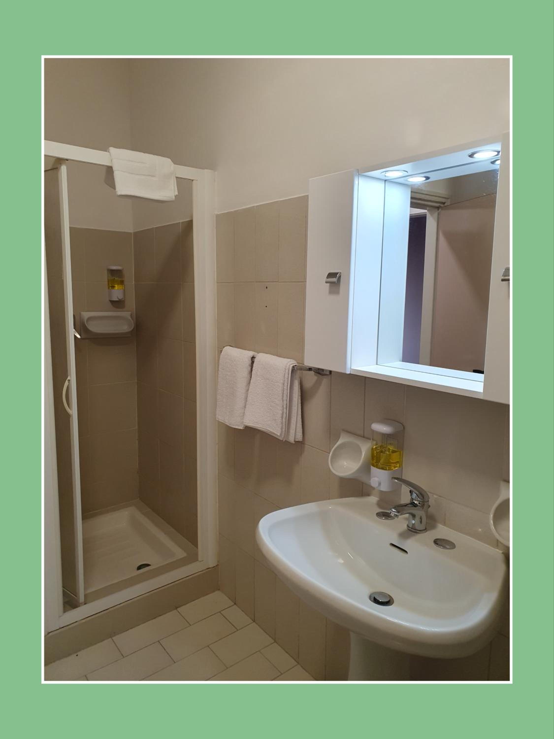 Internamente vecchia, bagno senza sapone x mani,water non igienizzato( mancava la striscia sigillo),igiene molto superficiale, neanche un bicchiere di plastica, x la doccia sapone con dispenser,solo la posizione buona x chi è di passaggio , non ci tornerei.