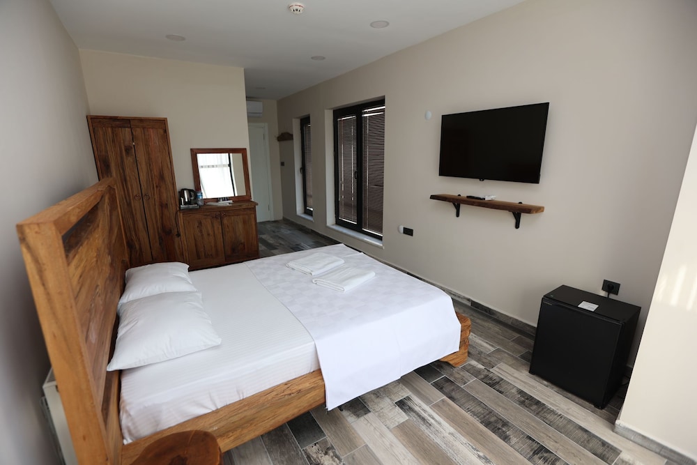 Resimlerde göründüğü gibi değildi. Resimlerde 3-4 farklı oda resmi vardı. Peşin satın alma yaptığımızdan iptal etmeyeceğimiz belli olduğundan En kötü odayı bize verdiler sanırım. Duşu ve saç kurutma makinası bozuktu. Yol kenarı olduğu için çok fazla ses alıyor.