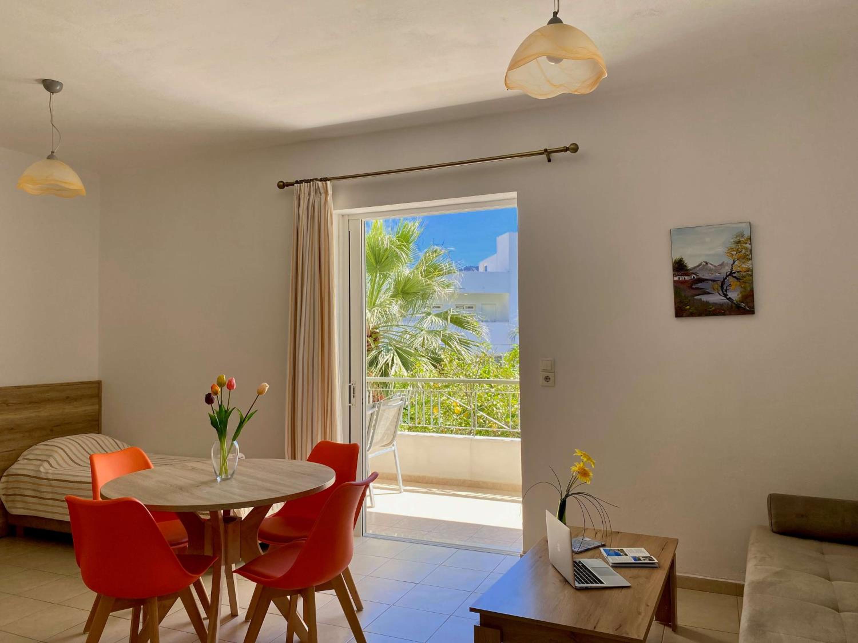 Manolis Apartments Plakias offers modern, sunlit rooms with spacious balconies showcasing beautiful garden, sea, or pool views.