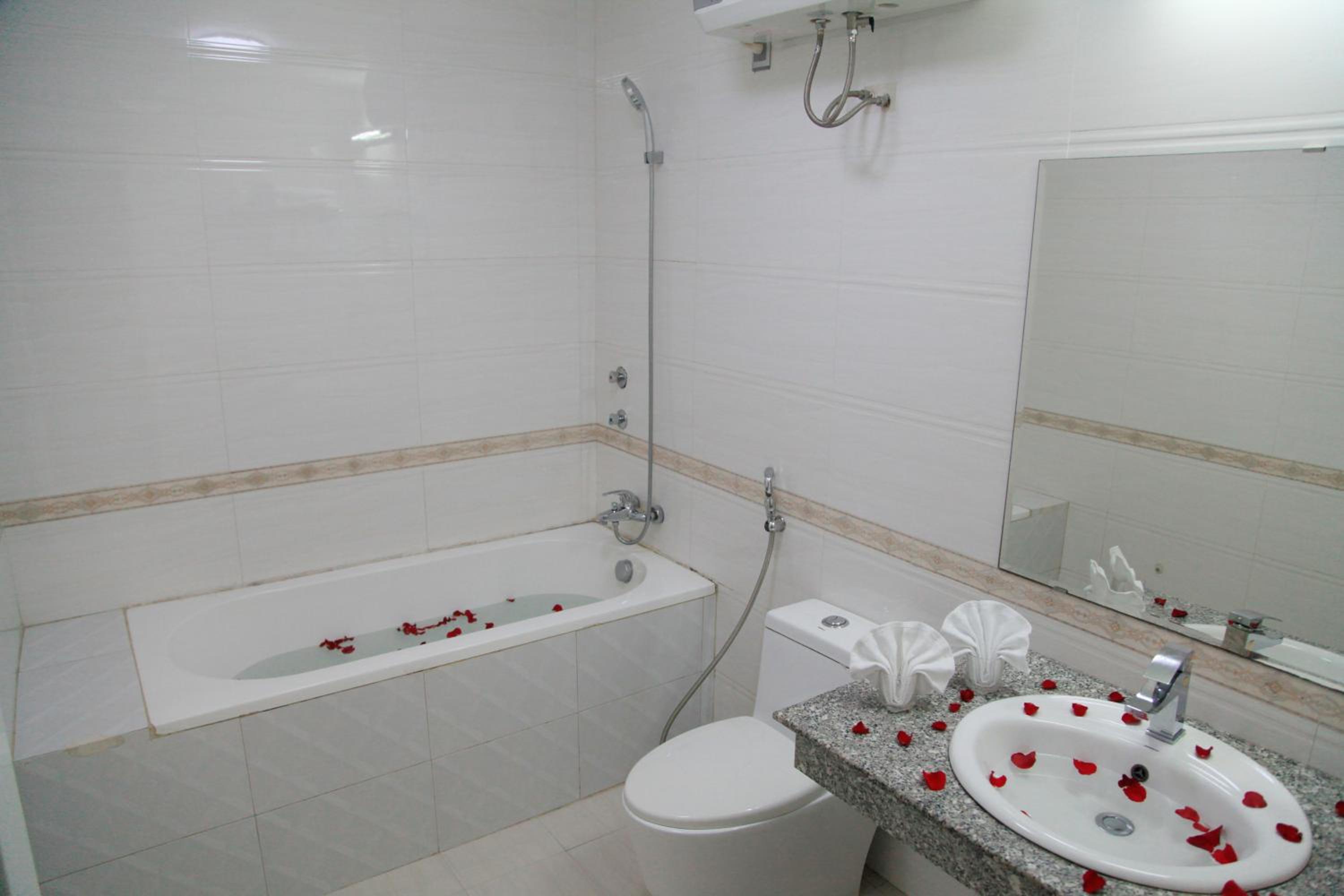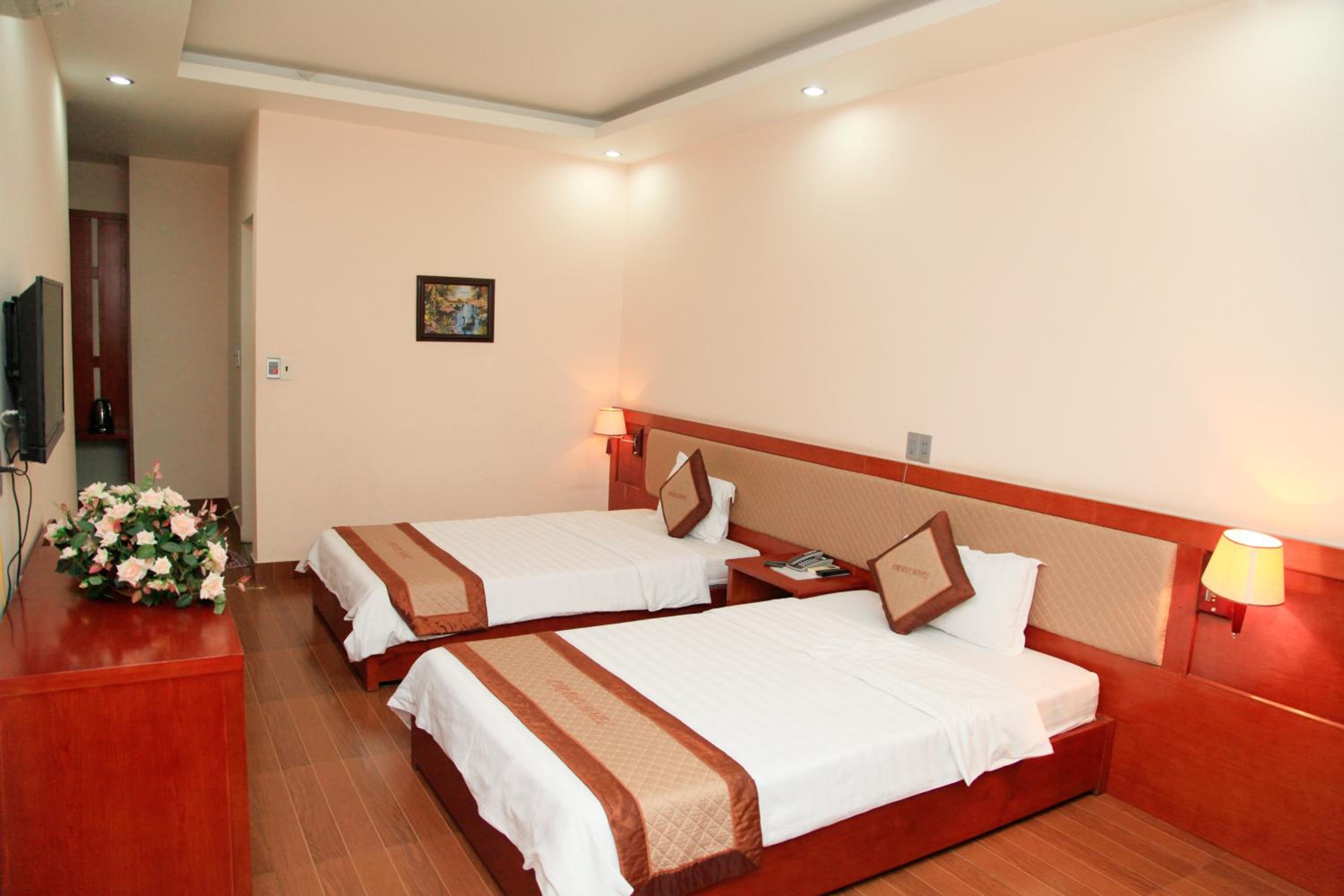 The hotel is located in the center of Hon Gai, near Vincom center and Ha Long I market. You could take about 10 minutes to walk to the beach. But if you want to go to Hon Gai beach, you should rent a motorbike.