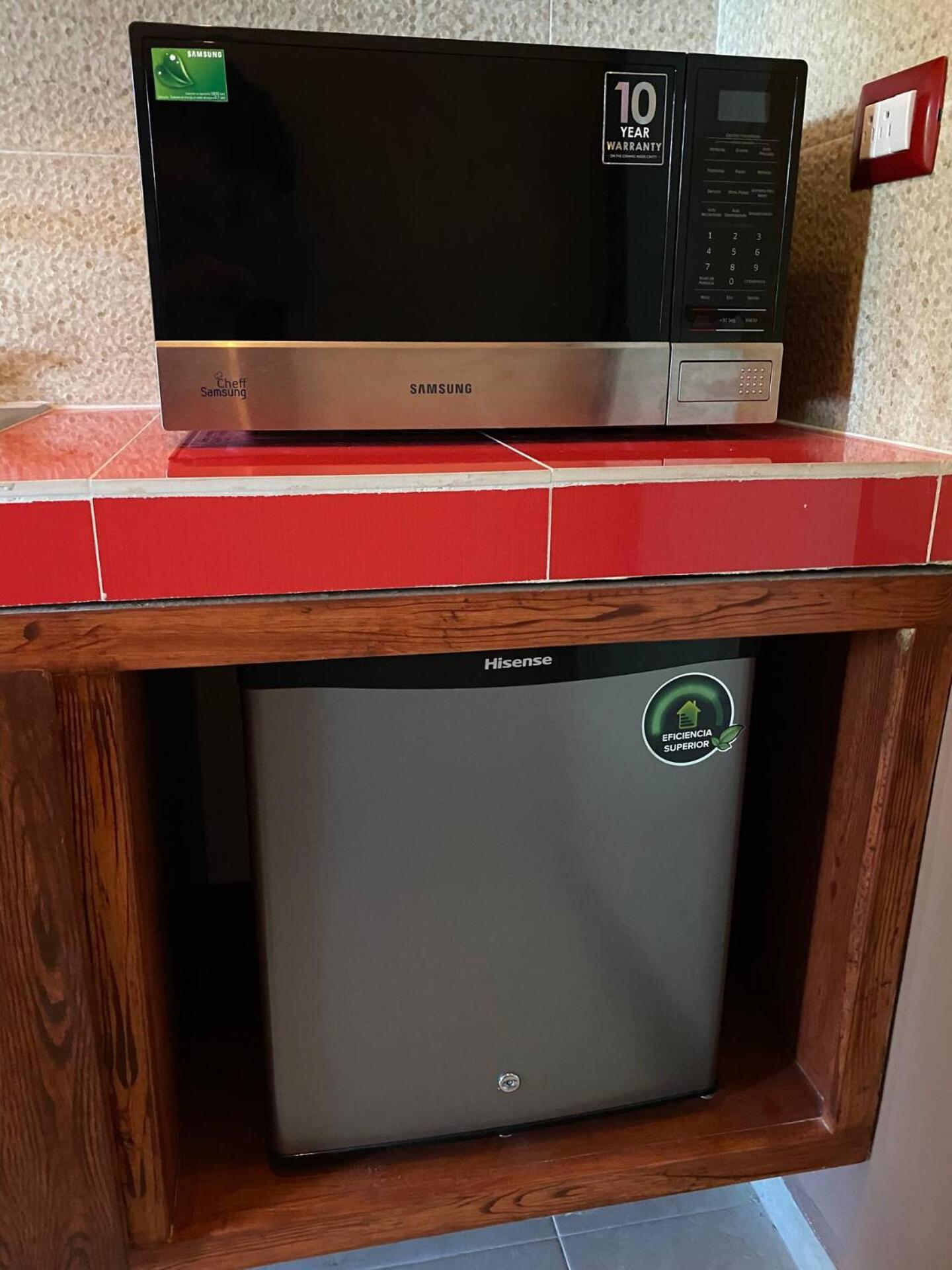 Pour le prix, la présence d'un micro-onde et d'un réfrigérateur est un plus, ( des petites bouteilles d'eau fraîche nous attendaient à notre arrivée ce qui était fort appréciable ).