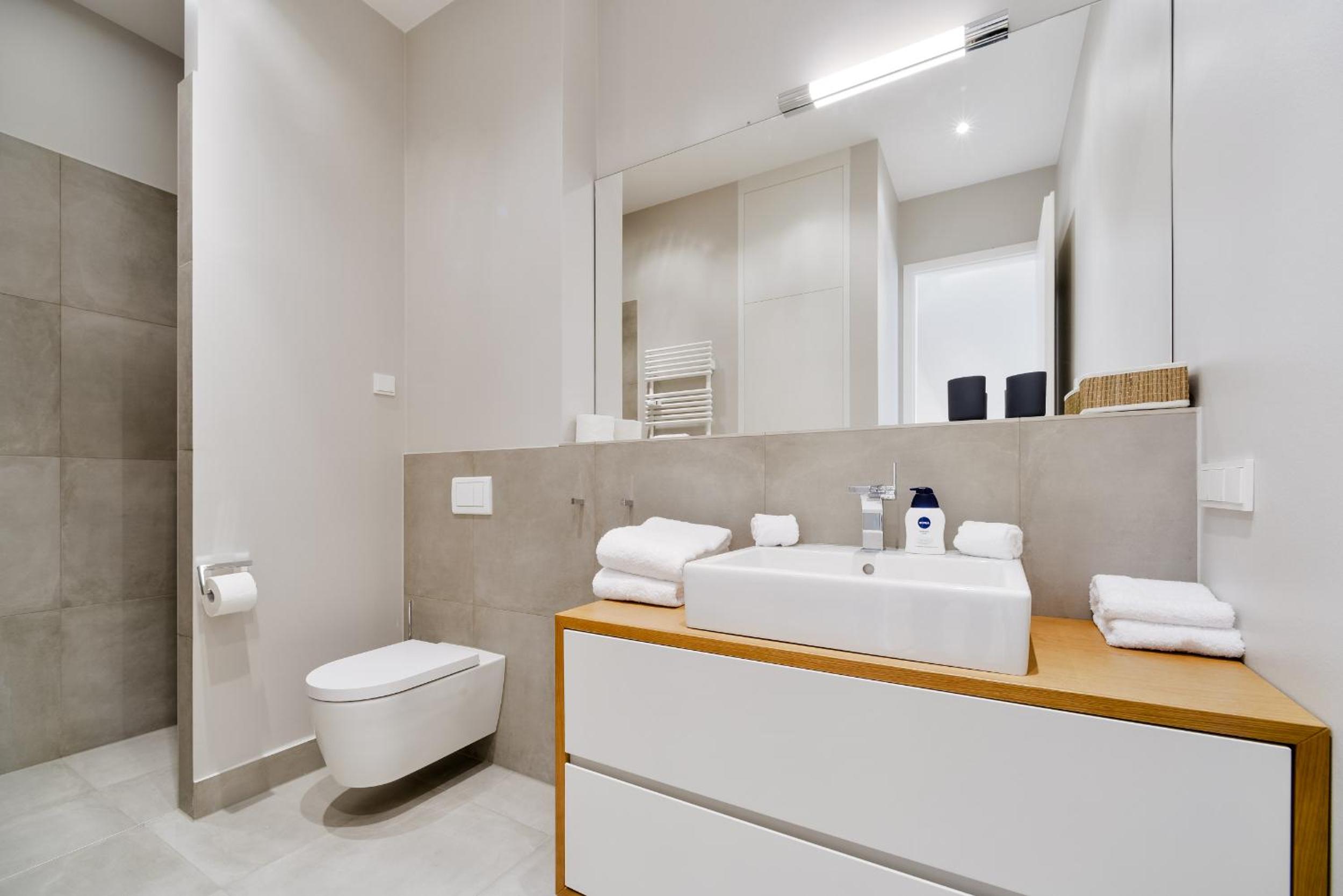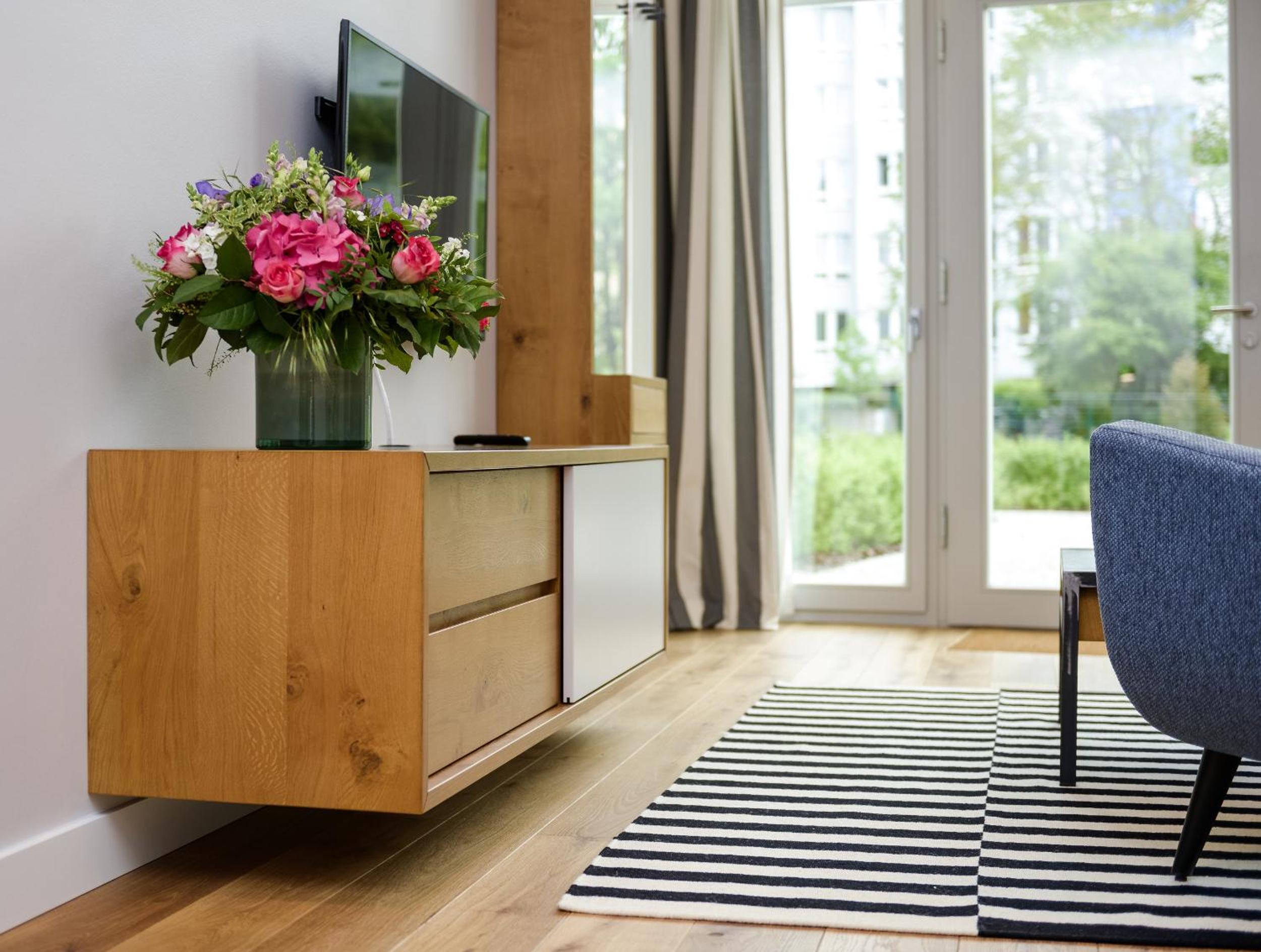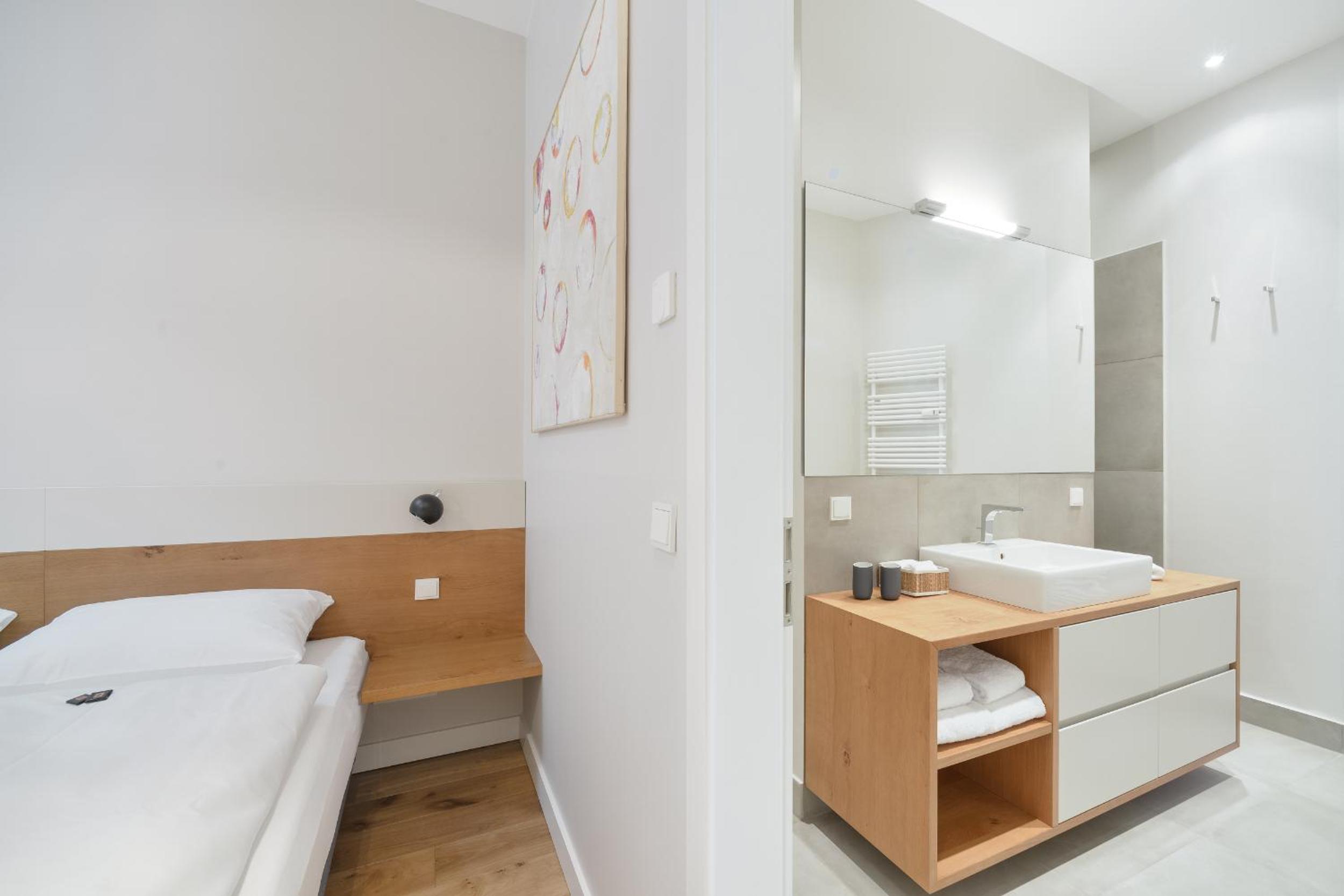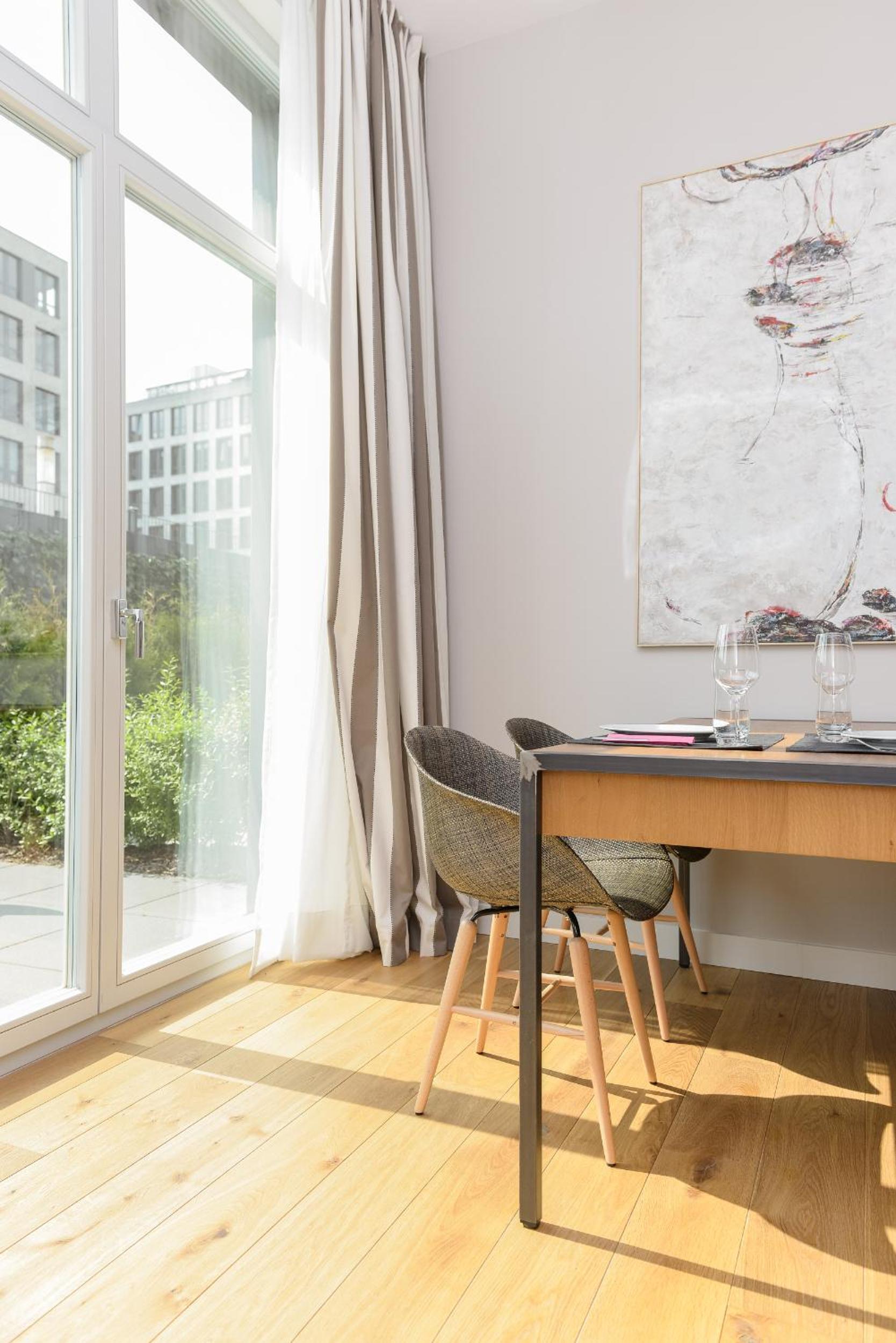 Modern, spacious well-appointed apartment. Good security. Short distance to NordBahnhof, shops and restaurants. Friendly, responsive staff.