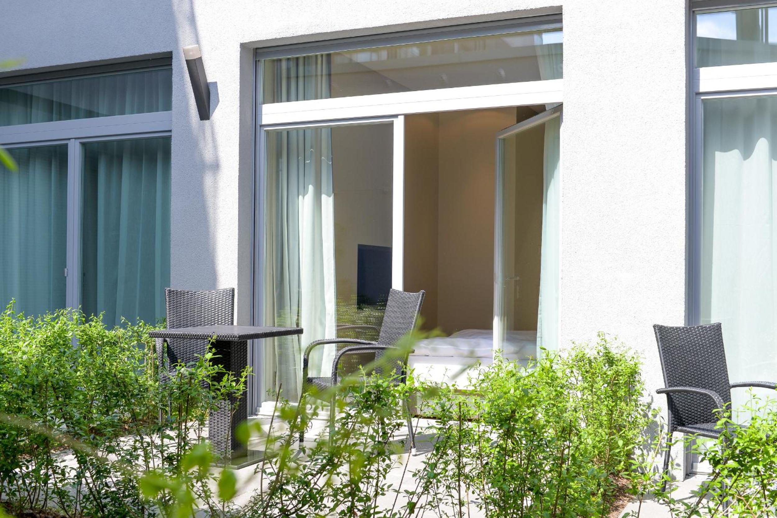 Beautiful Views: Enjoy the terrace overlooking the garden and relax on the balcony with free WiFi access.