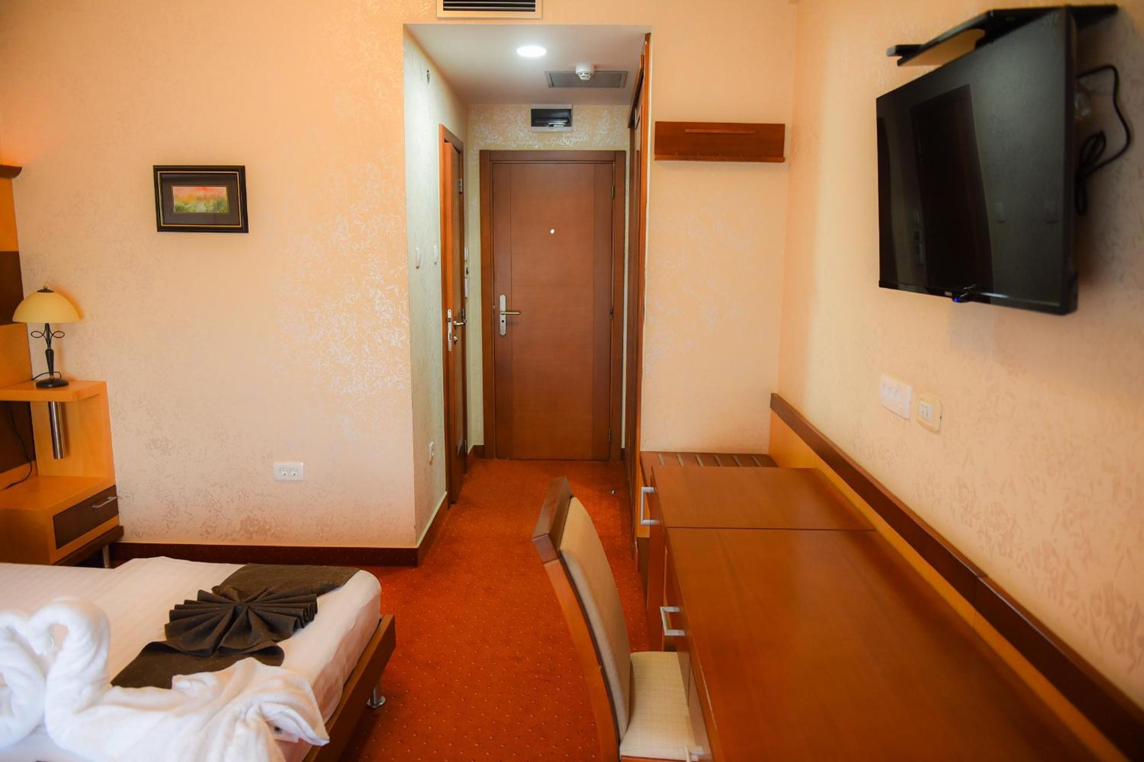 Hotel Marshal in Nikšić offers 4-star air-conditioned rooms with free WiFi and a bar, ensuring a comfortable stay. Each room comes with modern amenities such as a flat-screen TV and a safety deposit box, providing a relaxing retreat for guests.