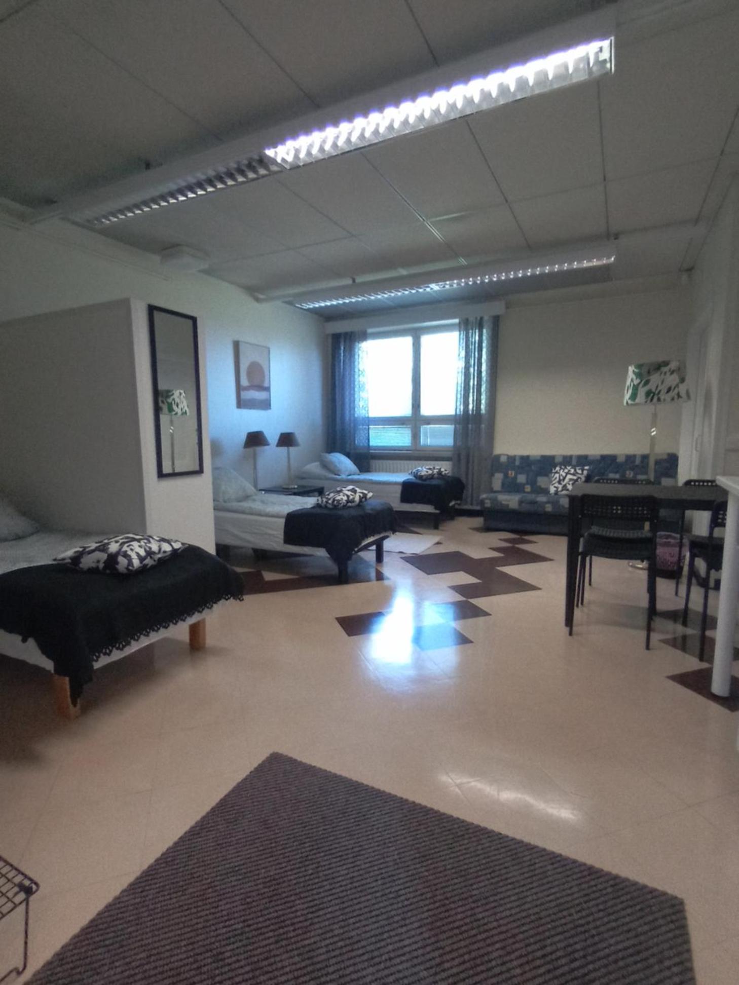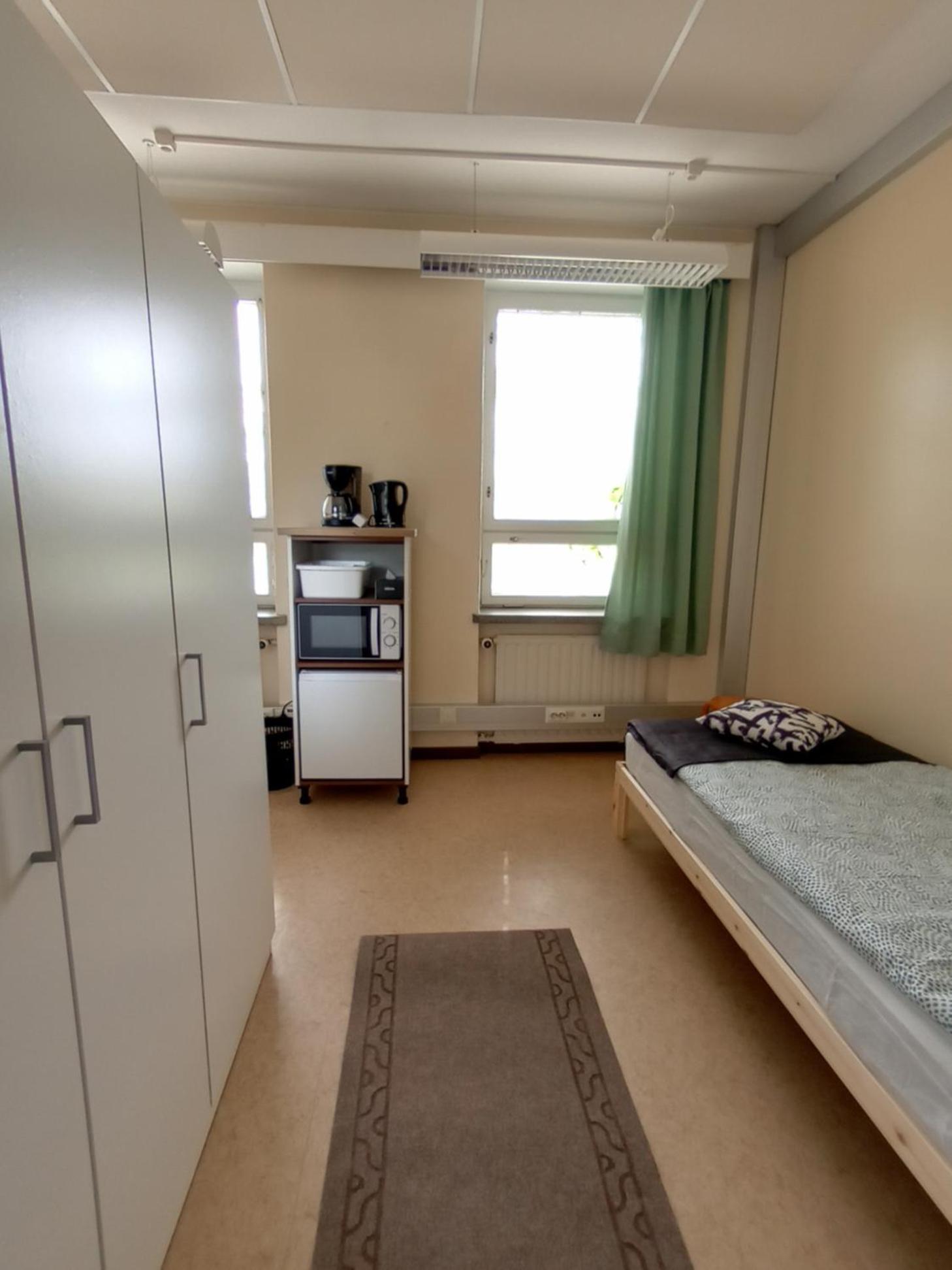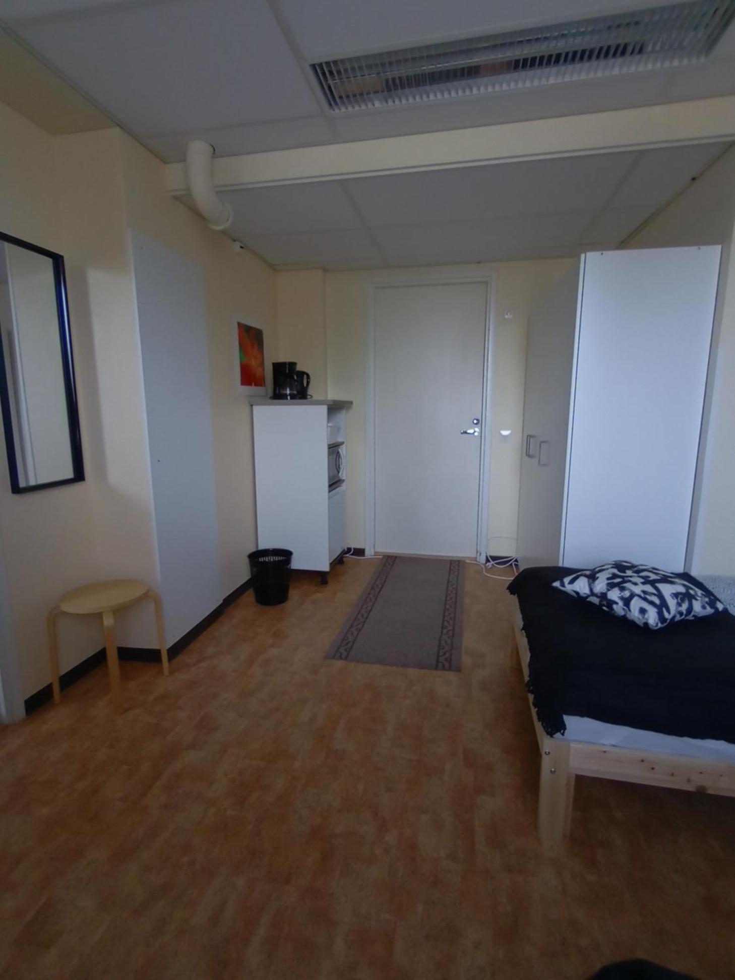 Täysin autio vanha toimistotalo. Ei suihkua eikä vessaa ”huoneessa”. Suihkun viemäri ei vetänyt. Ei kahvia tai mitään muutakaan tarjolla.