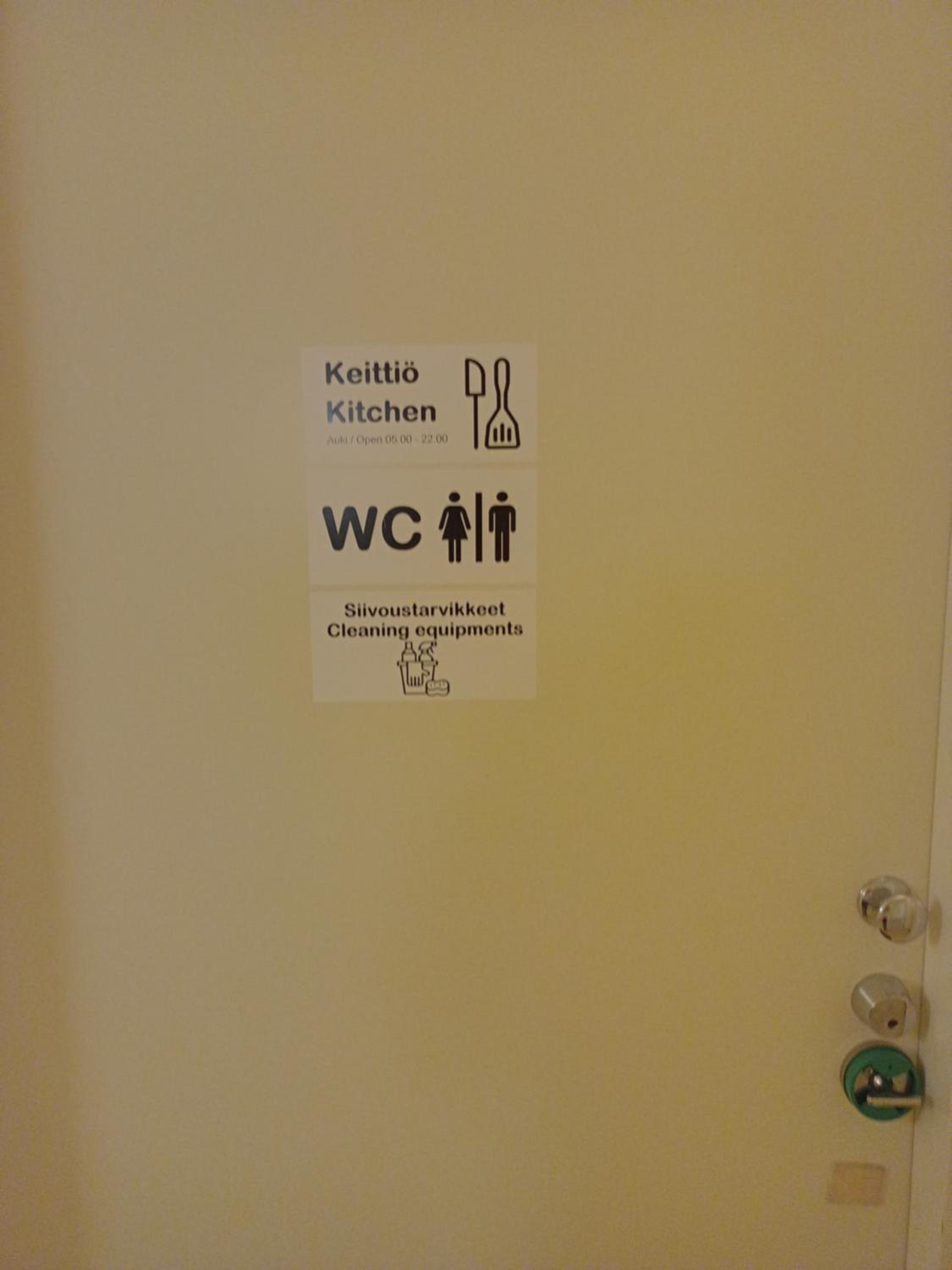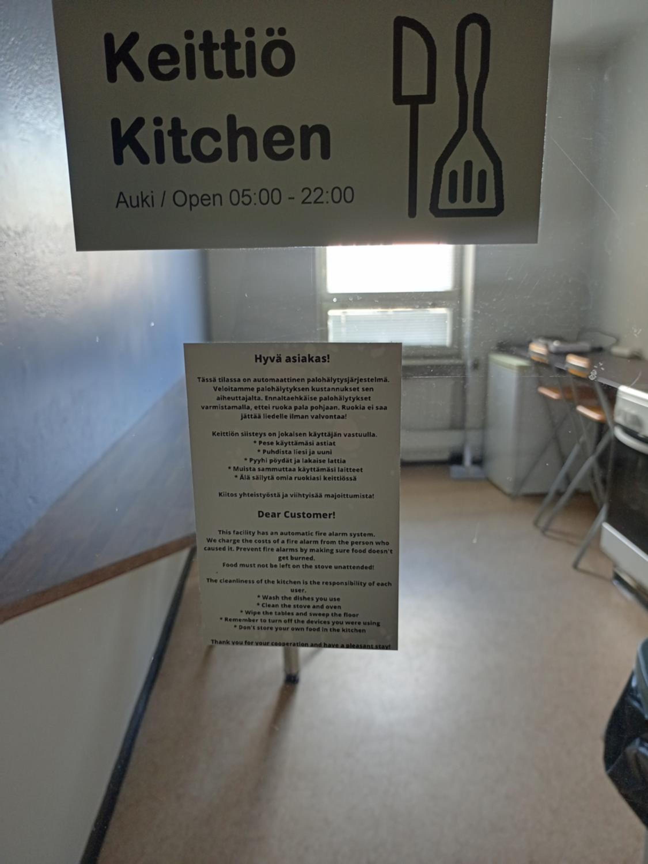 Sormenjälkiä, likaa, ruokaa pinnoilla keittiössä ja vessoissa. Keittiön iso roskis haisi pahalle. Mikrokupu ja lasilautanen piti pestä ensin jotta viutsi lämmittää oman ruuan. Vain yhdestä suihkusta tuli lämmintä vettä. Jääkaappi oli vain huoneessa, emme laittaneet päälle lainkaan hurina vuoksi. Ulkona autossa ruuat säilyivät hyvin 😀