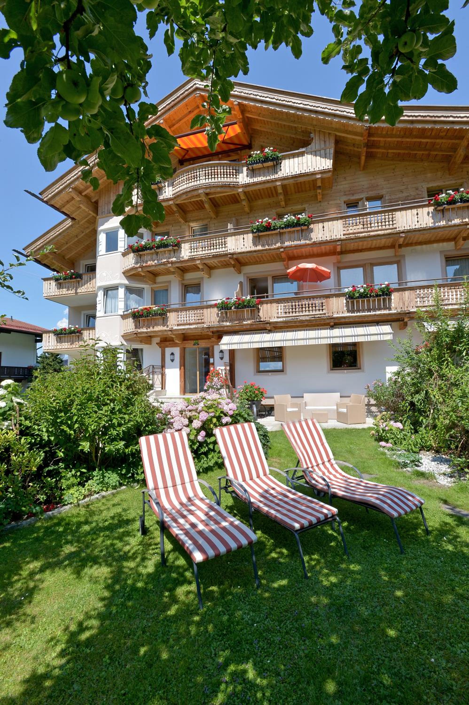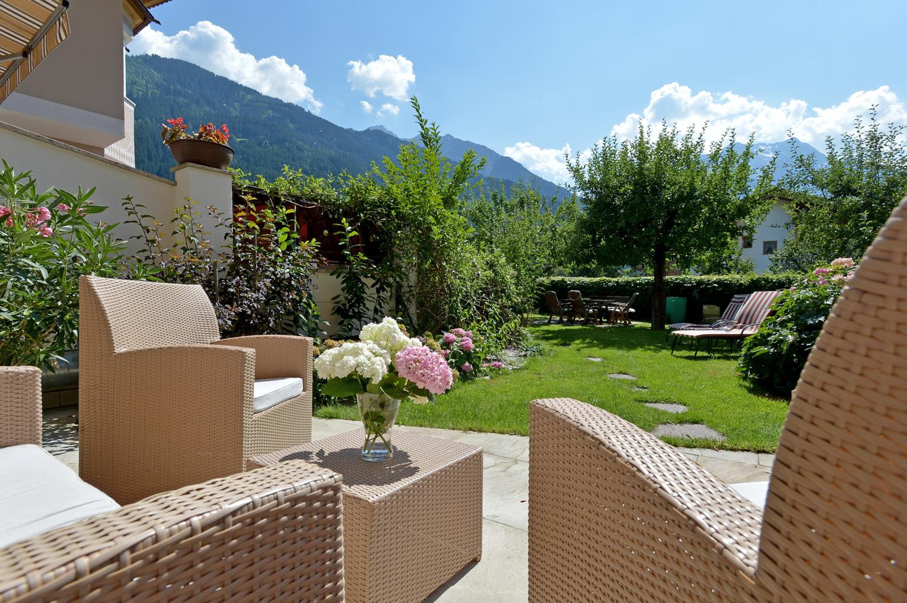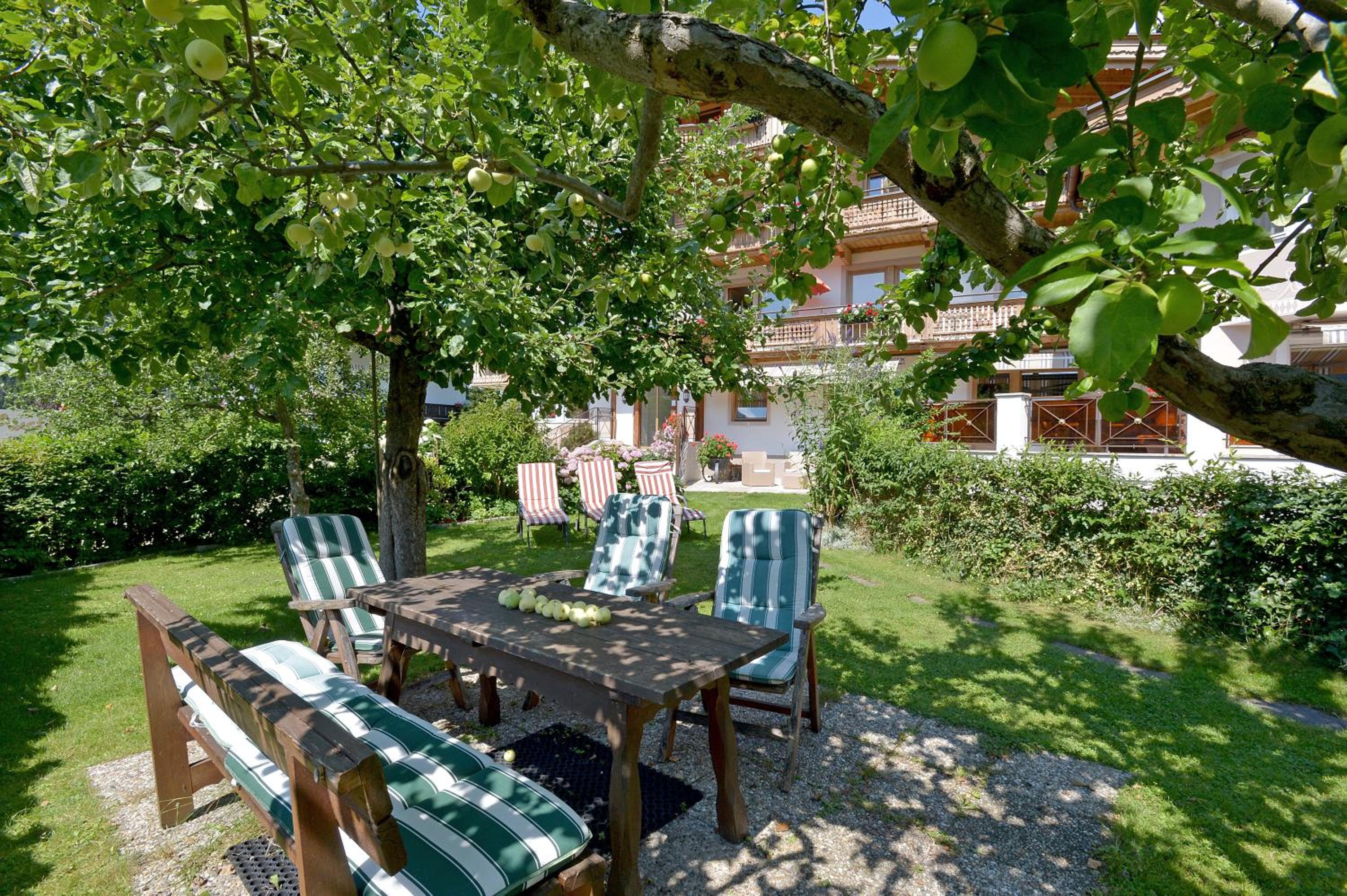 Take advantage of our ski and bike room, soak up the sun in the south-facing orchard with deck chairs, and rest easy knowing there's a spacious car park available. Your ultimate holiday experience awaits at Appartements Austria.