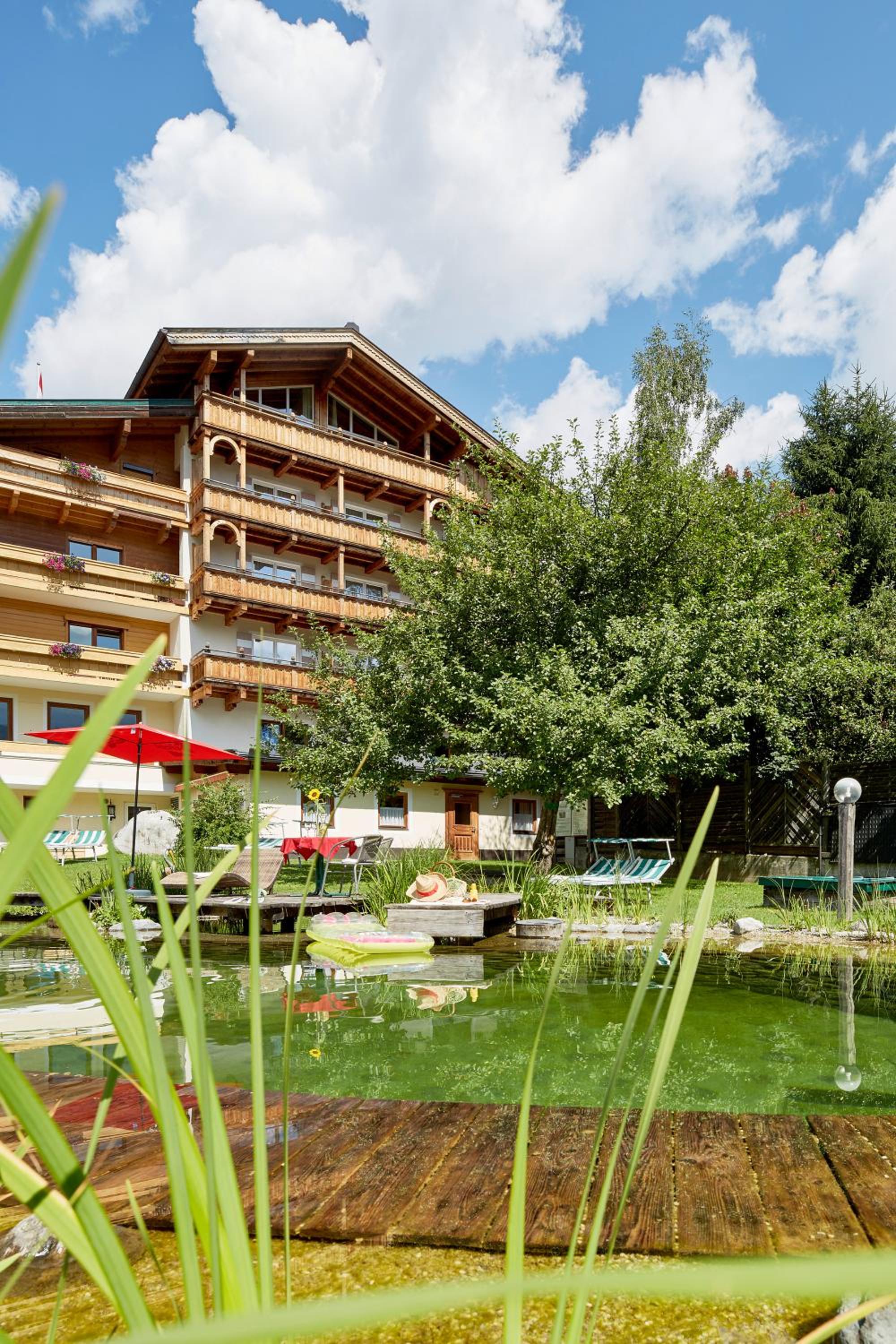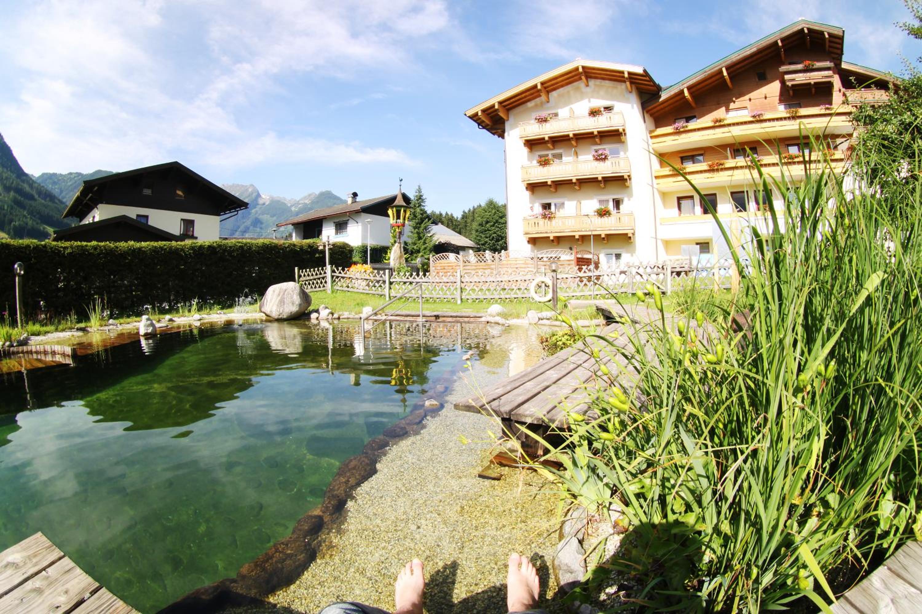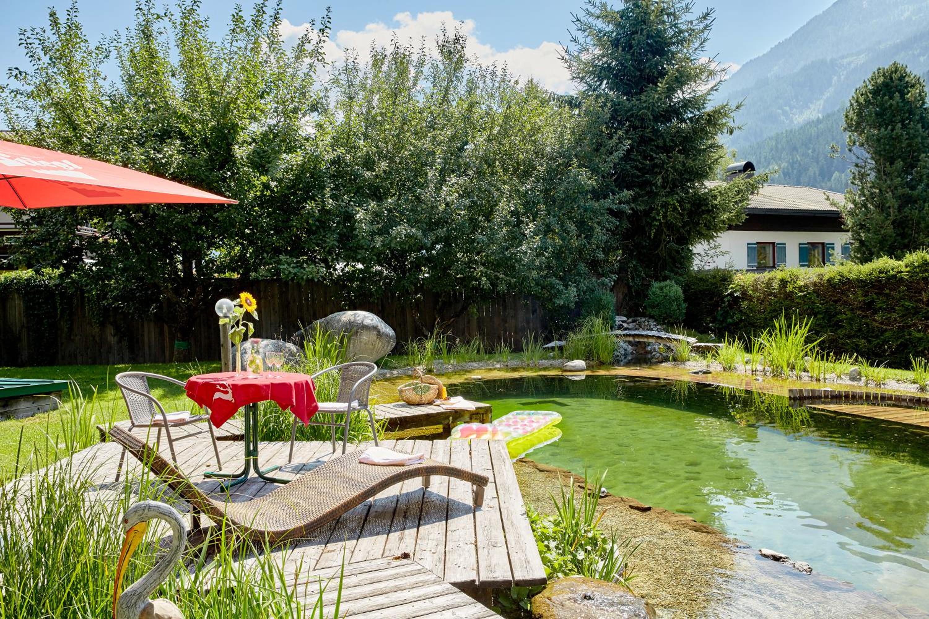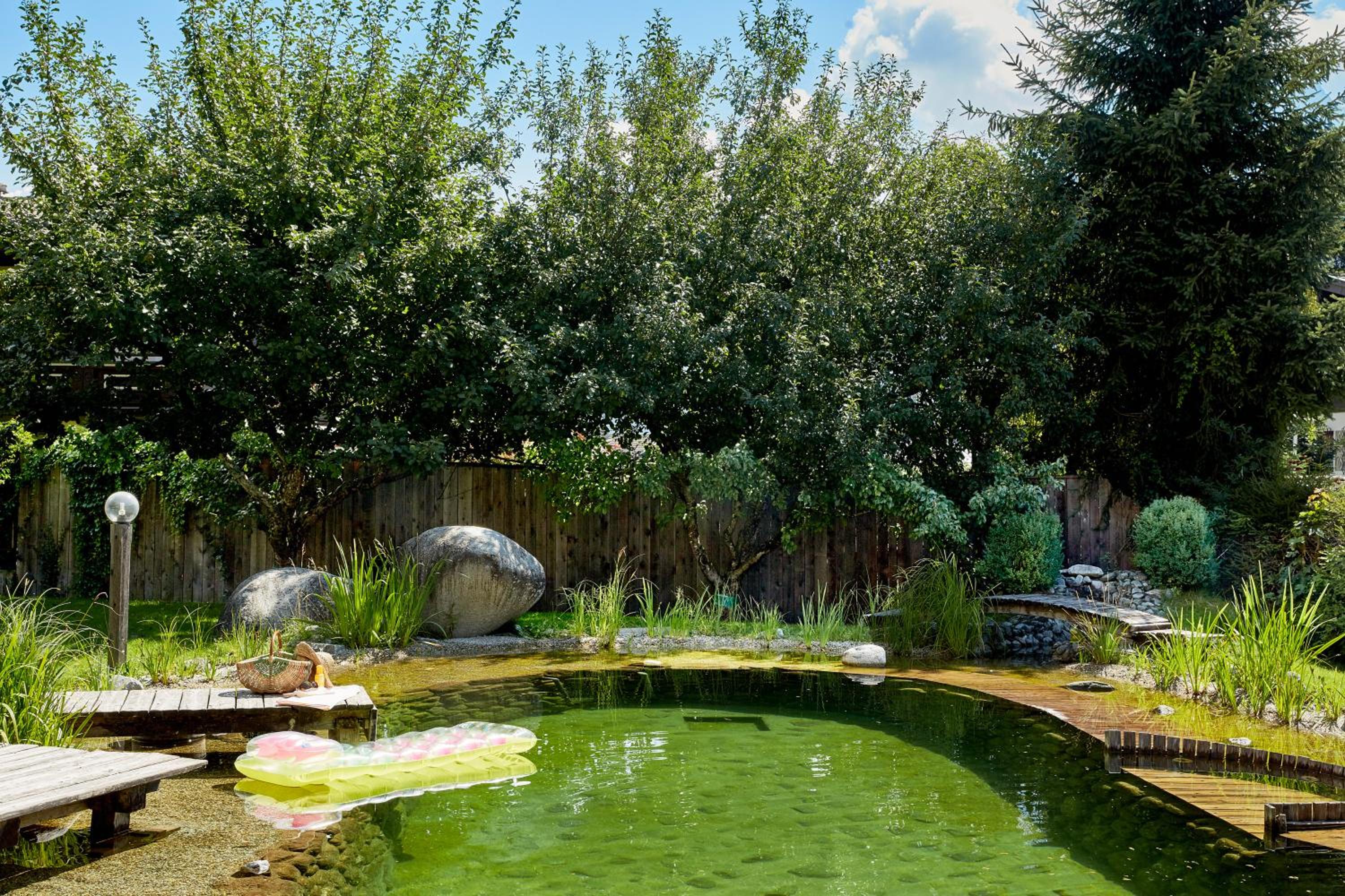 Garten mit Naturpool in dem - zur großen Freude der Kinder - springen ins Wasser erlaubt war!