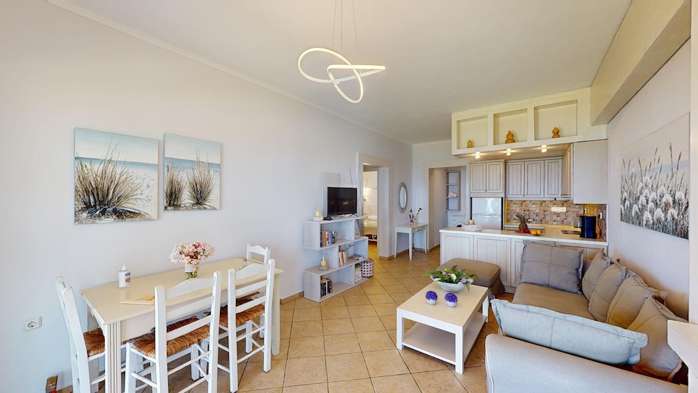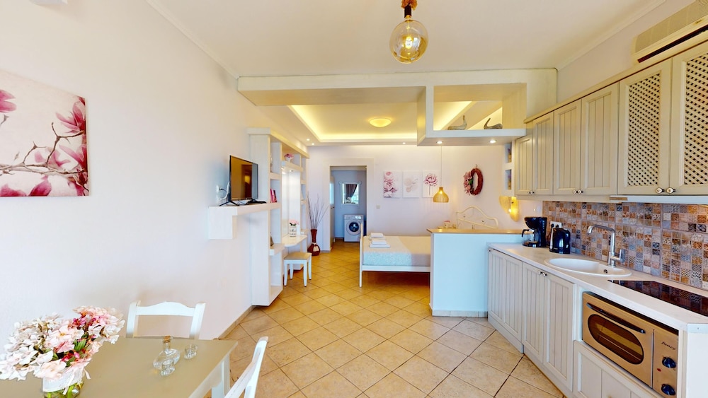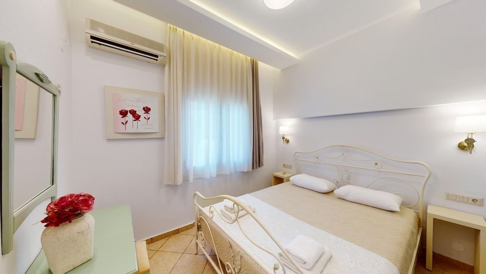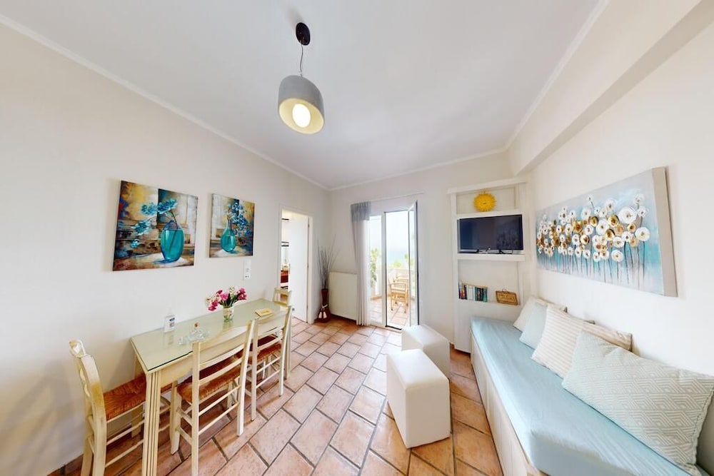 Wunderschöne Anlage mit mehreren Apartments mit Blick aufs Meer. Pool und Garten laden zum verweilen ein. Strand und Strandtavernen fussläufig erreichbar- für alles andere braucht man ein Auto oder nimmt den Bus. Unterkunft war sauber und mit allem notwendigen ausgestattet. Die Gastgeber sind sehr freundlich, zuvorkommend und hilfsbereit. Einzig das wlan ist recht schwach- aber man kommt damit zurecht.
