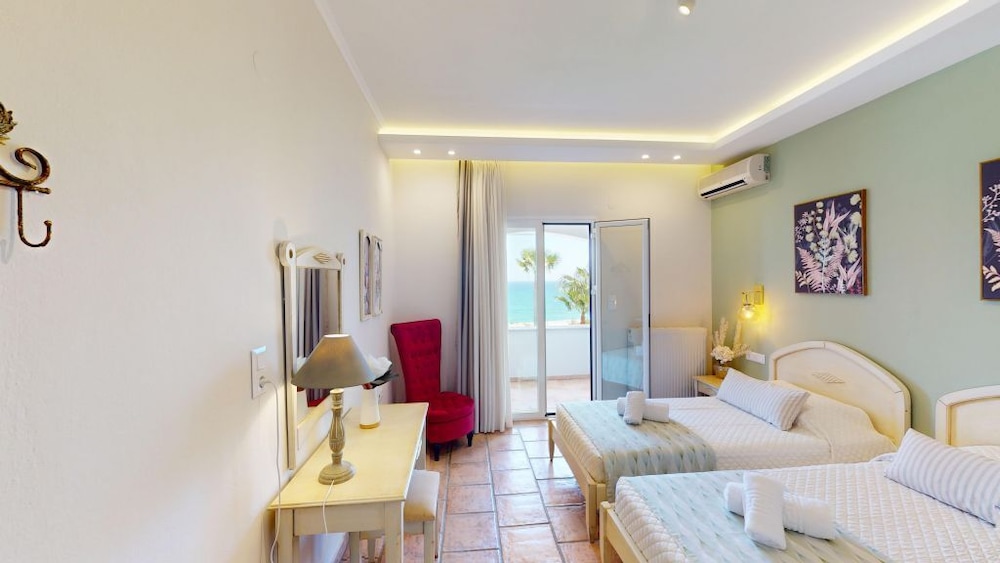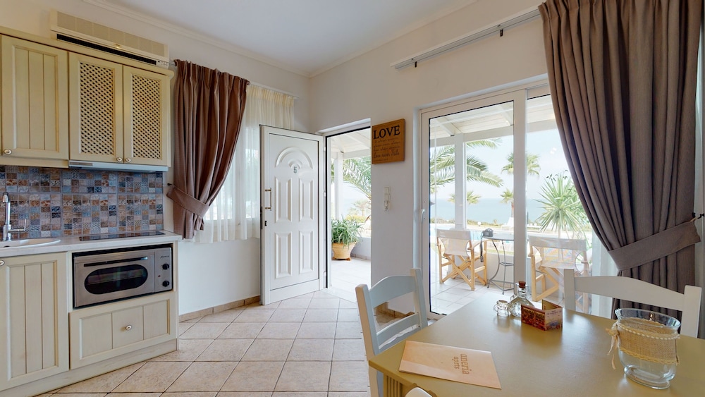 Excellent accommodation, kind and friendly staff, great view, with garden, pool, and the sea. A short distance from Episkopi beach, a long sandy beach mixed with pebbles, both free and equipped with bars and restaurants. Great location for both relaxing and exploring the island. Thanks for all!