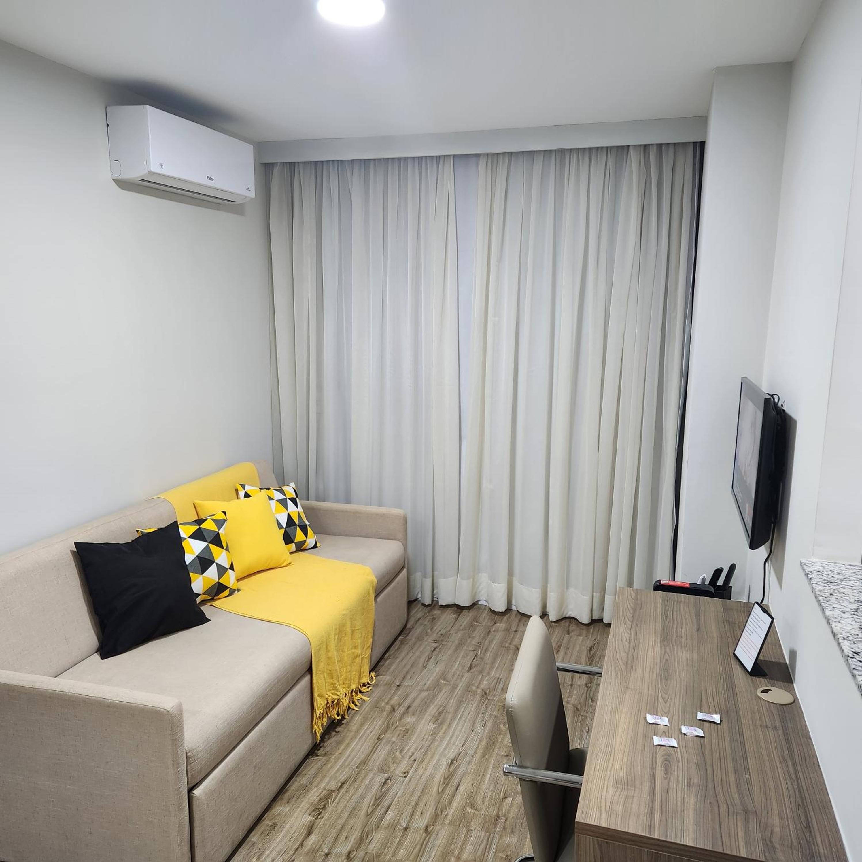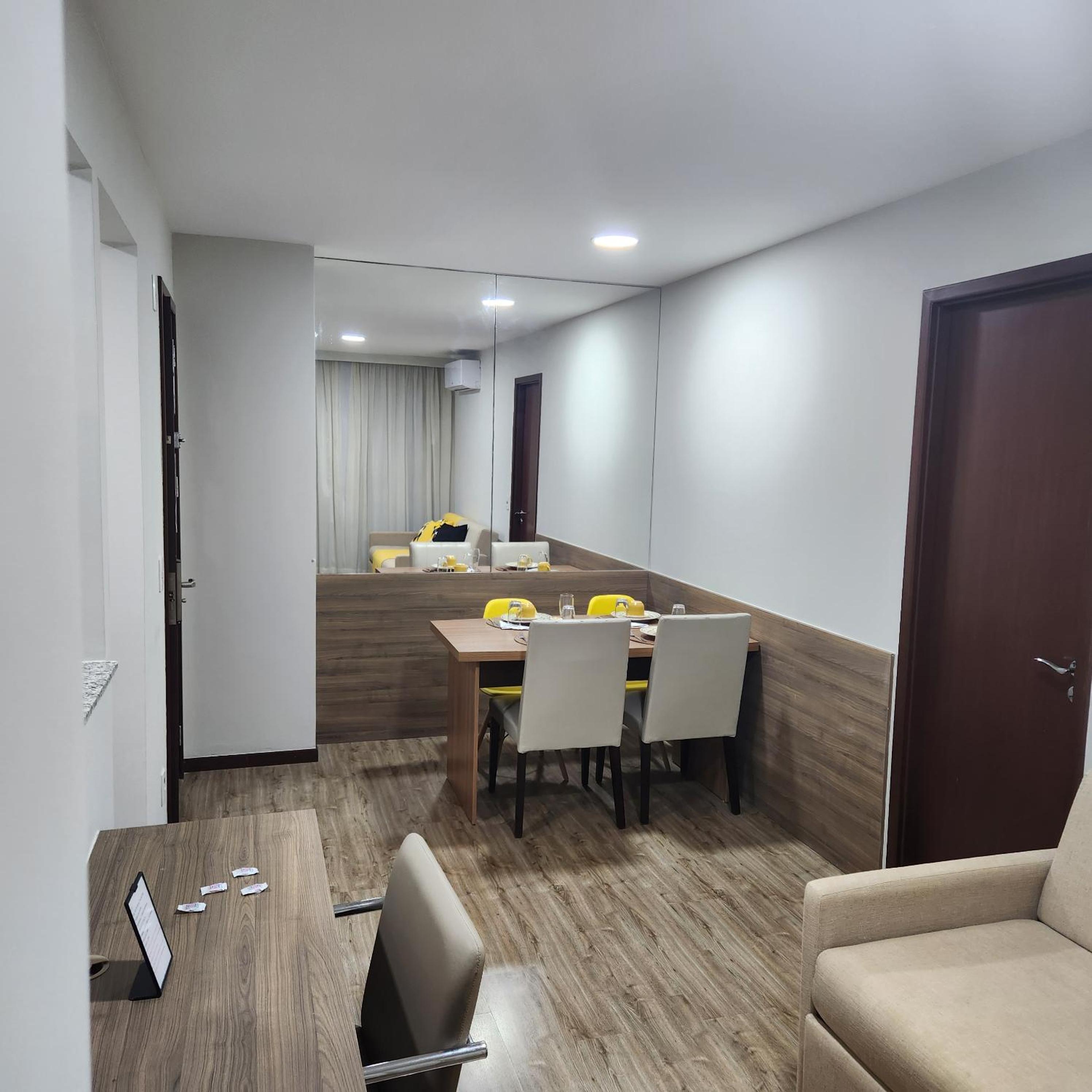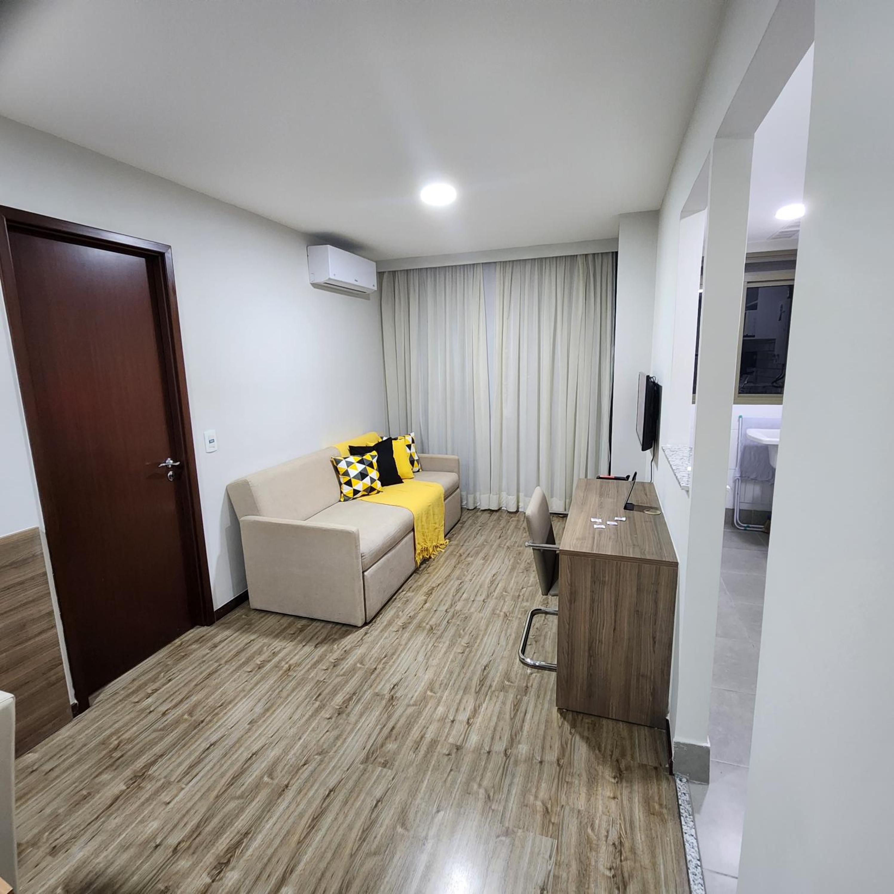Flat excelente!!! Super completo!!! Conforto, limpeza e gentileza do anfitrião são nota mil!!! Flat espaçoso, muito limpo, roupas de cama e banho de muita qualidade, cama e travesseiros excelentes, TV com canais diversos, utensílios de cozinha bem variados. Ar condicionado no quarto e sala. Estacionamento coberto. Mini mercado no condomínio. Ótima opção de estadia na região!!!