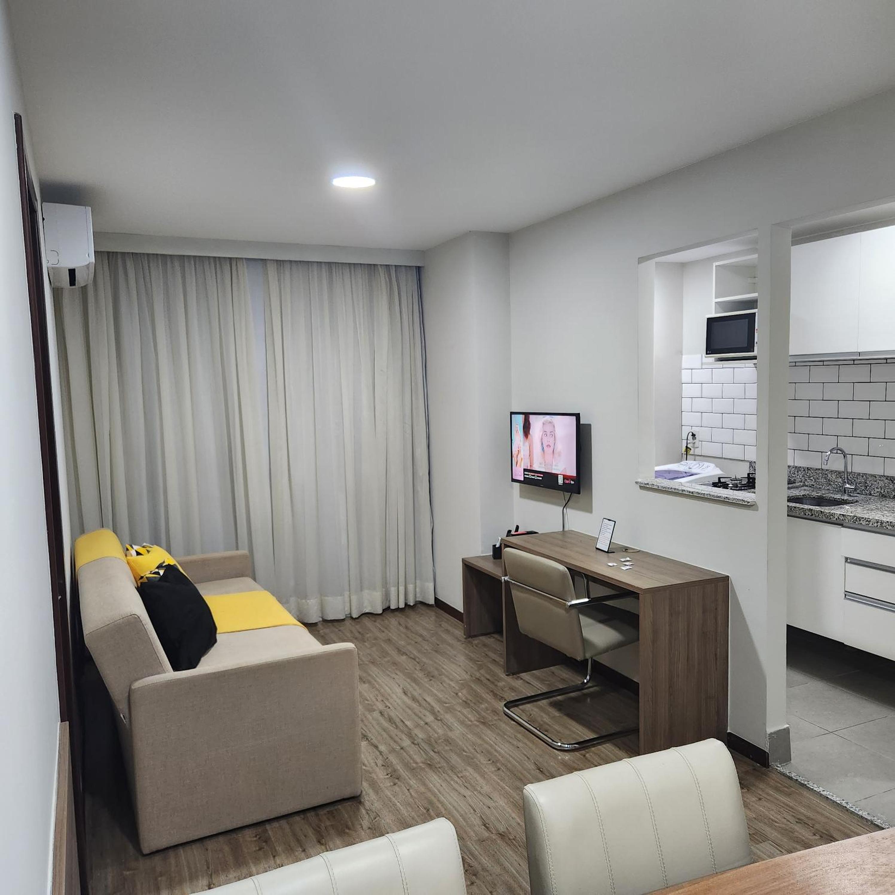 Excelente flat, confortável, possui tudo o que precisávamos, incluindo estacionamento, localização segura e de fácil acesso. Possui uma boa lanchonete no terreo.