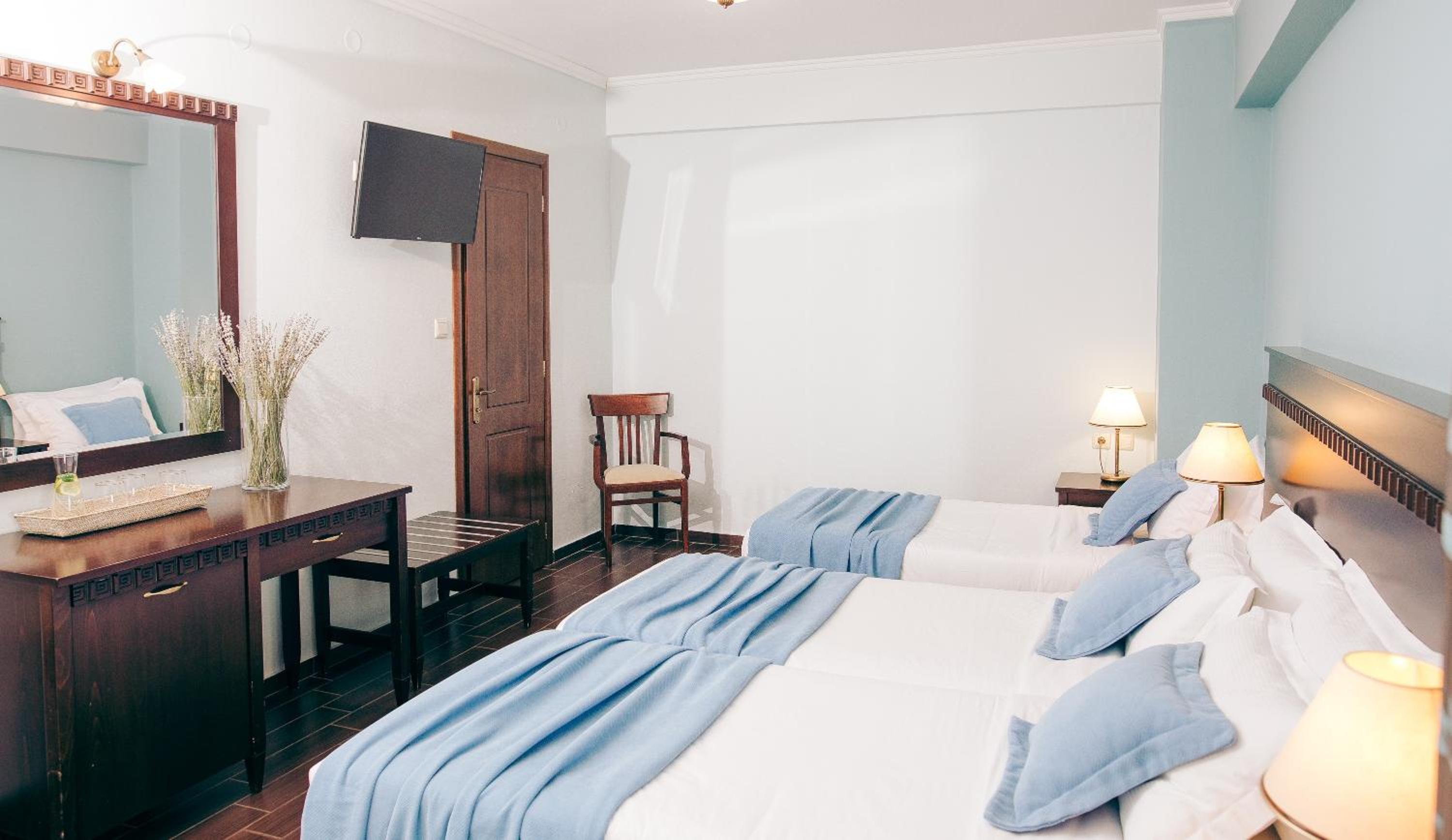 Indulge in stylish rooms with balconies offering picturesque lake or mountain views. Treat your taste buds to authentic Greek dishes at our bar-restaurant.
