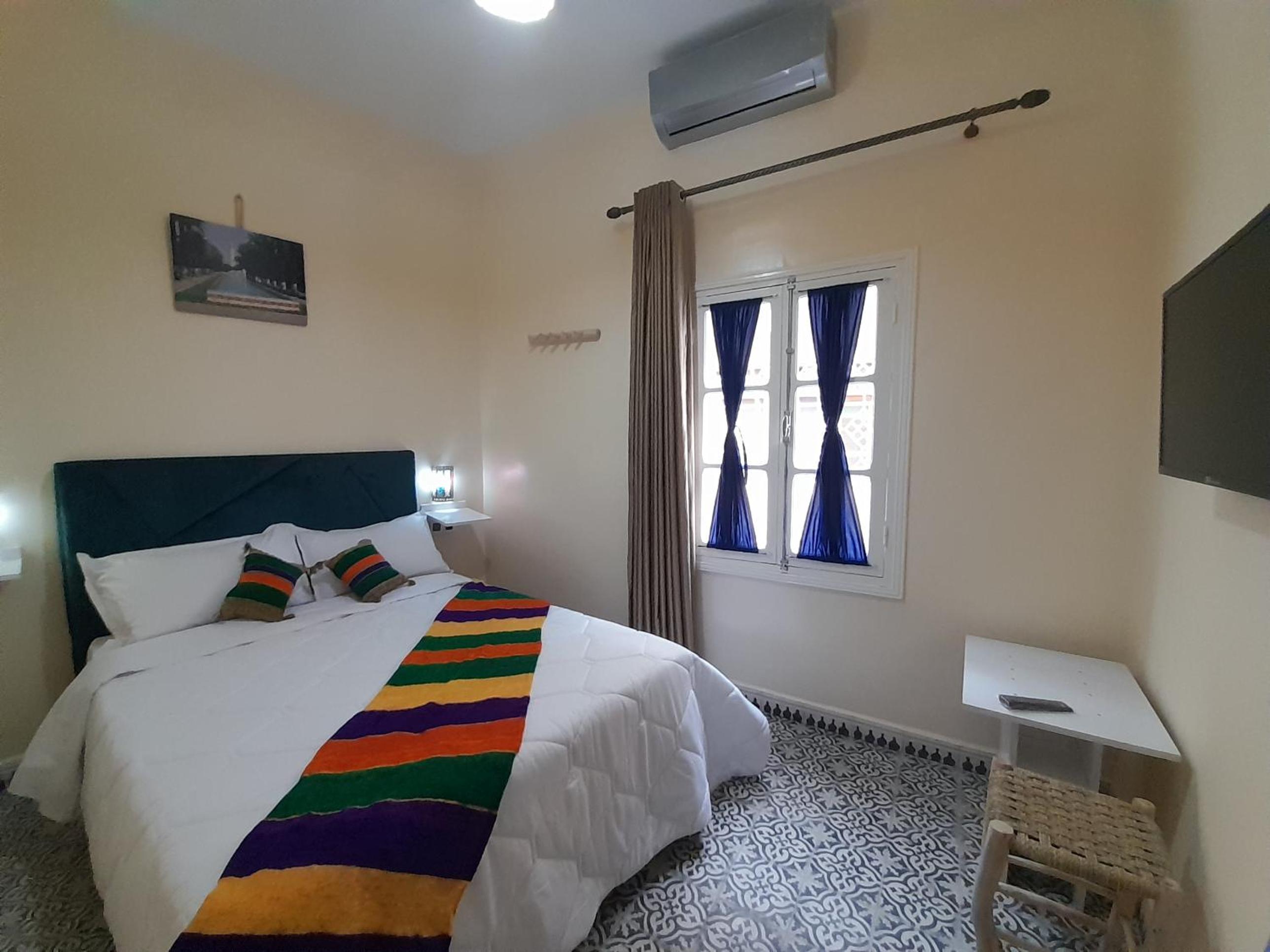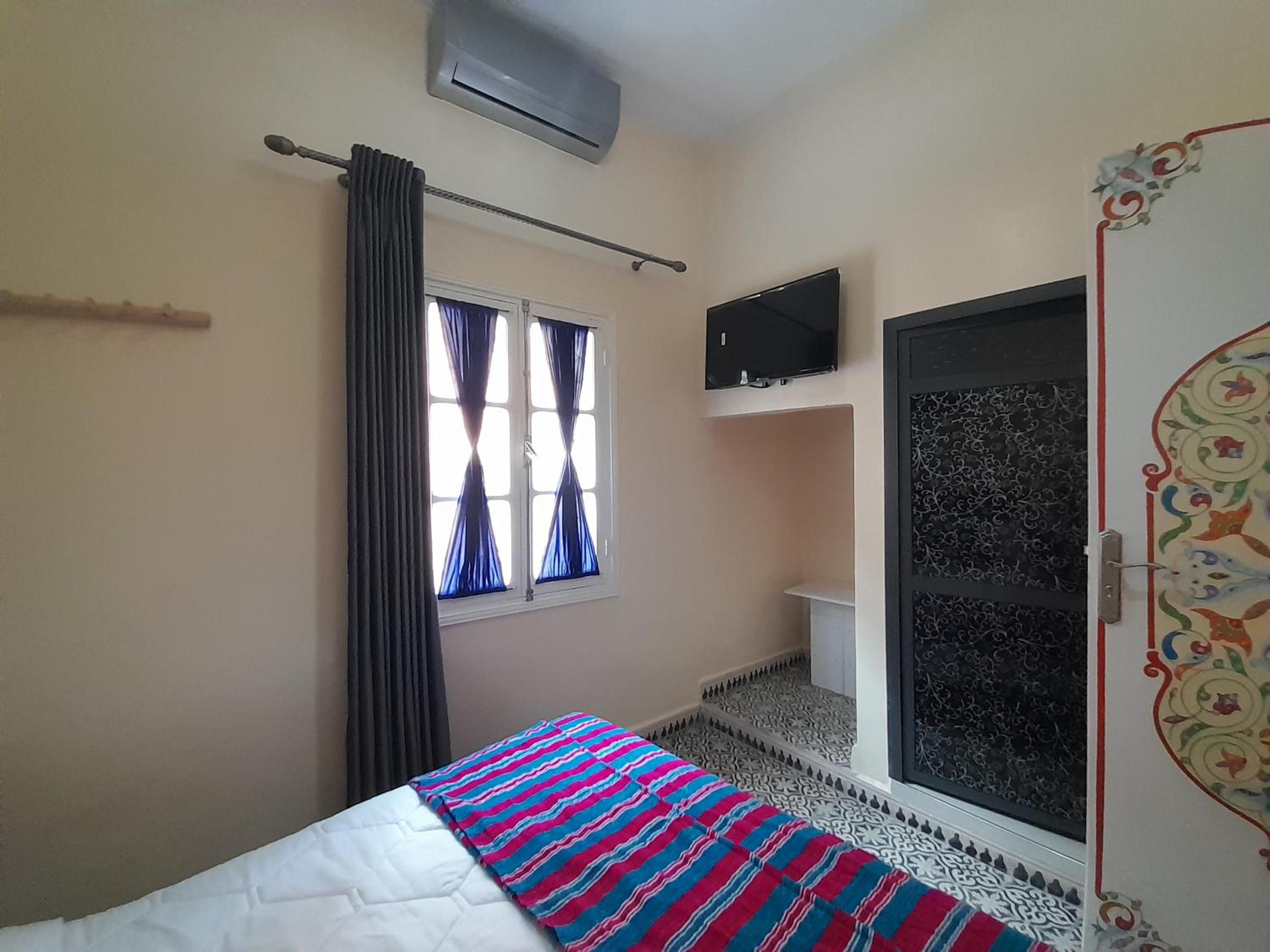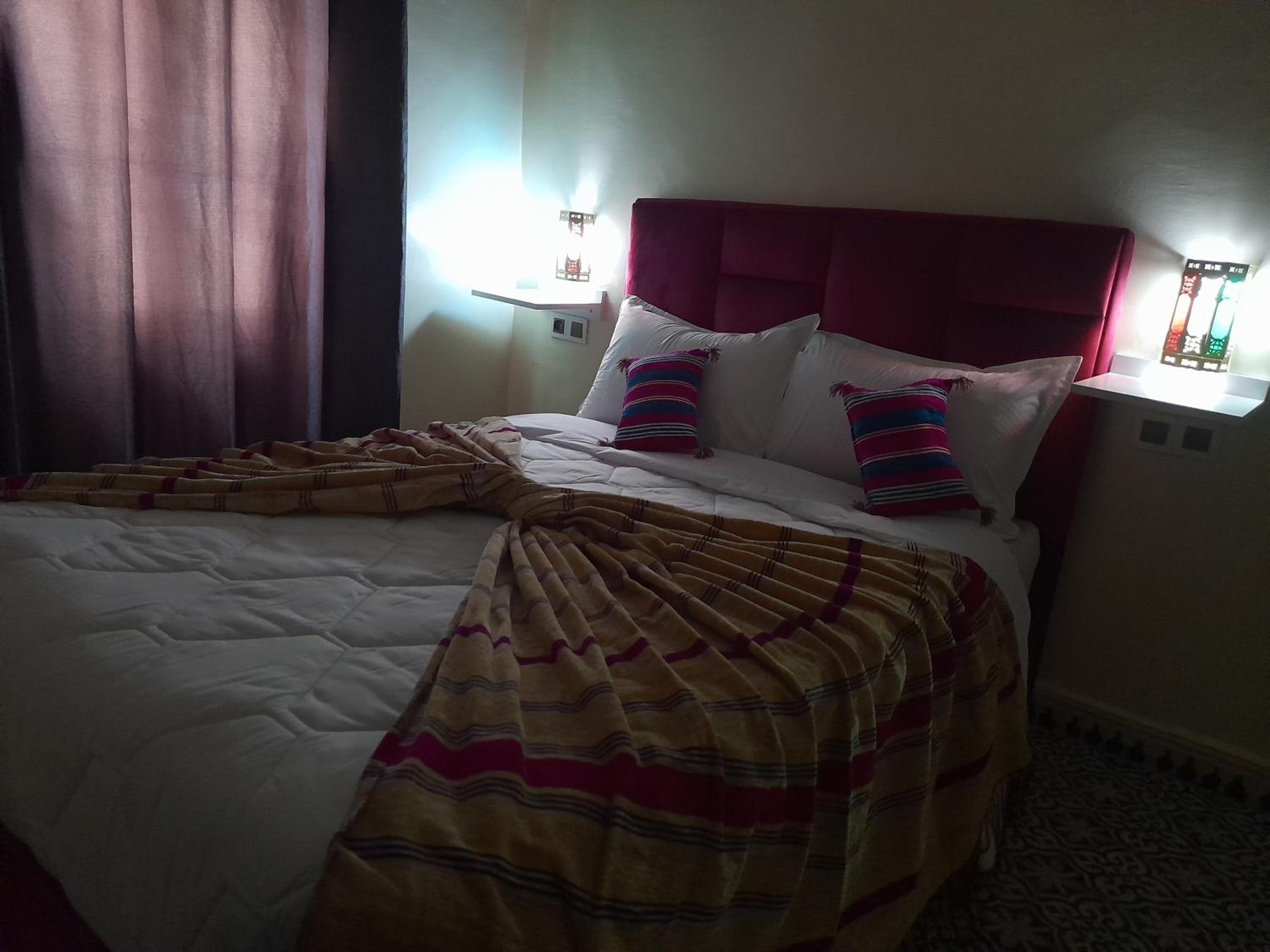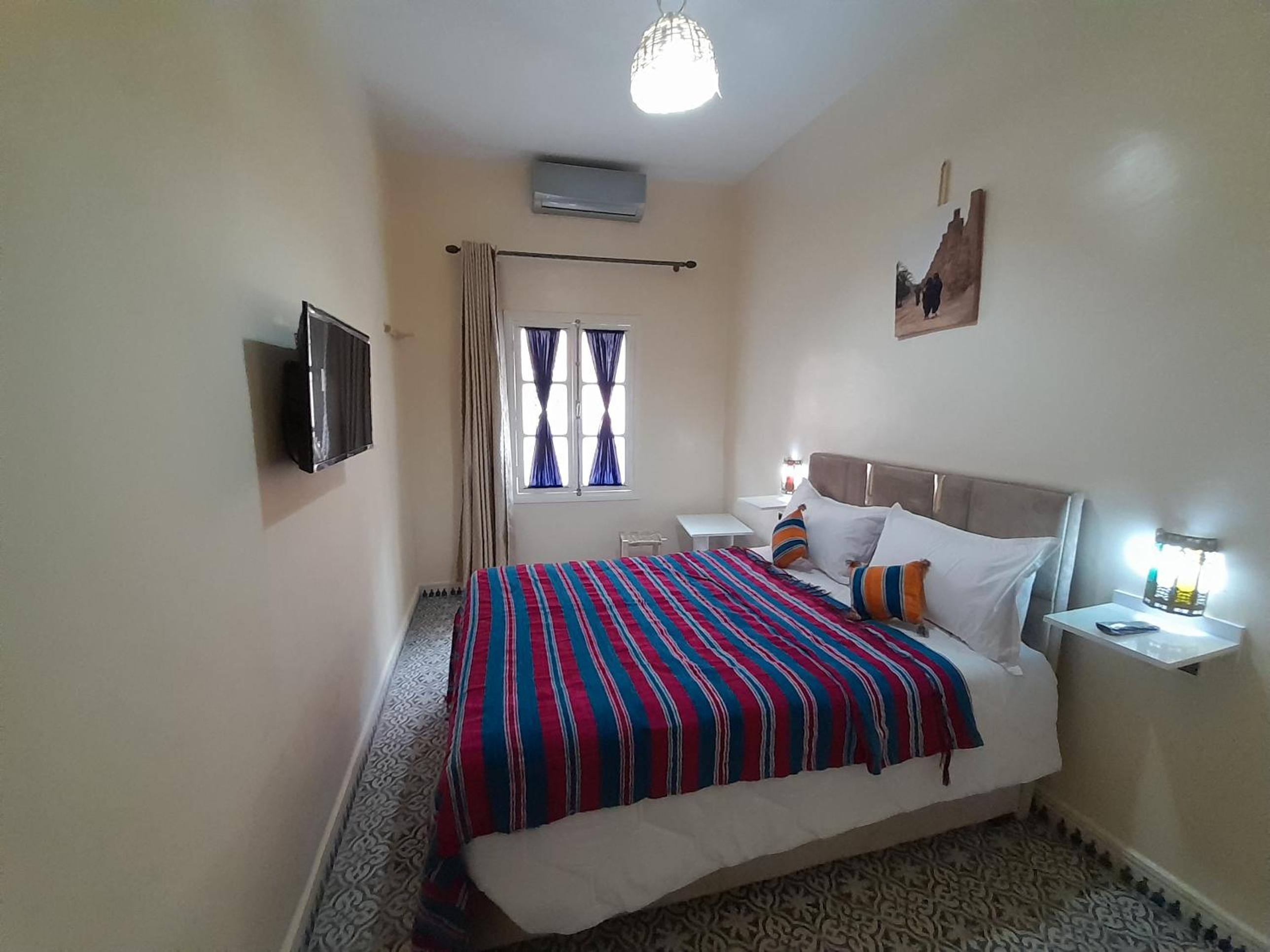 Located perfectly in the center, next to the souk and with a parking around the corner. Bed was clean, nice and firm.