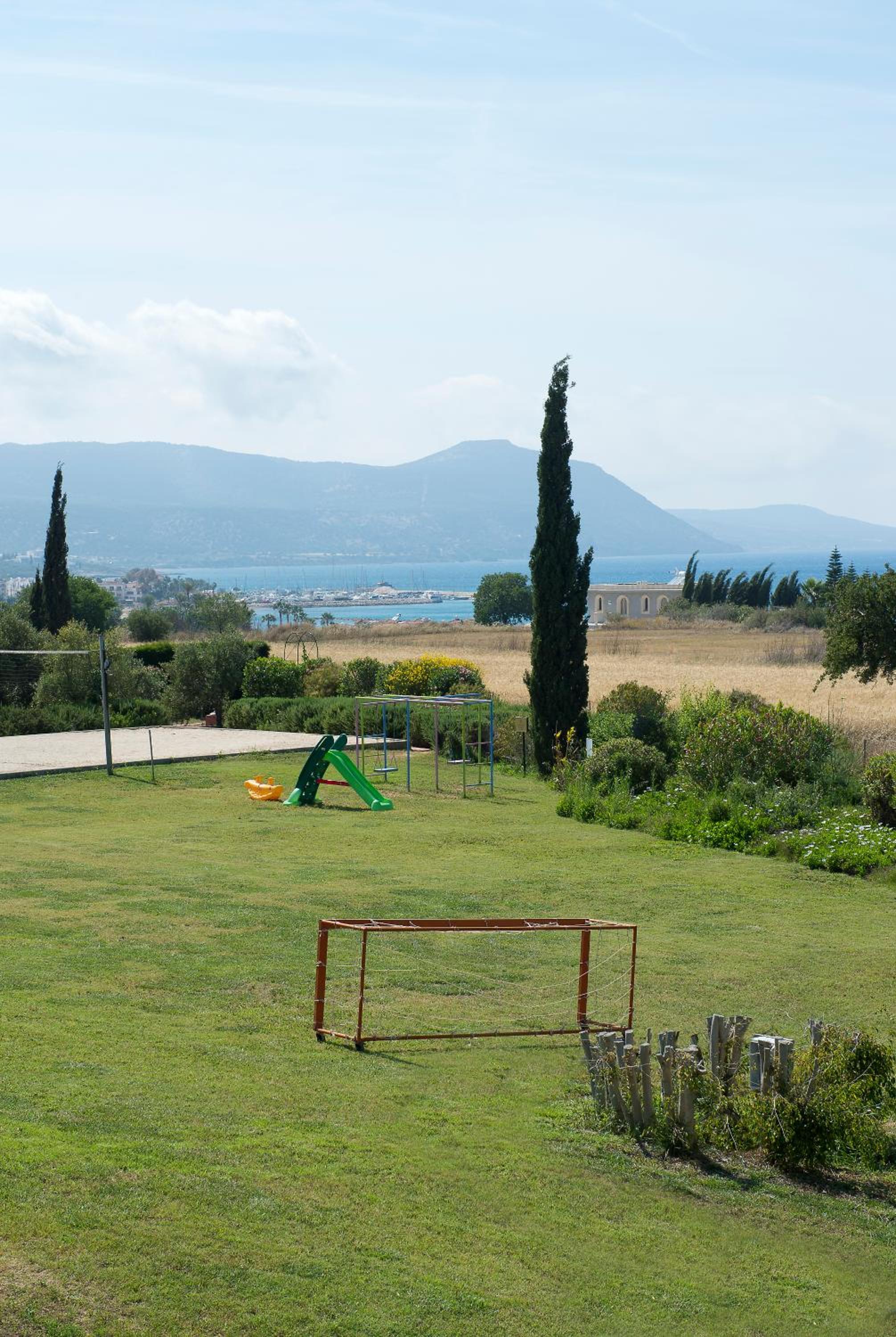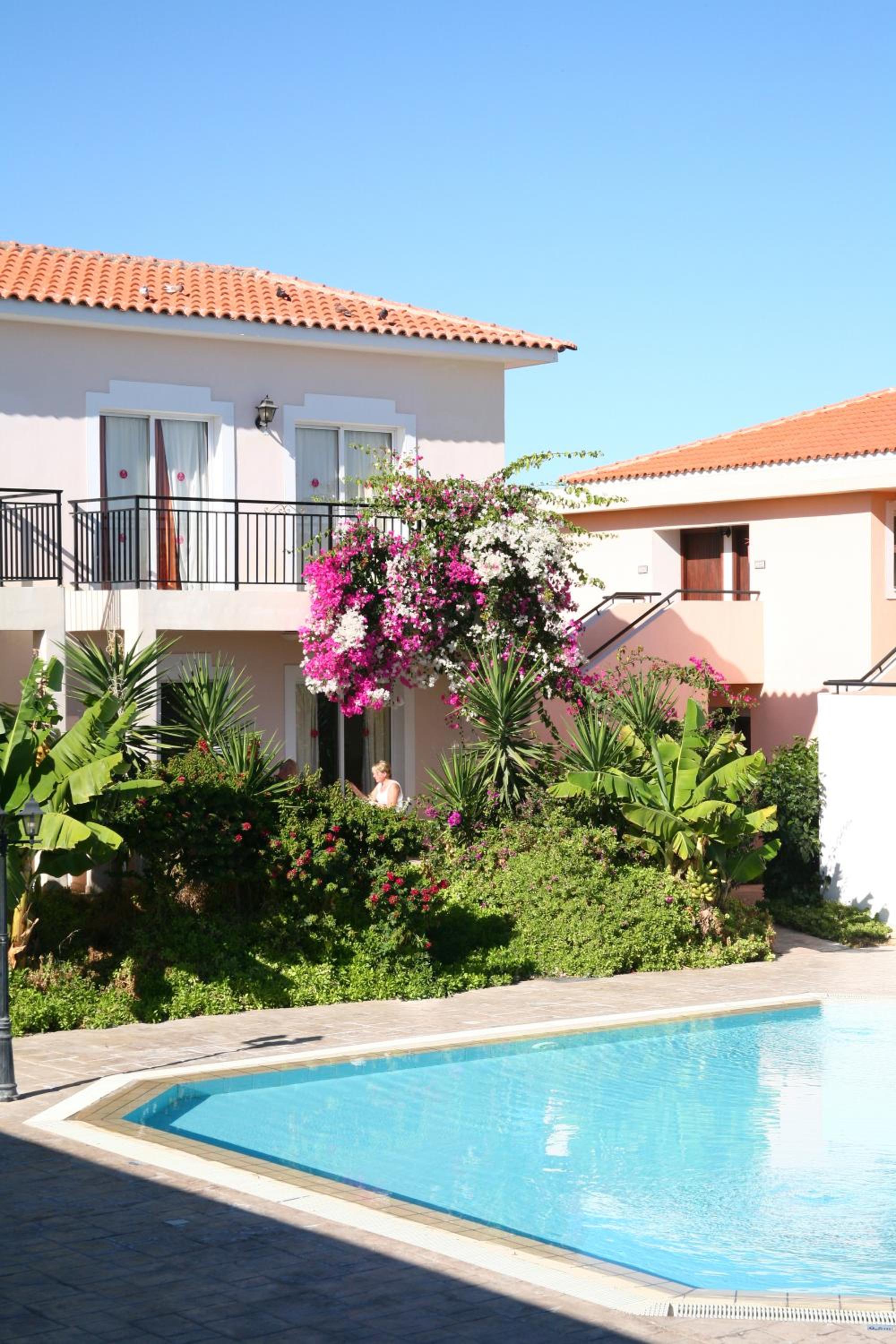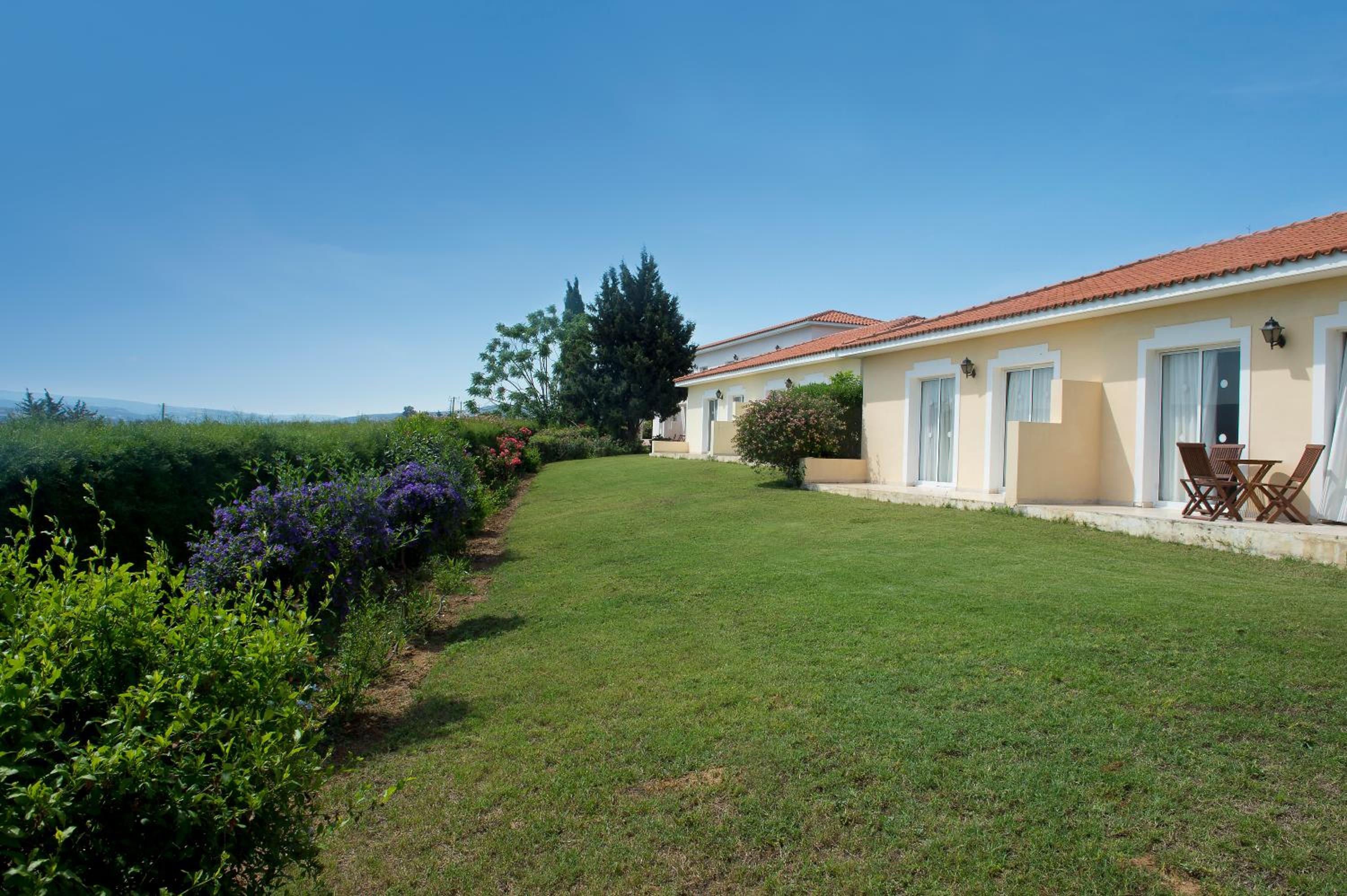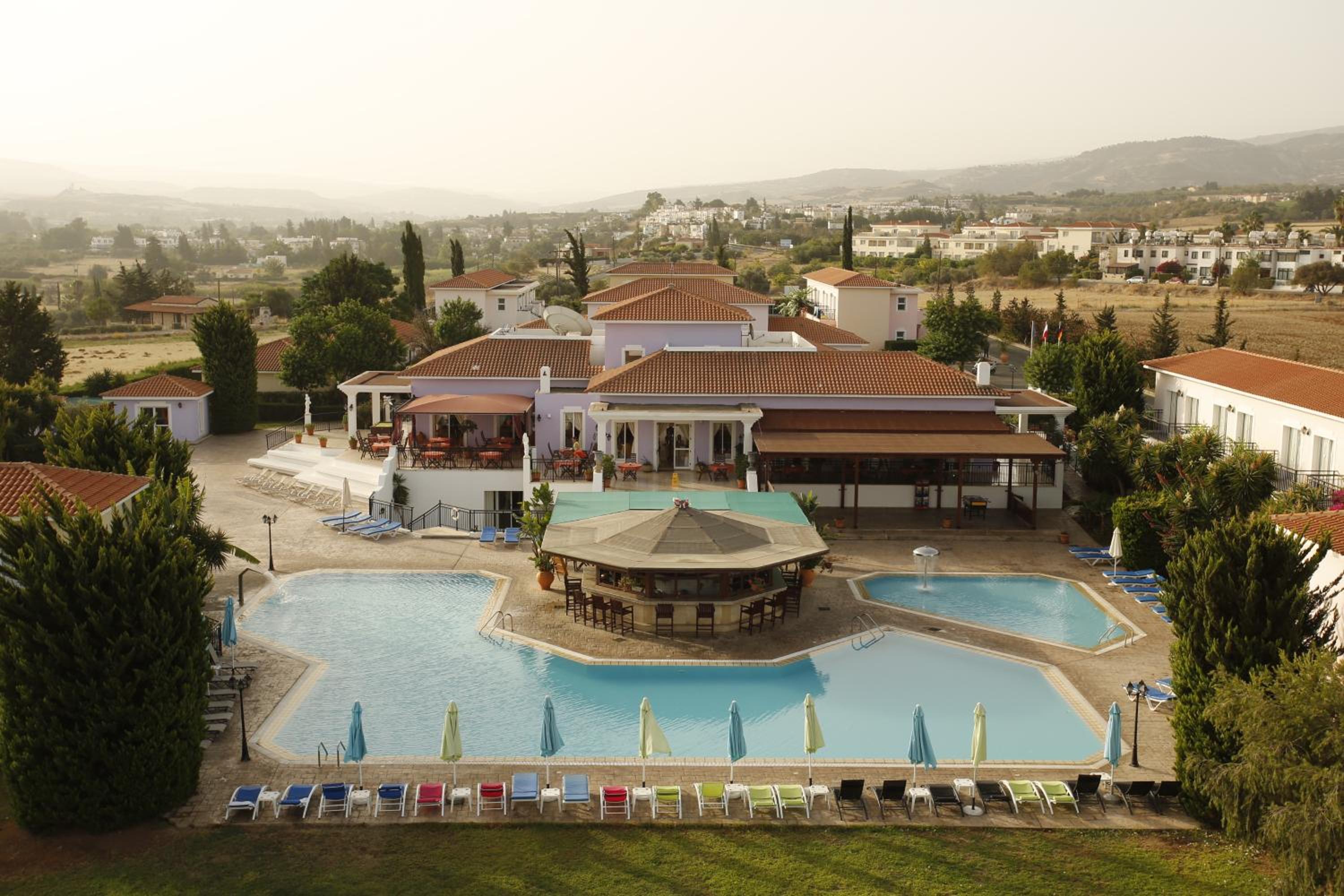 It really is a holiday village with beautiful greenery and areas for activities—basketball court, bocci pitch, and the pool. The staff was fantastic and the breakfast delicious. Very close to both Latchi and Polis.