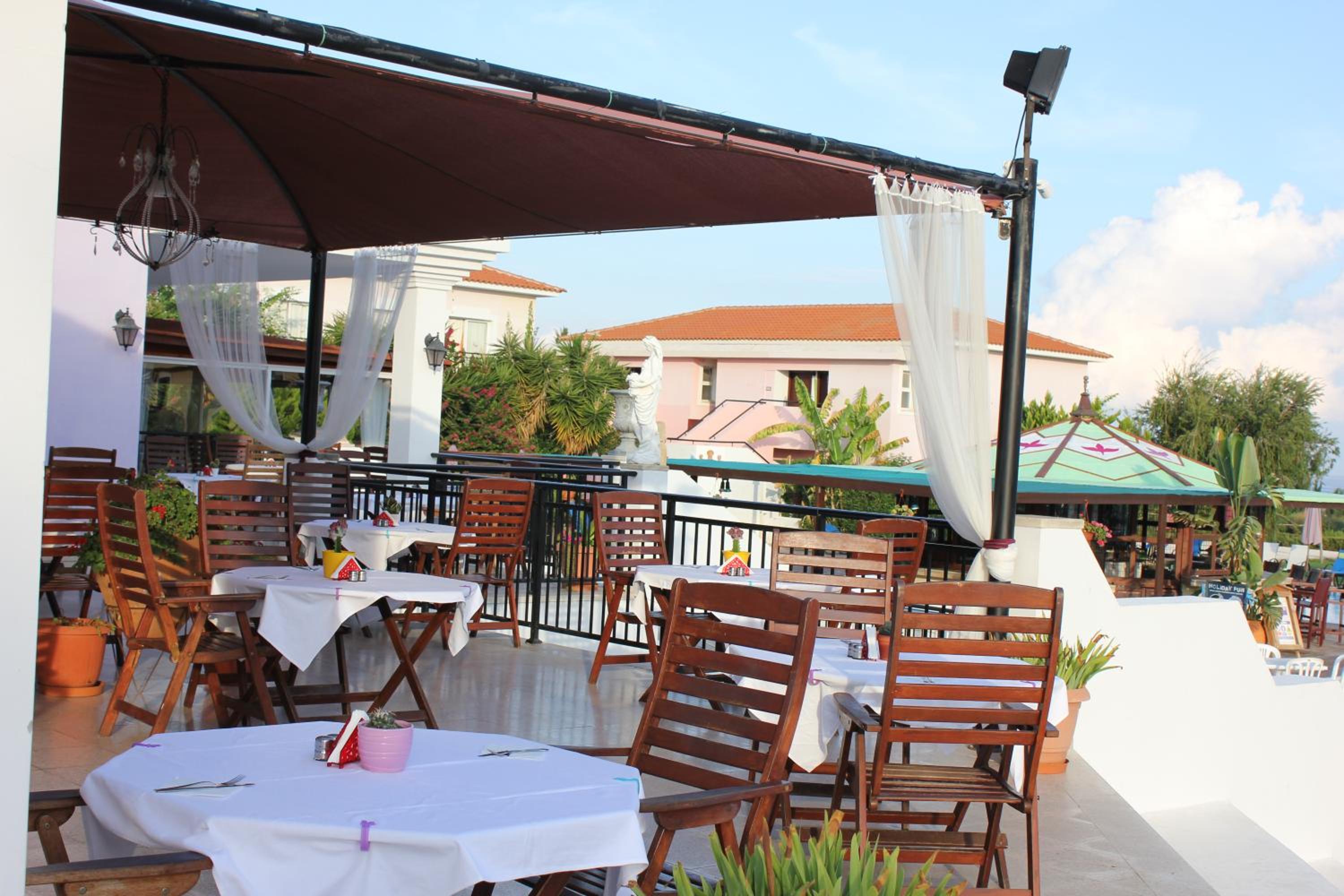 The on-site restaurant provides a picturesque dining experience on the veranda overlooking the Mediterranean Sea. Guests can savor a blend of European and traditional Cyprus cuisine, along with a delicious full English breakfast to start the day right.