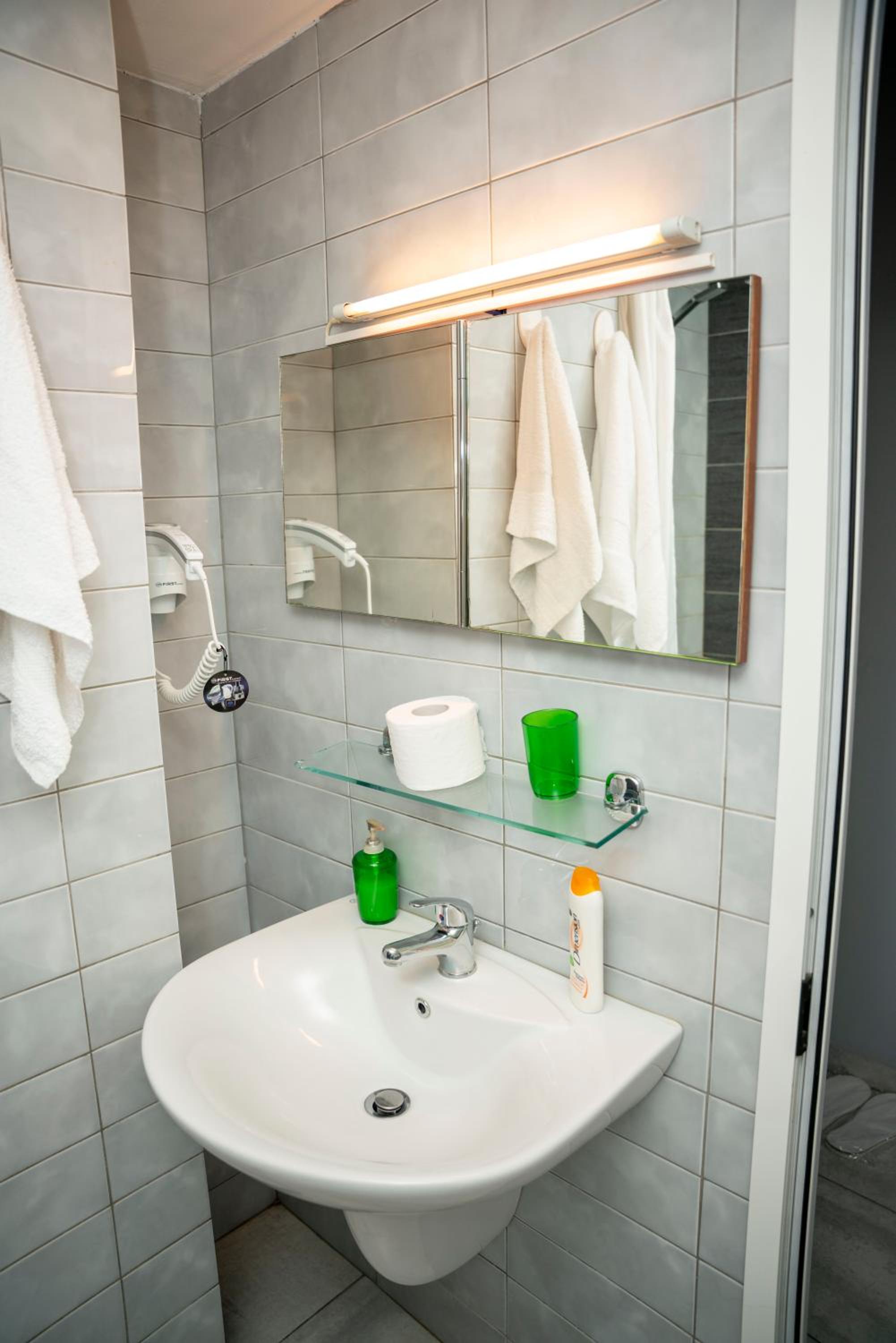 Unexpectedly clean and nice hotel room. Full equipped room with fridge, hair drier, TV, nice bathroom and amazingly comfy beds.