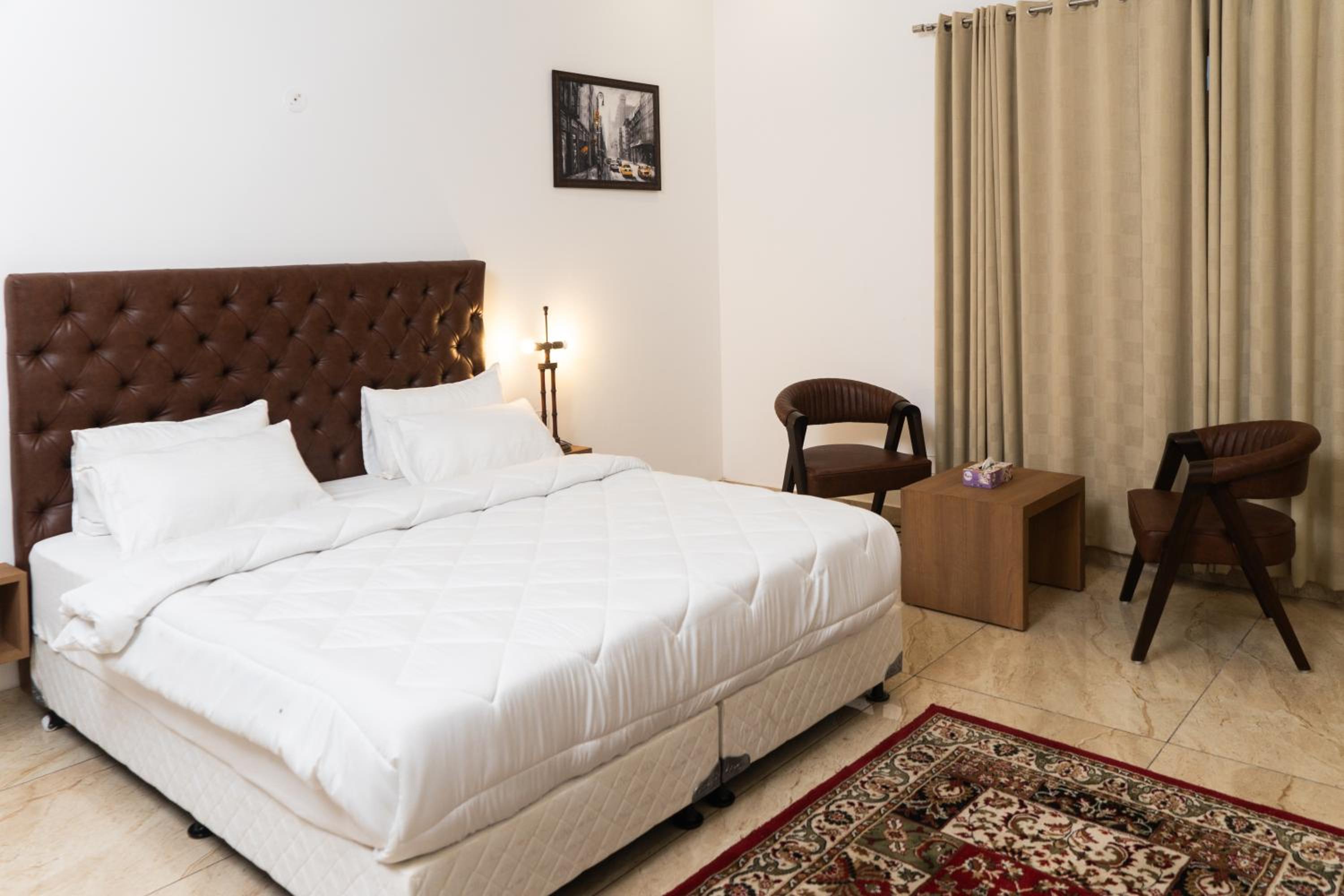 Cleanliness despite the dust around the facility. Very well behaved staff. The Owner was frequently available, ready to discuss and quickly sort issues, if any. Always ready to assist. Large spacious Wardrobes.