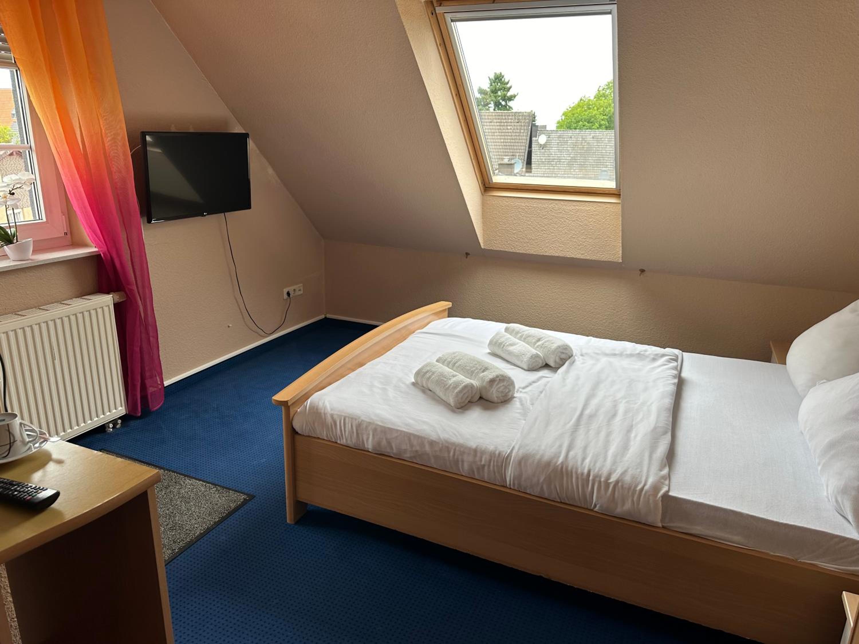 Het was ons tweede verblijf in dit Hotel, bij aanvraag kregen we dezelfde kamer. De gastvrouw is zeer vriendelijk en maakte zelfs een uitzondering om de ontbijtzaal extra vroeg te openen omdat we vroeg moesten vertrekken. Op en top service. 14 minuten rijden naar Heinsberg. Perfect voor ons.