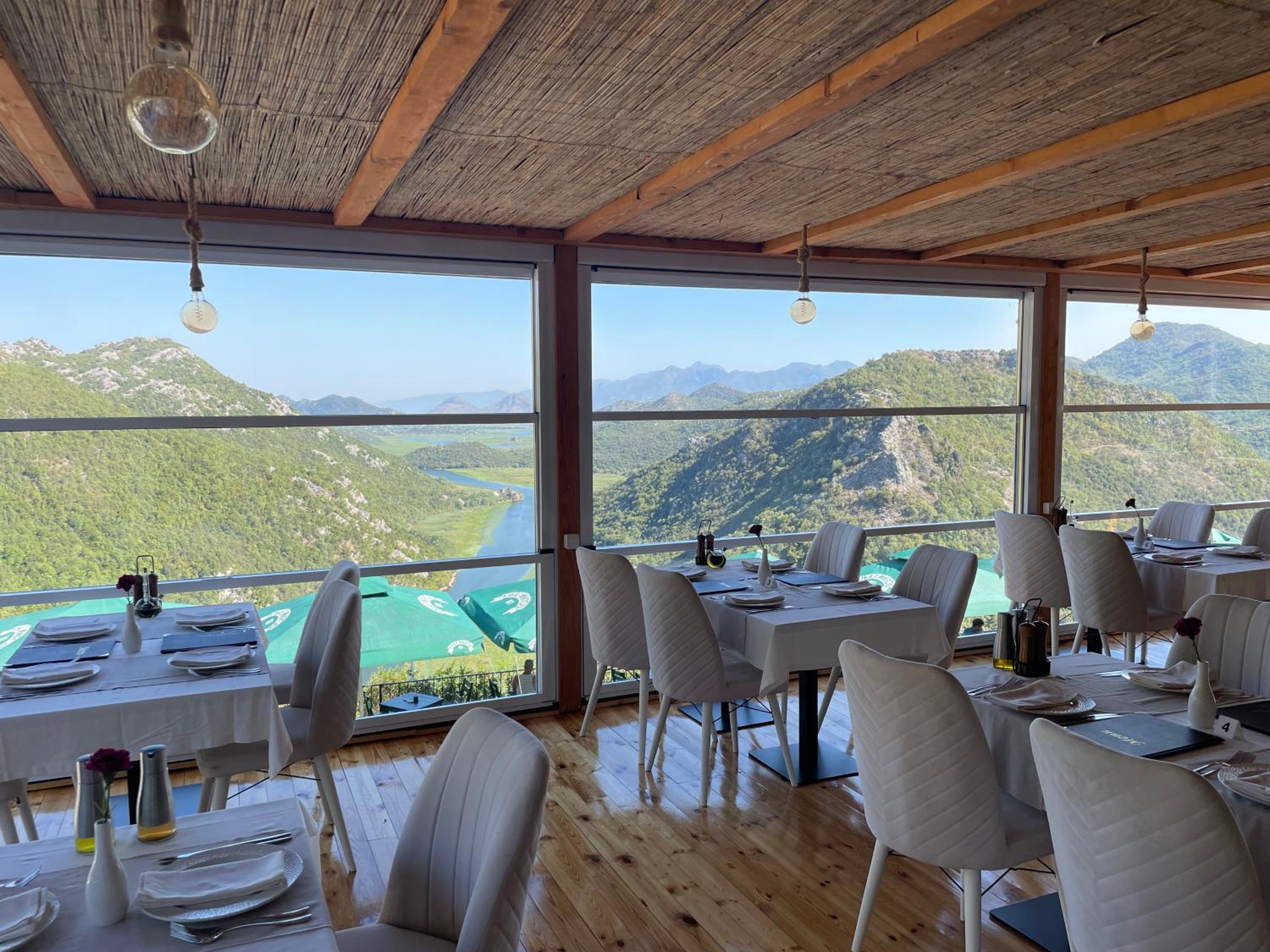 Die Aussicht ist sensationell, die Anreise mit dem Auto bietet bereits spektakuläre Ausblicke auf den Skadarsee, ebenso die Parkplätze quasi direkt am Abgrund. Das Frühstück wird von der Karte serviert, kommt in großen Portionen und ist sehr lecker, während man wieder die Aussicht genießen kann. Das Personal ist freundlich und aufmerksam, wir hatten Getränke im Restaurant bestellt und sie wurden uns sogar aufs Zimmer gebracht.