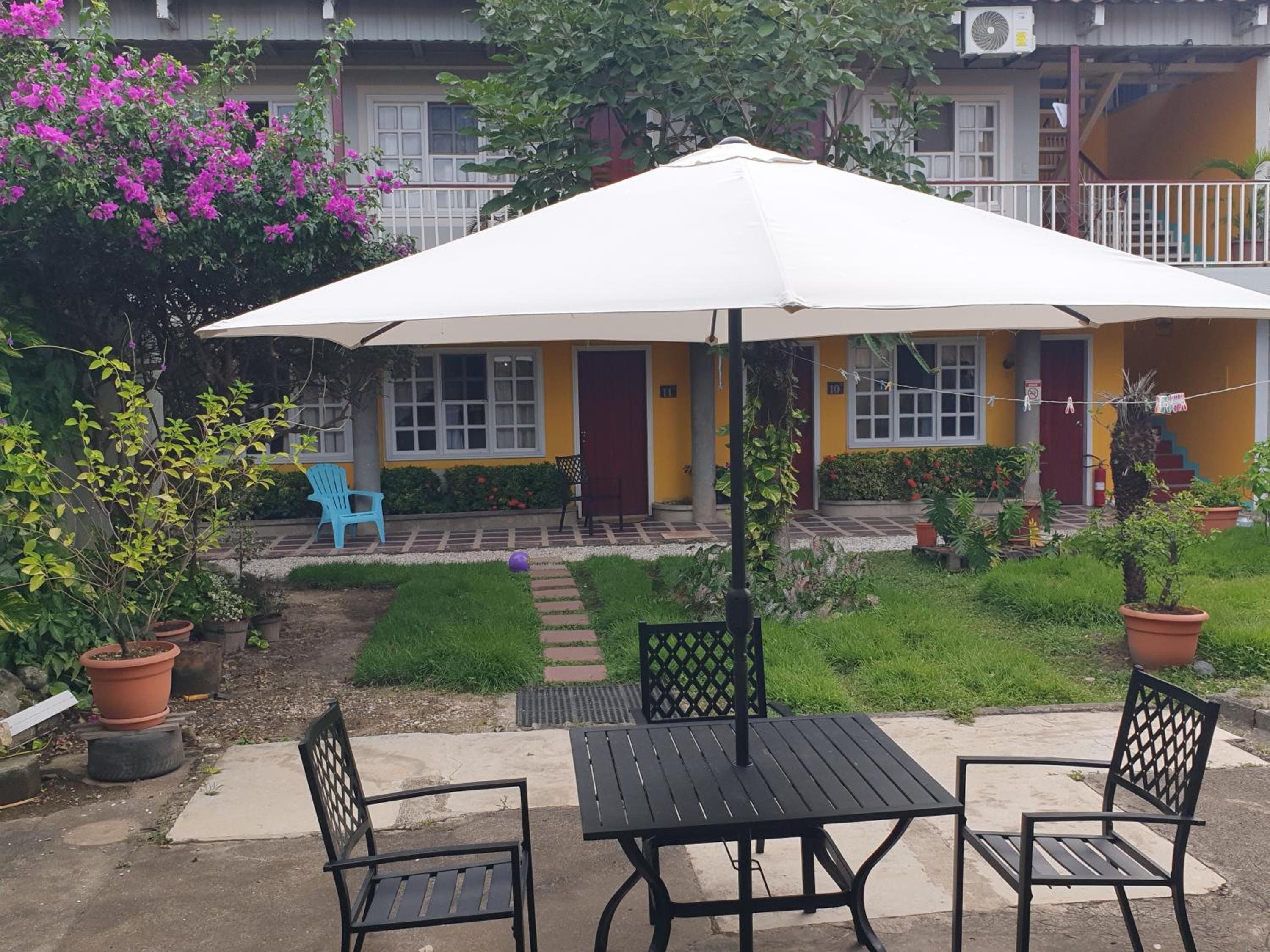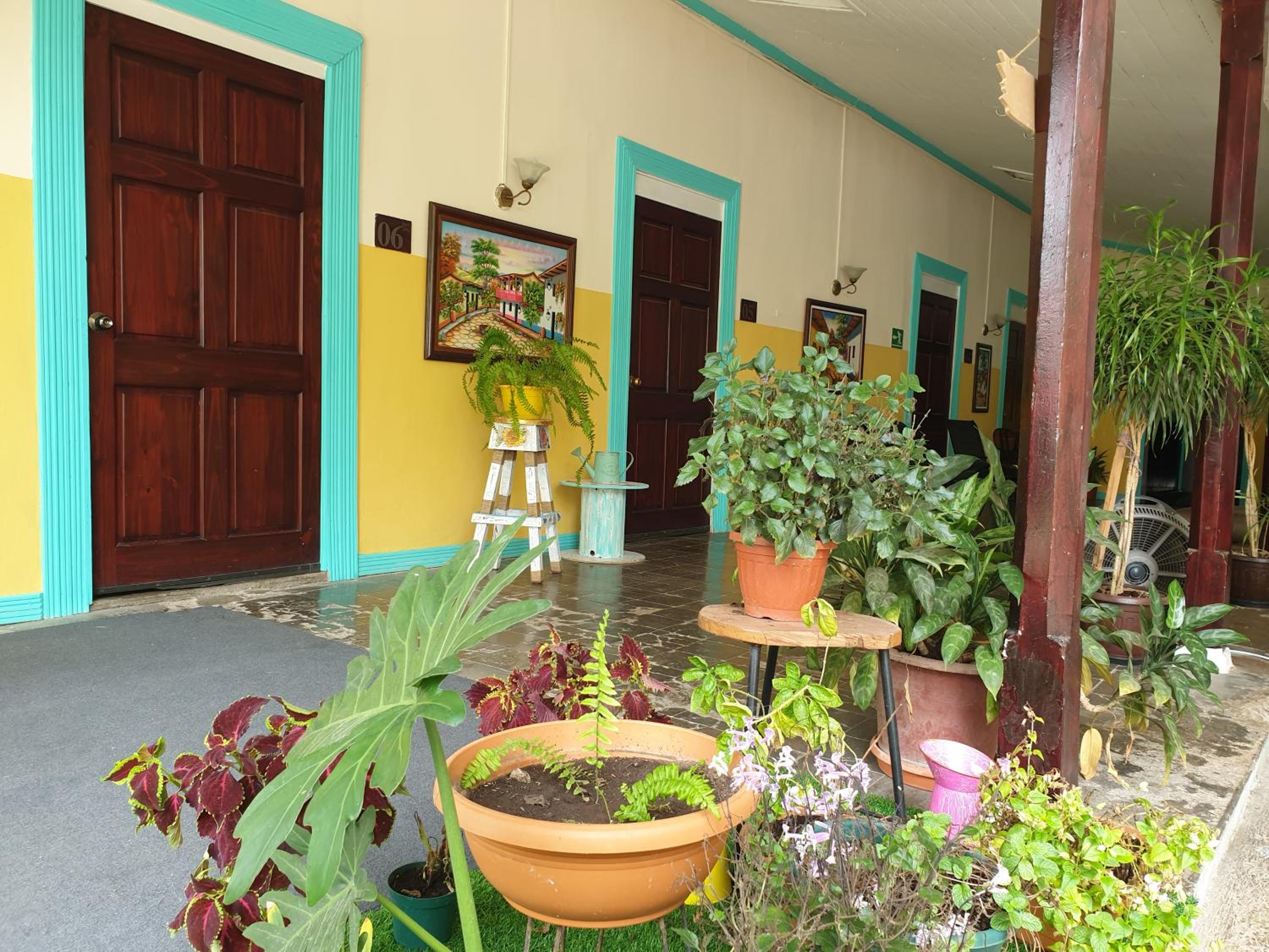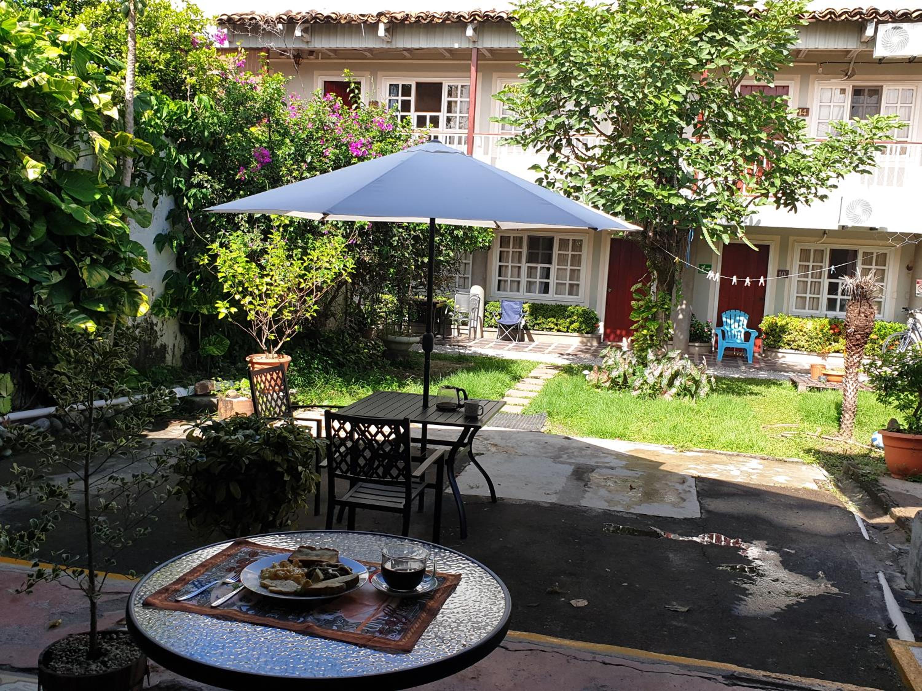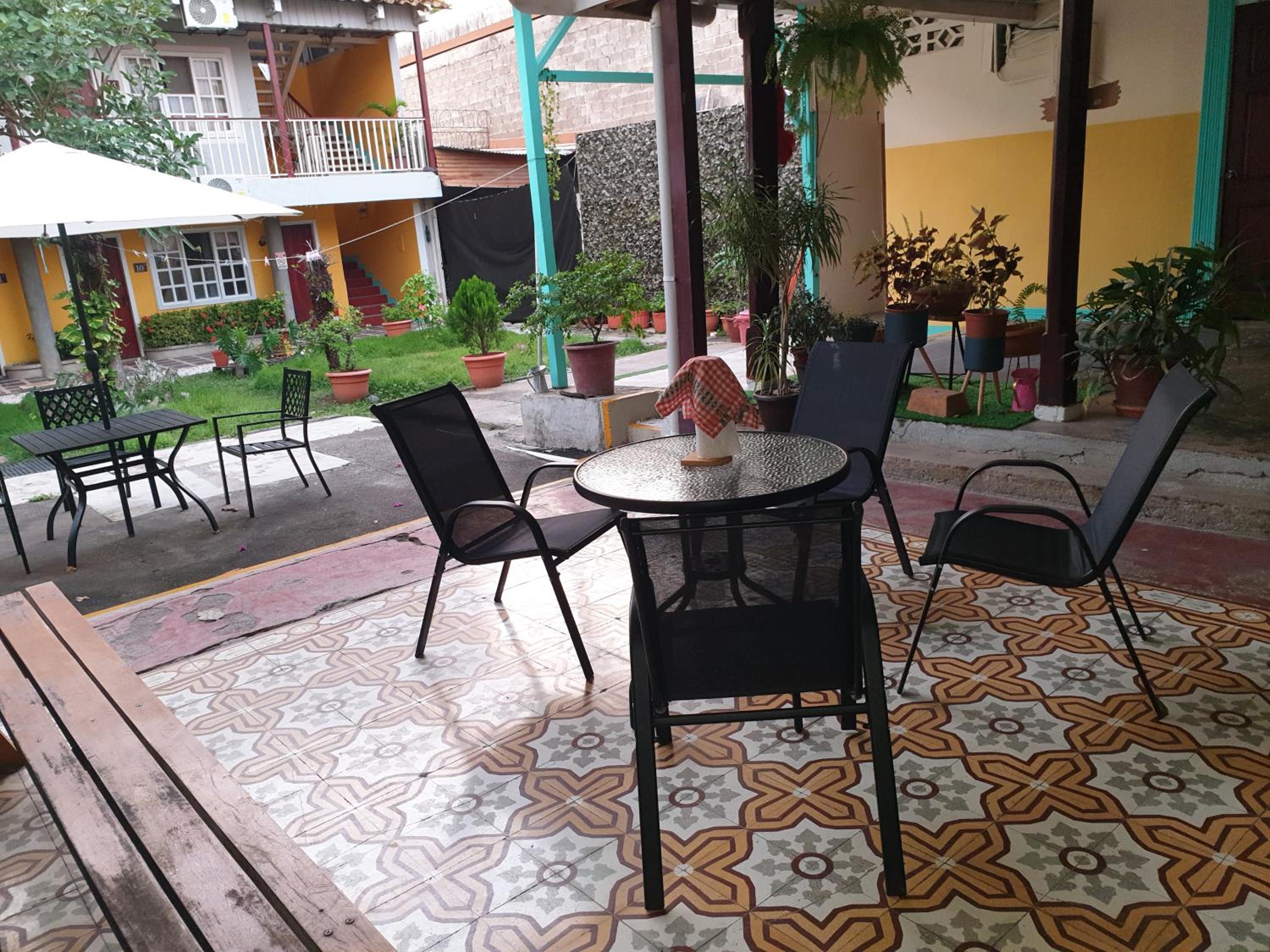 Escape to our tranquil garden oasis at Hotel Liberia with a terrace to enjoy the lush greenery.