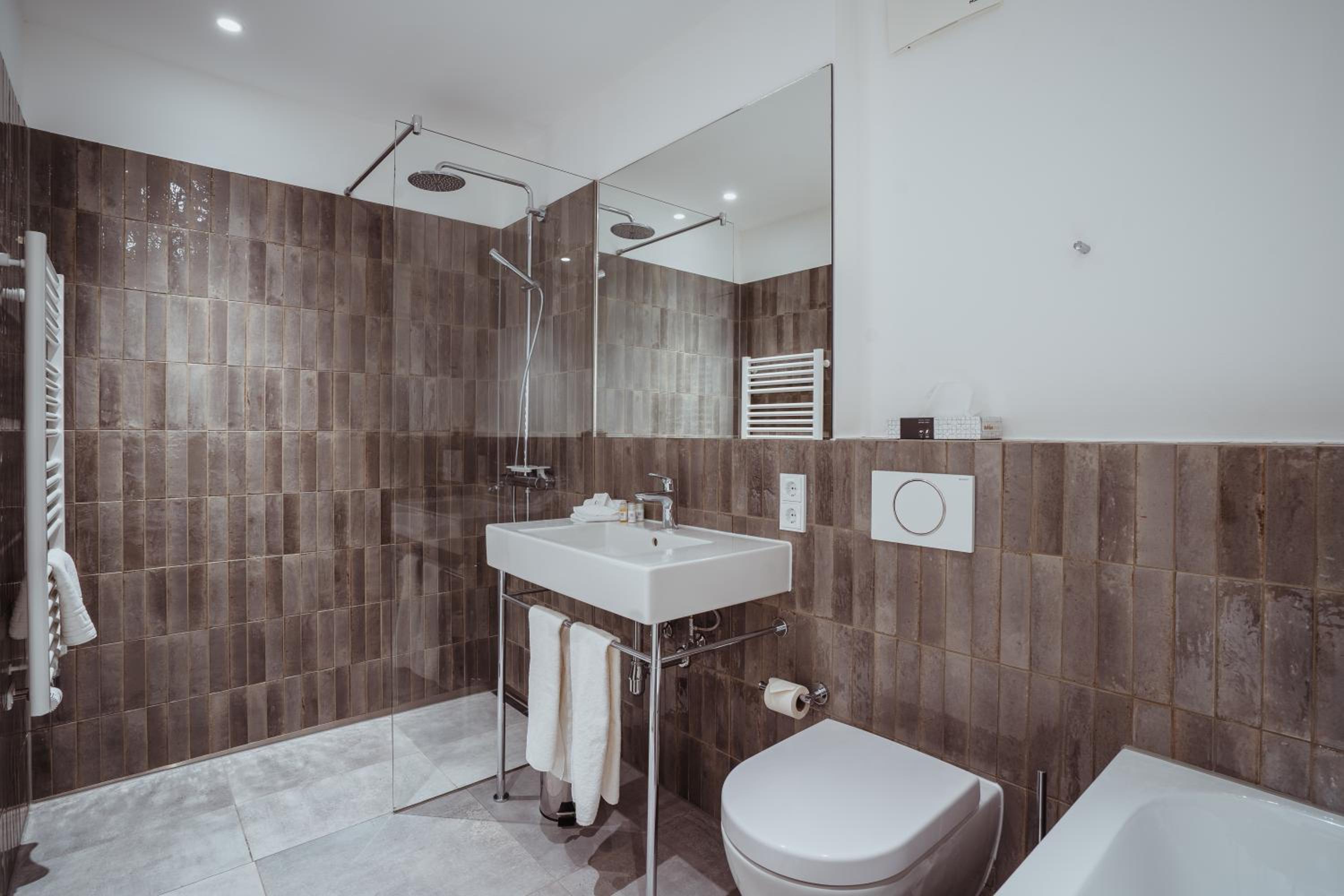 Badrum med både badkar och separat dusch