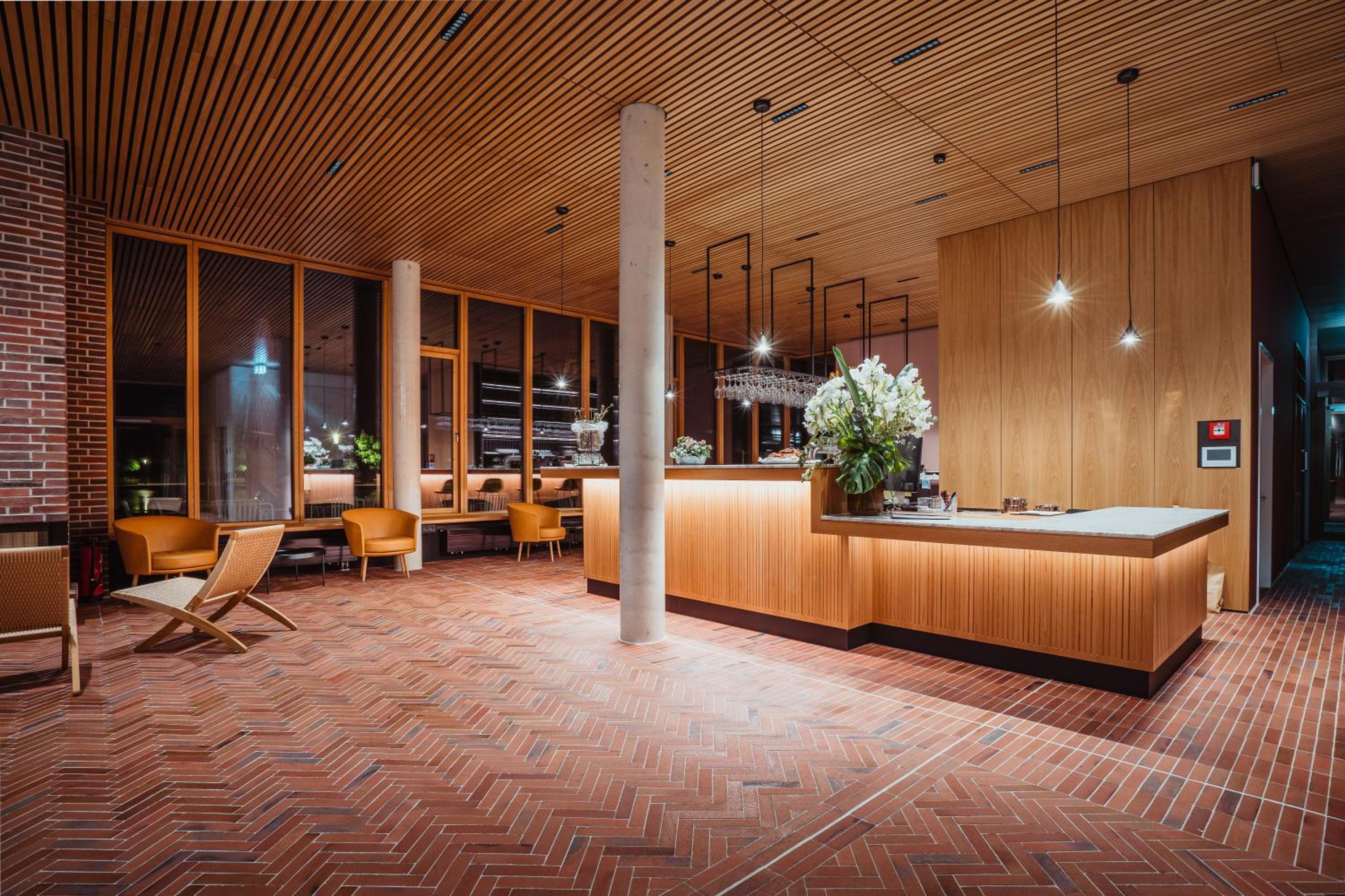Die Architektur und die Einrichtung modern und warm! Das Essen war sehr lecker und die Portionen gut.