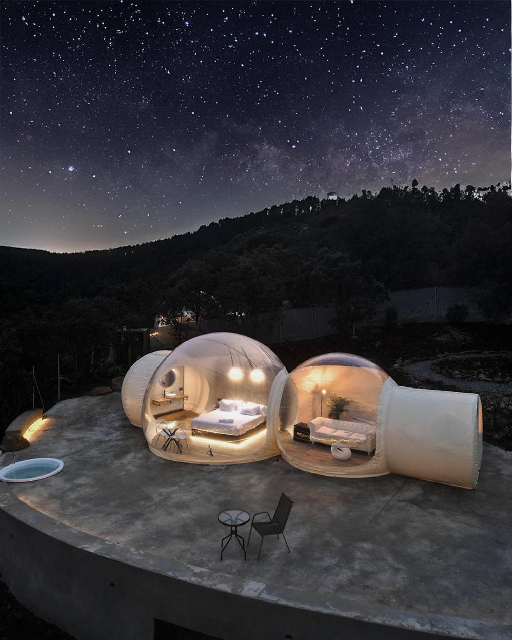 Todo ,el entorno y la burbuja dormir bajo las estrellas maravilloso