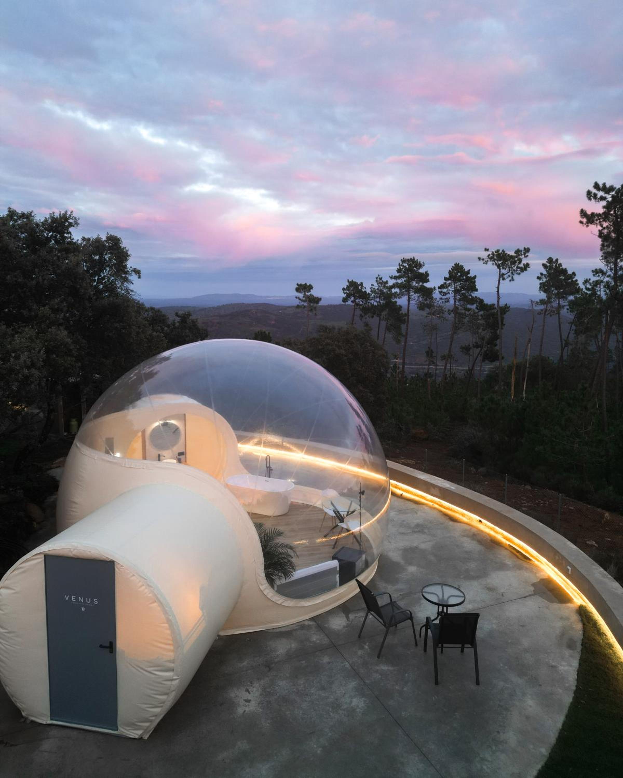 El lugar y sobre todo la experiencia que se vive dentro de la burbuja, esos cielos estrellados, esa luna alumbrando la noche y ese amanecer que hace que no te apetezca salir nunca del sitio.