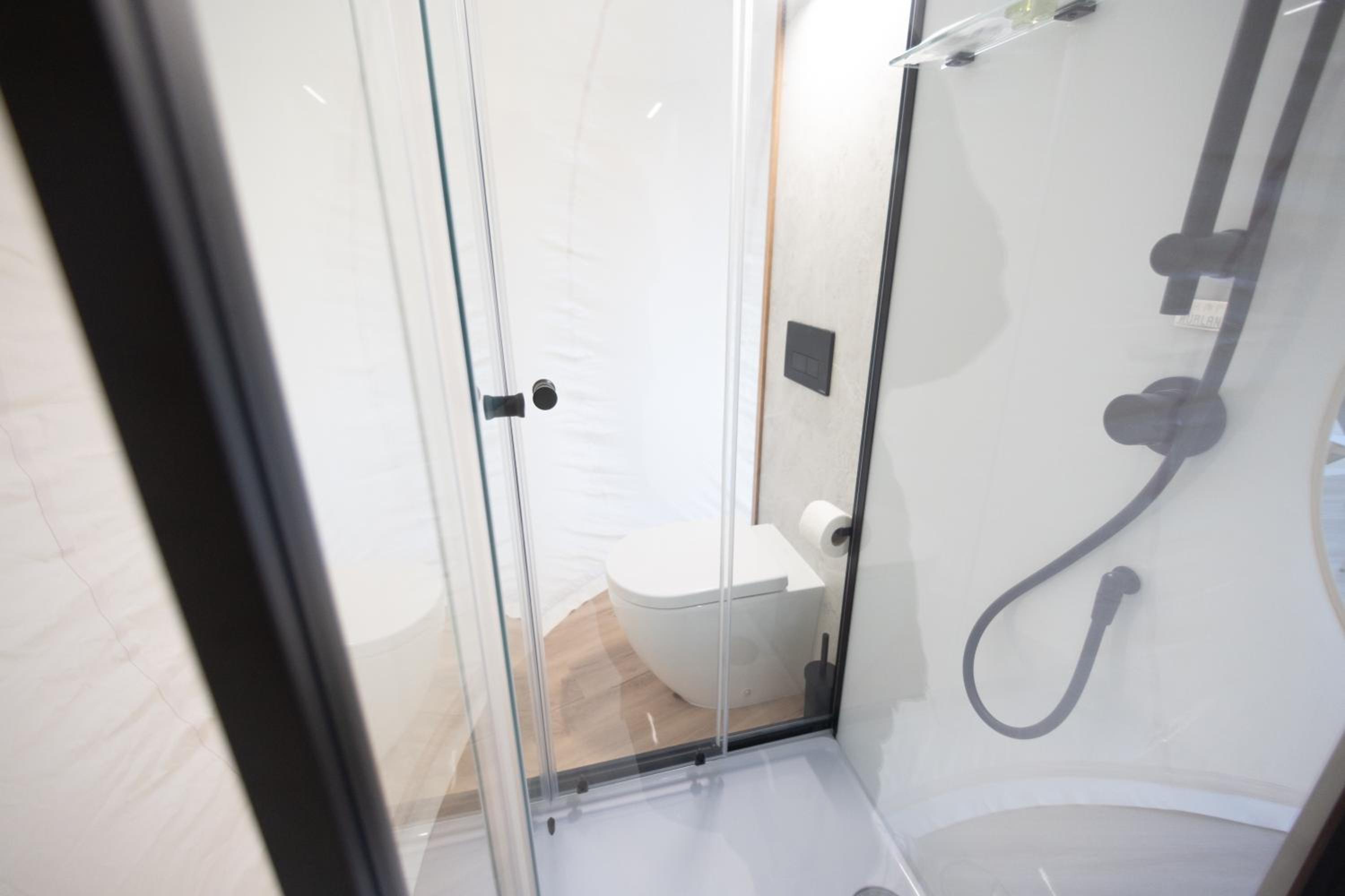 El aire acondicionado se apagaba cada dos por tres y echaba aire frío , te dejan un calefactor también que funciona a gas pero la bombona estaba vacía así que duró 5 min encendido .. pasamos un poco de frío. Tuve problemas a la llegada ya que al final estuve en una burbuja inferior a la que contraté , la reserva la hice desde booking .