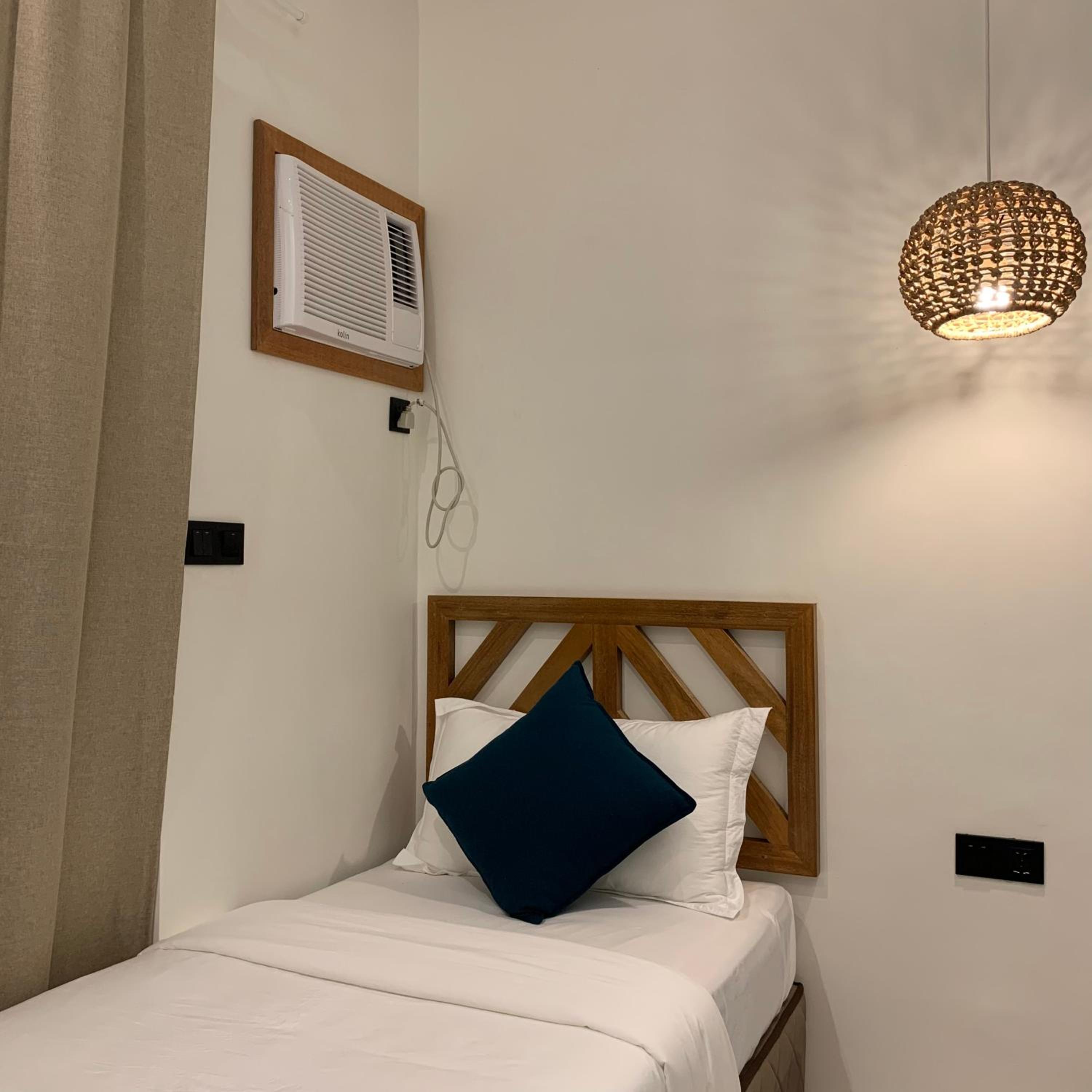 En un día de lluvia había una gotera en la habitación y nos dieron un cubo para recoger el agua. No nos propusieron realizar cambio de habitación, así que pasamos toda la noche con la gotera. El aire acondicionado clavado en la pared estaba mal aislado del exterioe cosa que hacia que entrara mucha humedad ambiental.